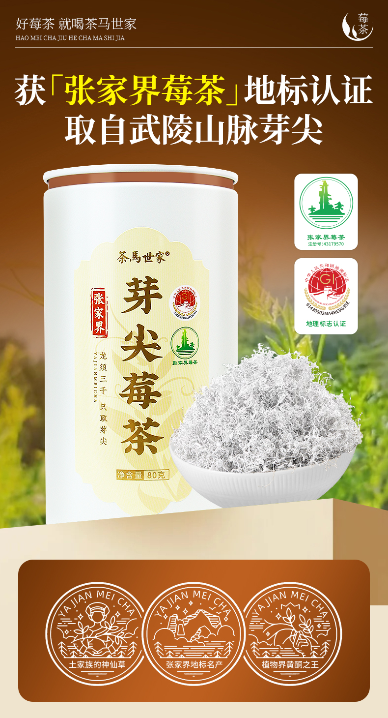 茶马世家莓茶张家界龙须芽尖湖南特产永定茅岩土家礼盒养生茶80g