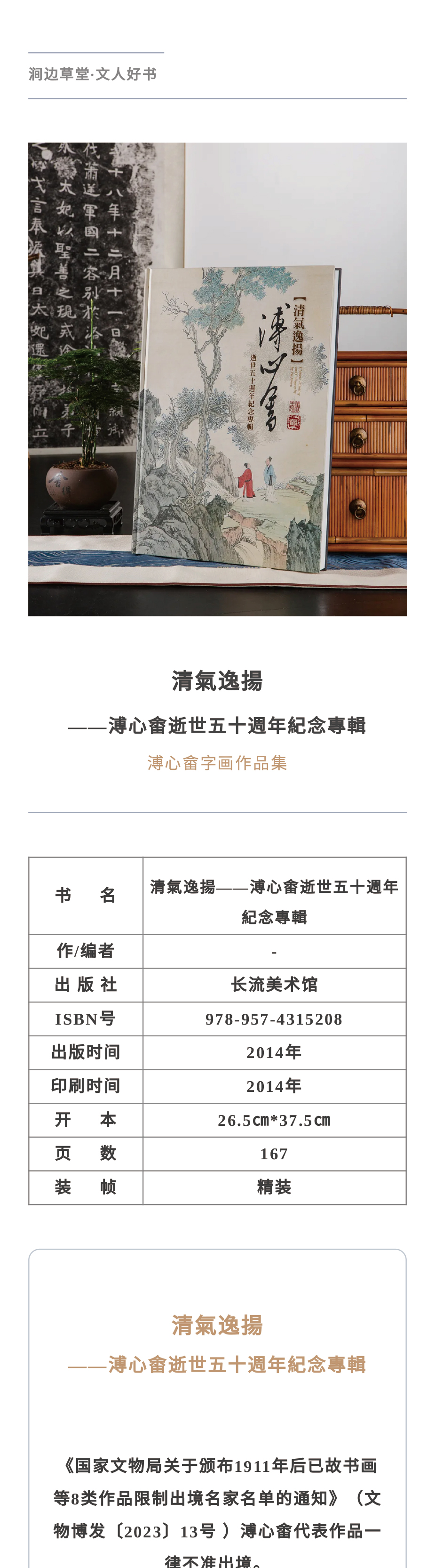 【绝版好书】《清气逸扬 溥心畬逝世五十周年纪念专辑》八开精装167页,2014年长流美术馆初版