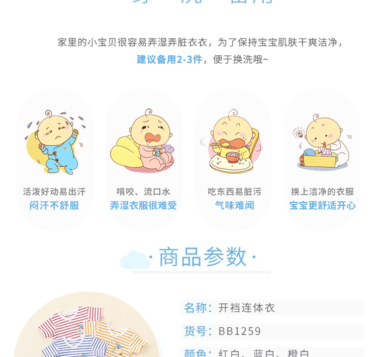 贝贝怡新生婴儿连体衣夏装宝宝睡衣婴幼儿和尚服短袖爬服哈衣BB1259