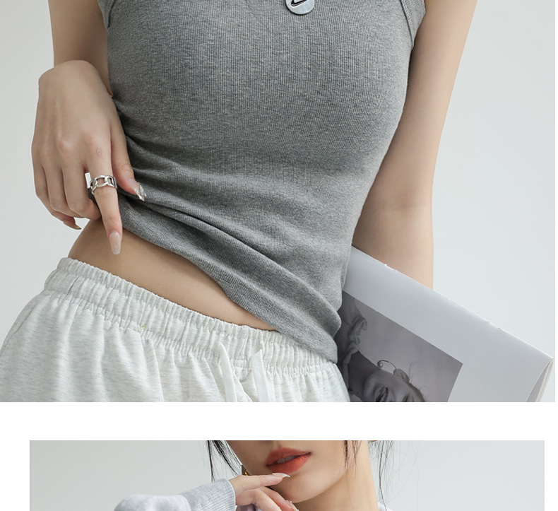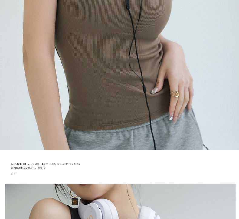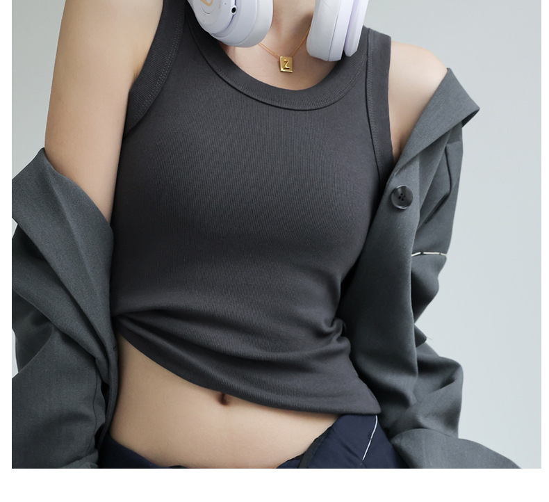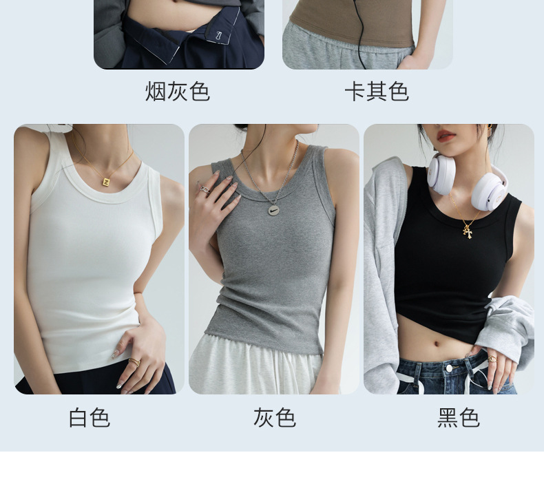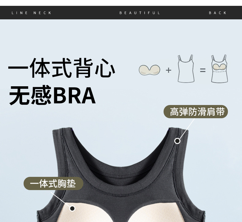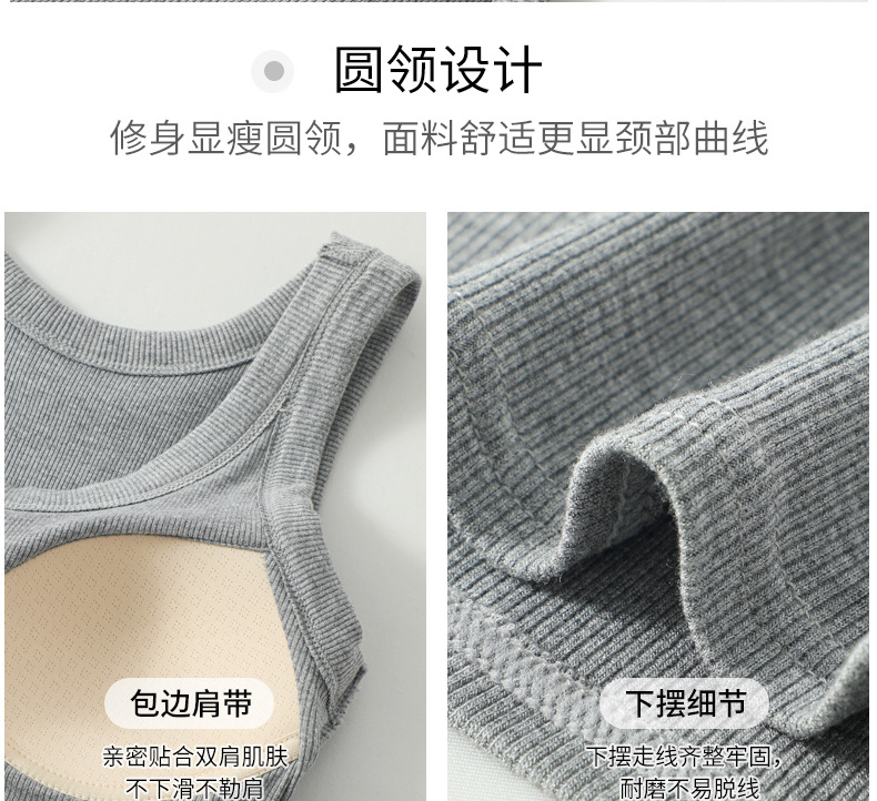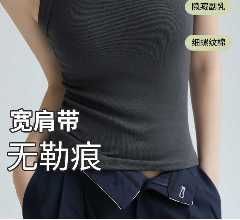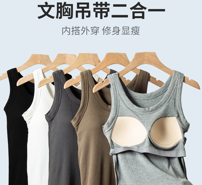 带胸垫莫代尔螺纹打底吊带小背心女内搭夏季纯色外穿遮副乳上衣