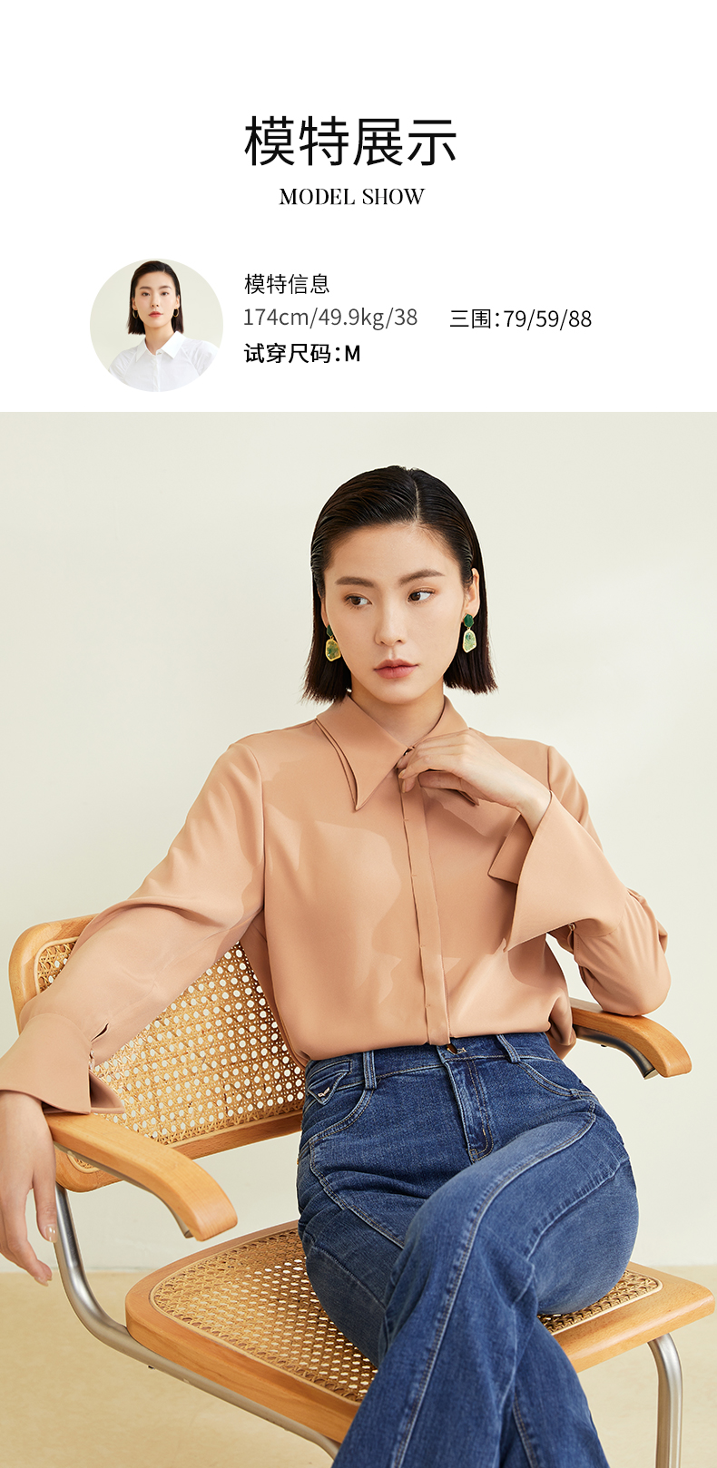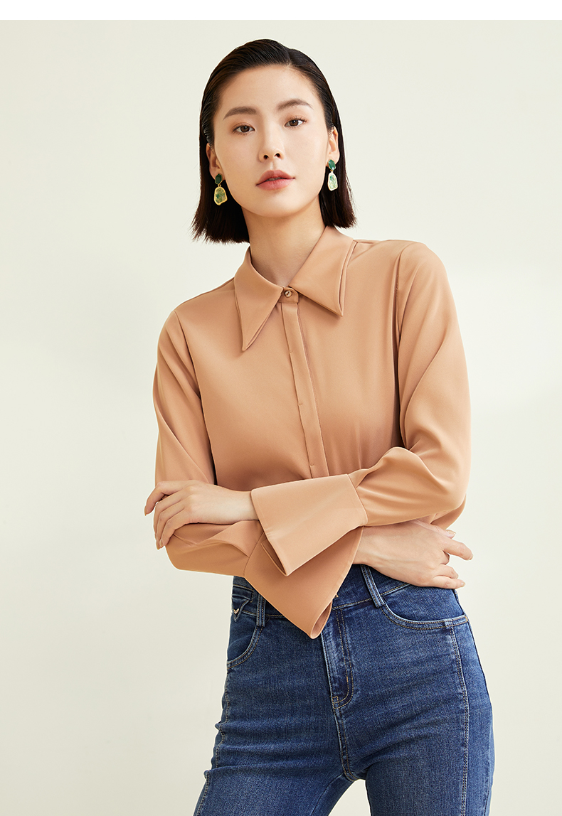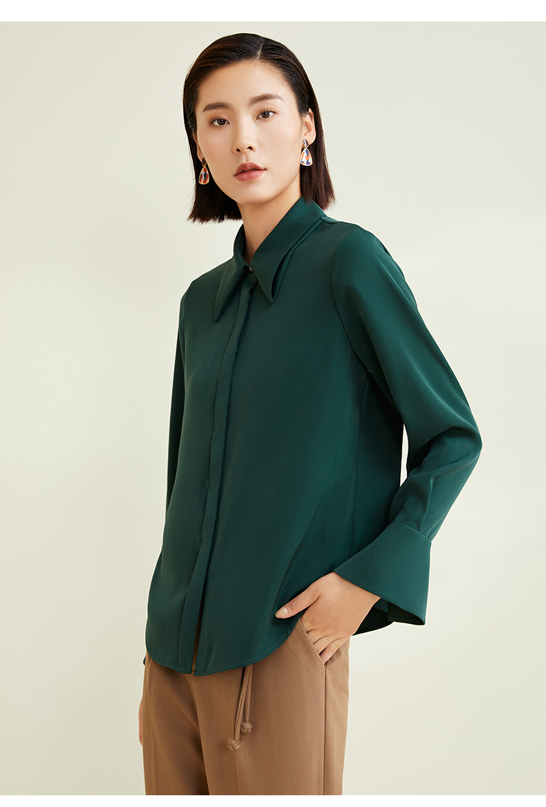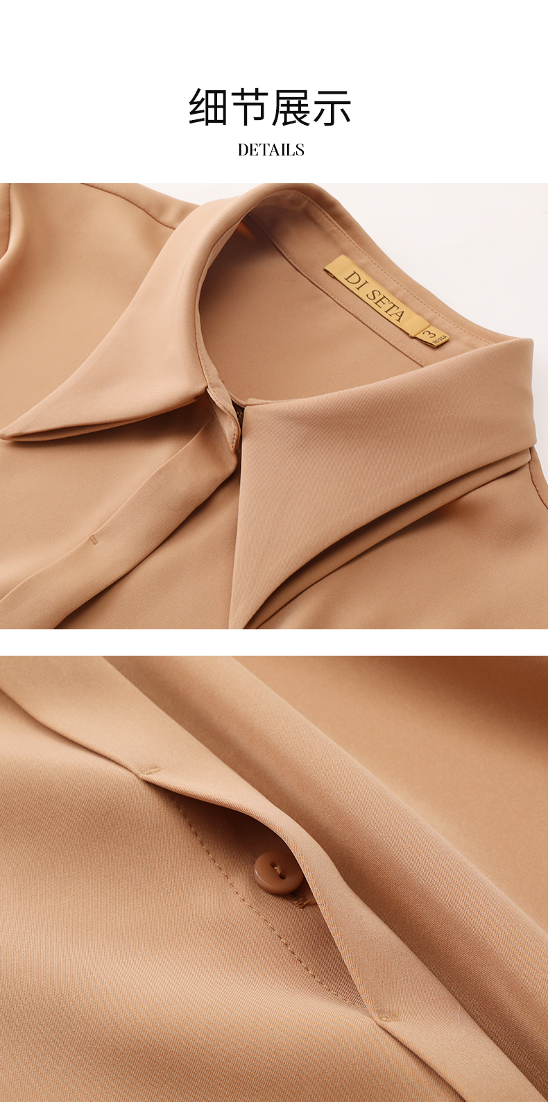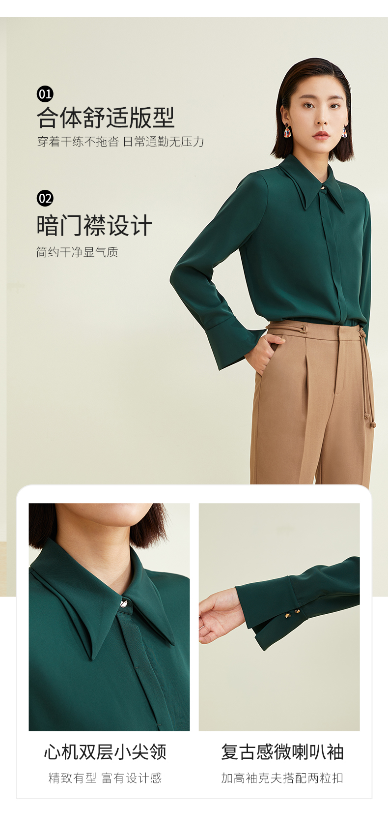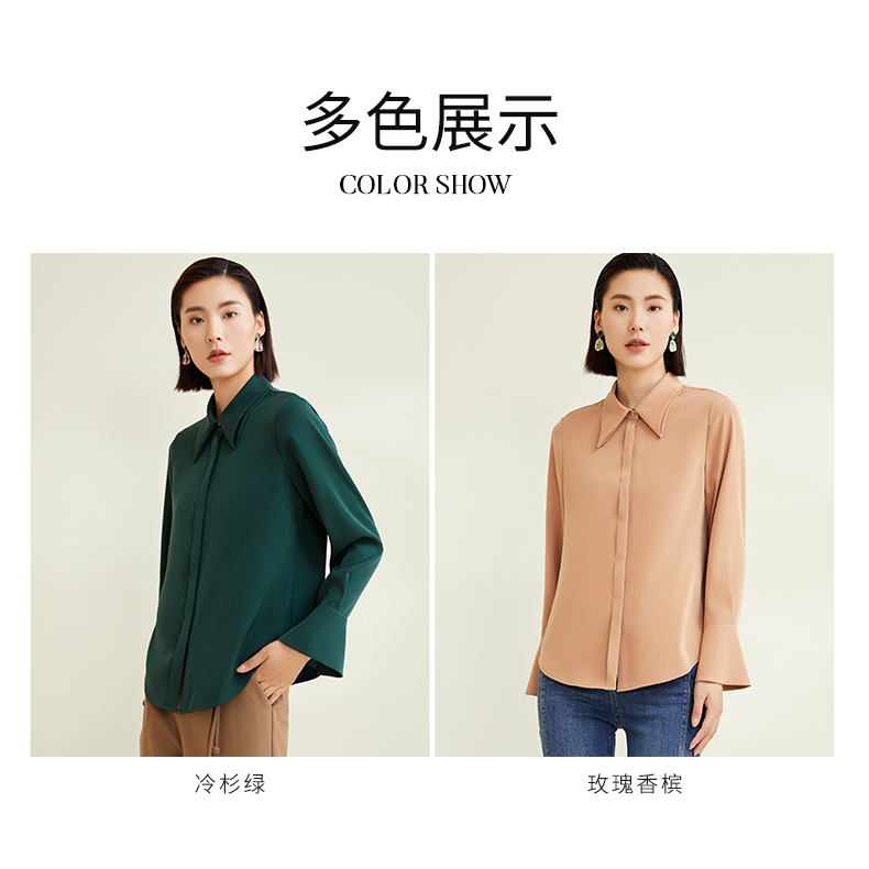 玳莎设计感尖领衬衫女2022早秋新款仿真丝衬衣通勤时尚简约上衣 CC31309