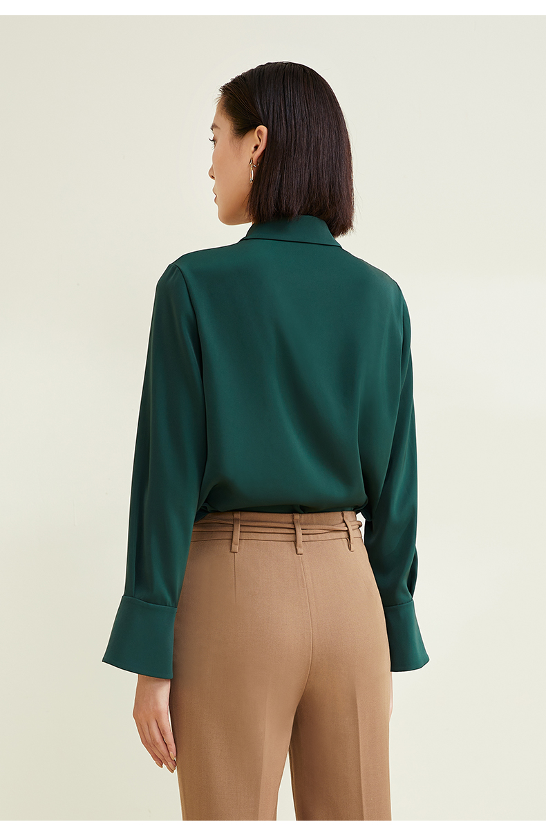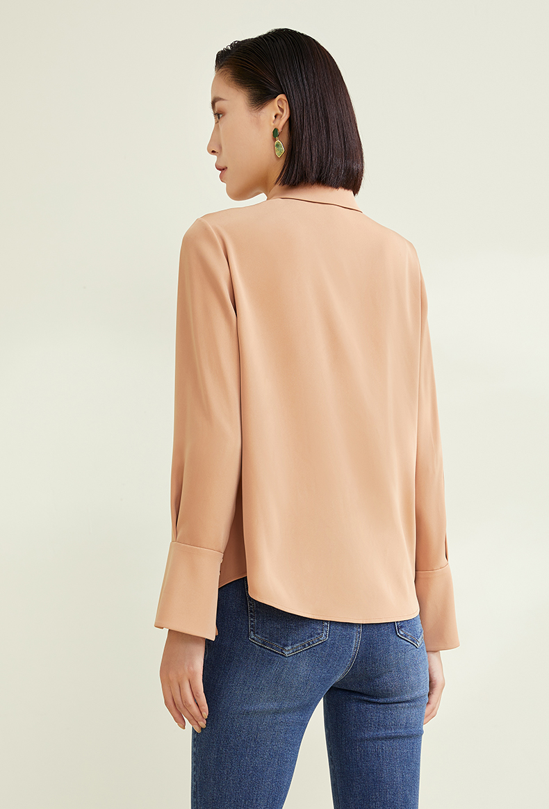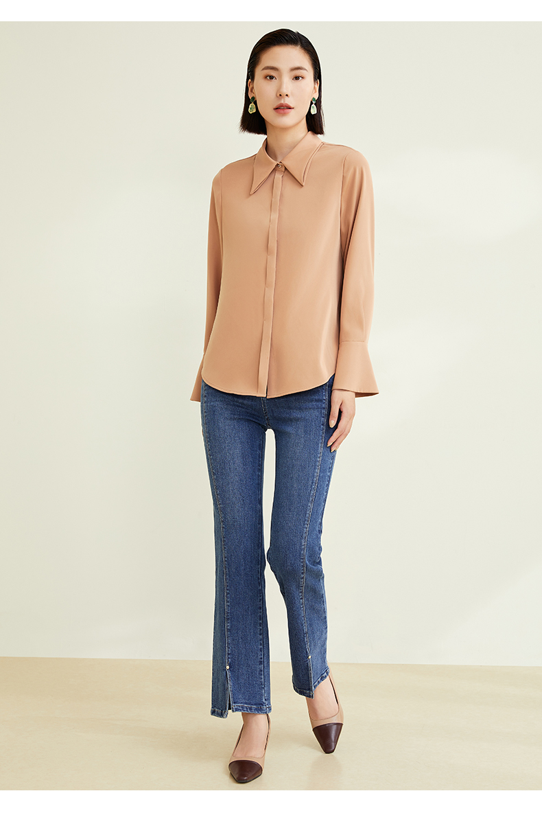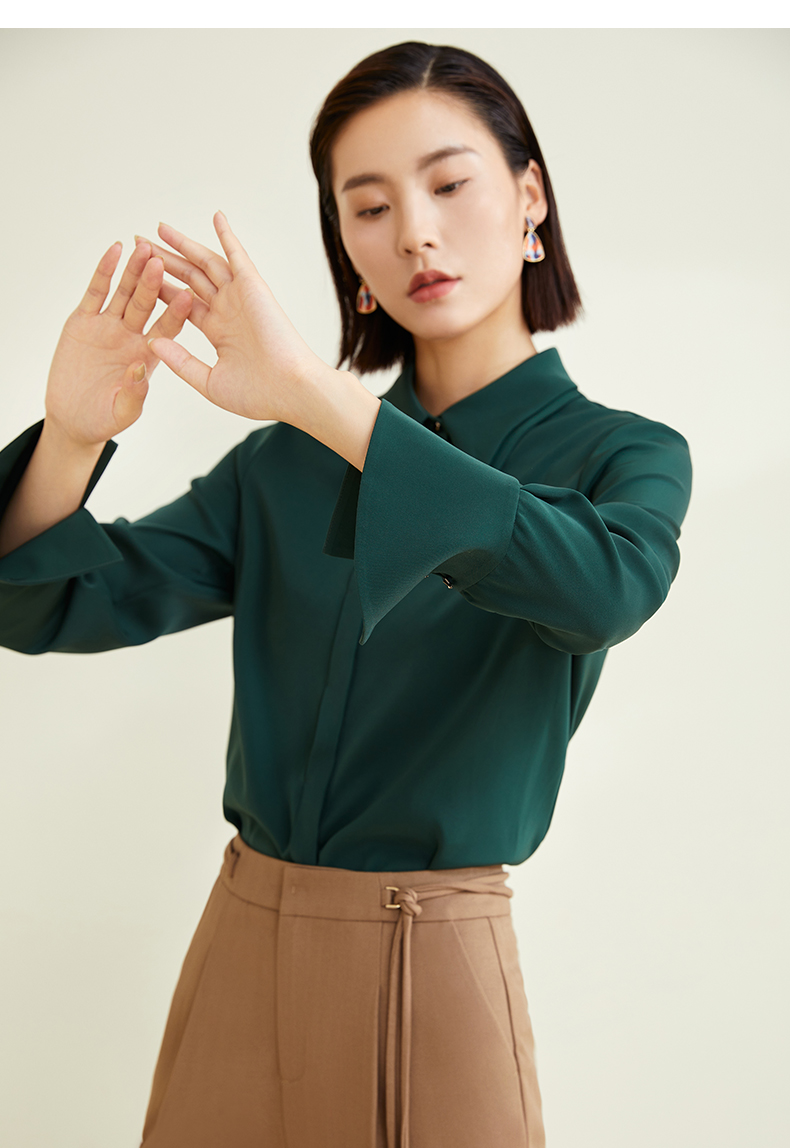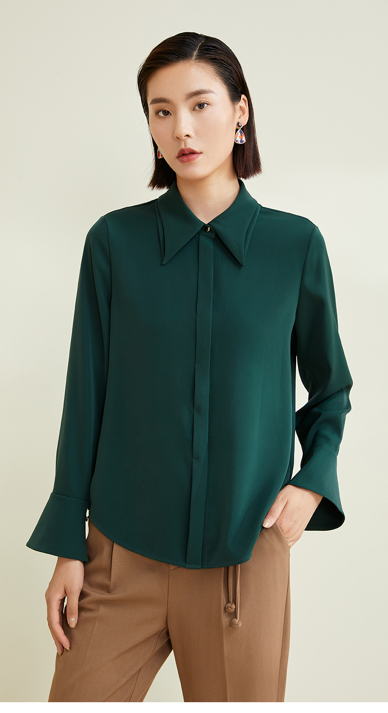玳莎设计感尖领衬衫女2022早秋新款仿真丝衬衣通勤时尚简约上衣 CC31309