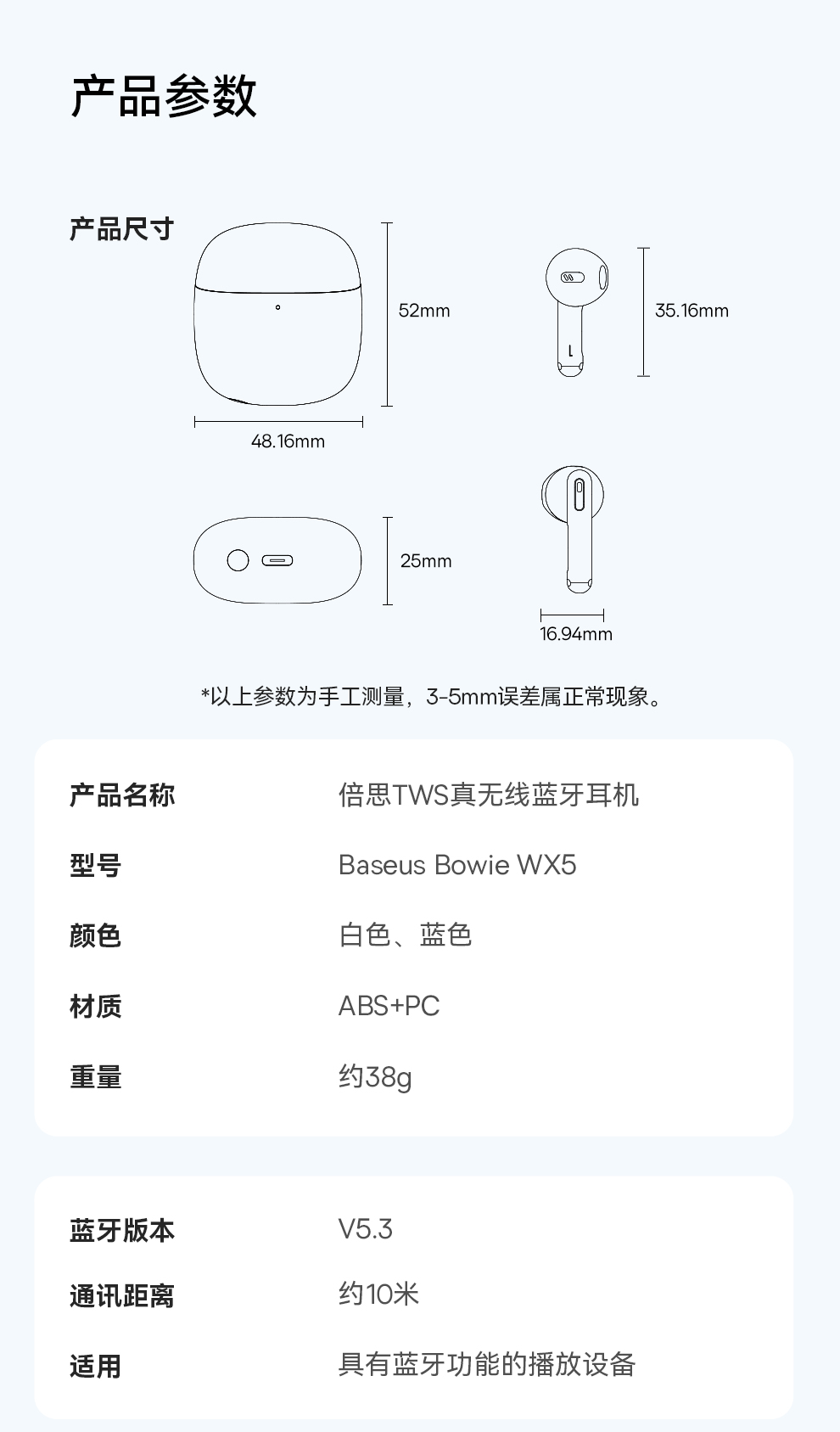 倍思 Bowie系列 WX5 真无线蓝牙耳机