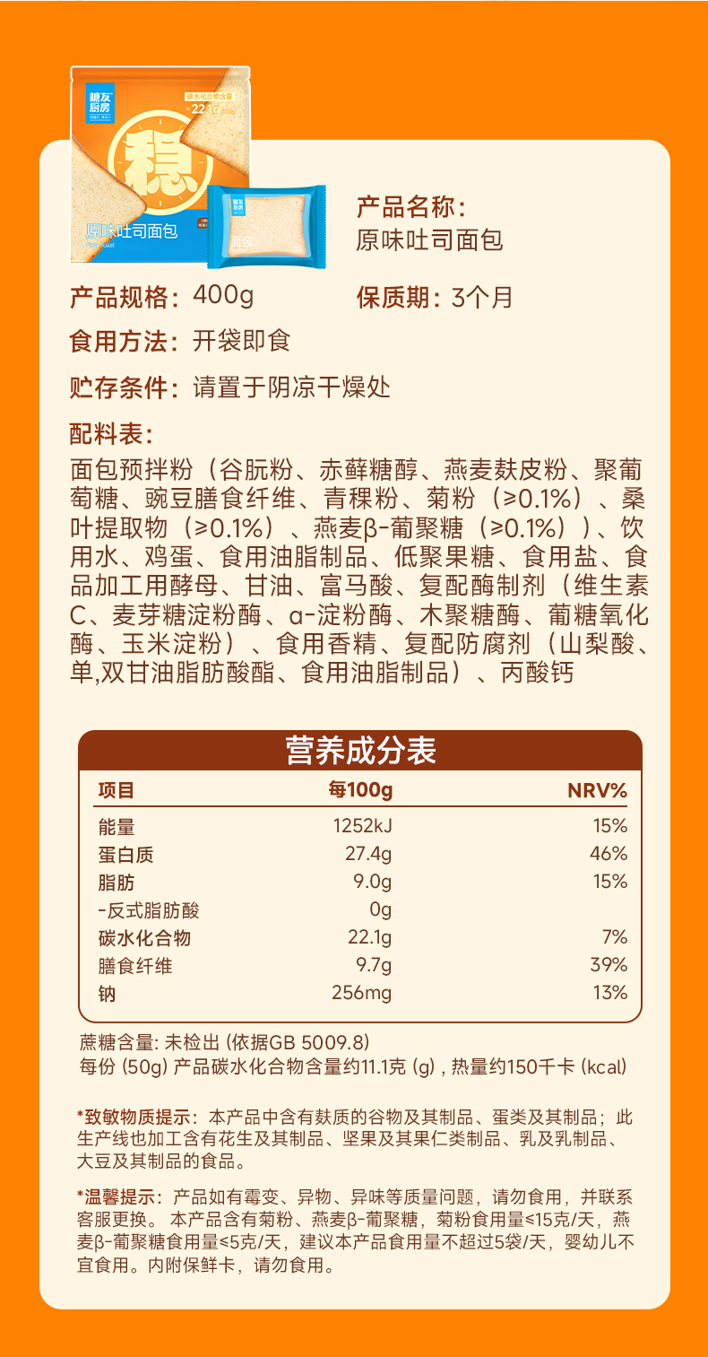 【糖友饱饱】稳定糖值放心吃的原味面包