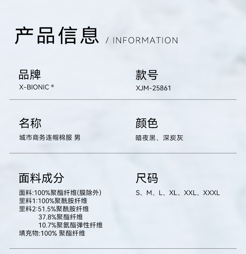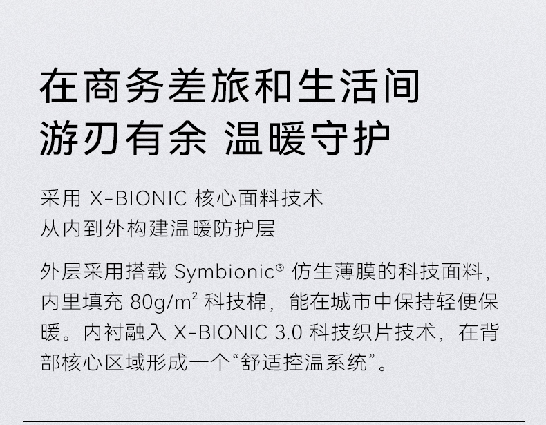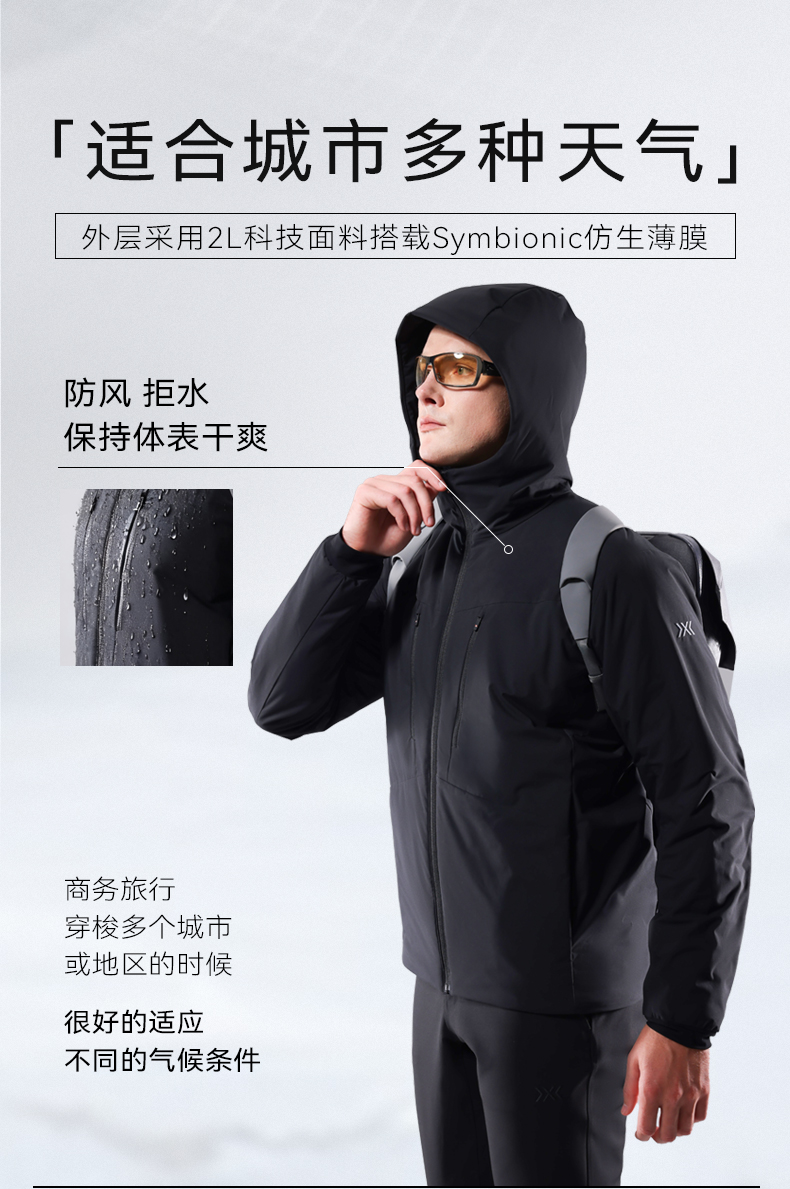 X-BIONIC 城市商务连帽80g棉服男 秋冬防风拒水轻量保暖商务通勤 XJM-25861