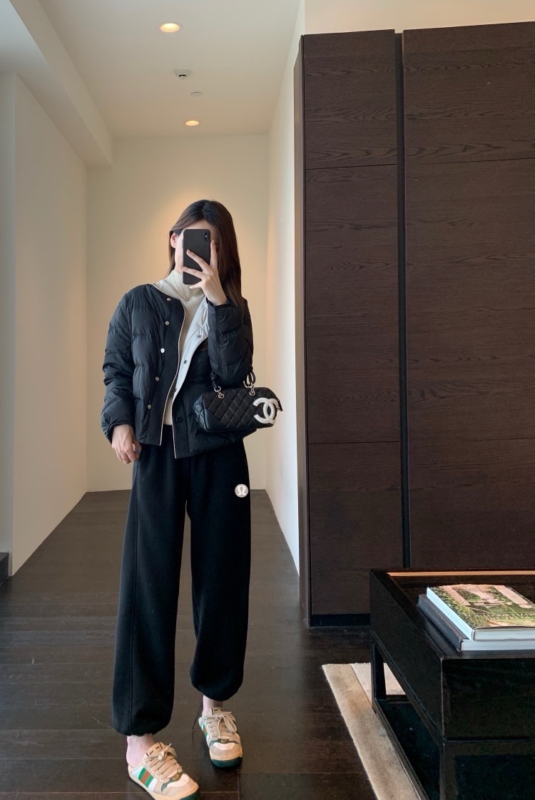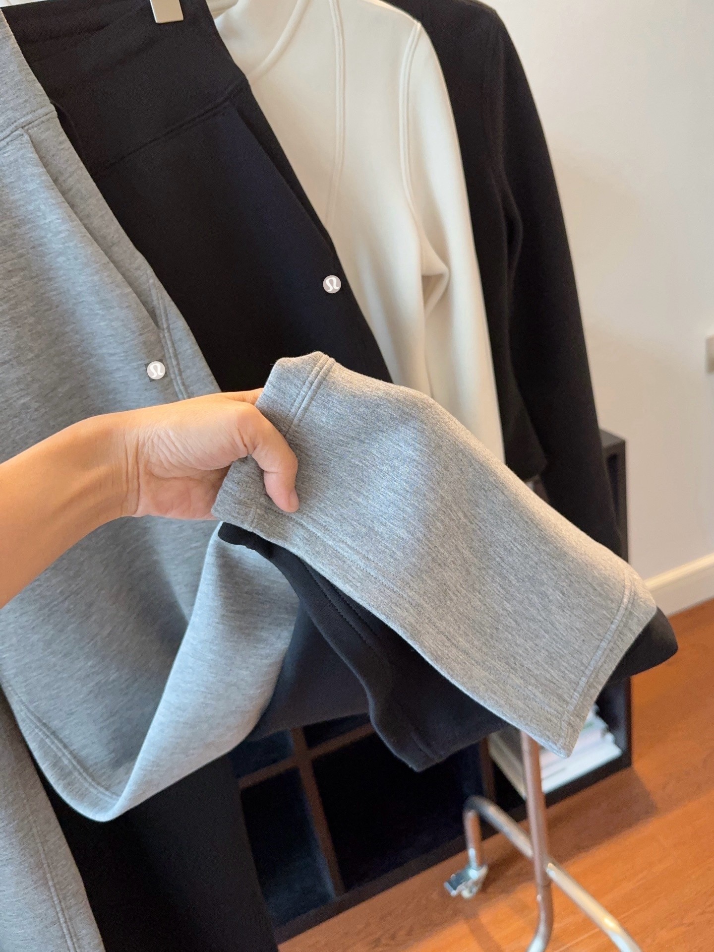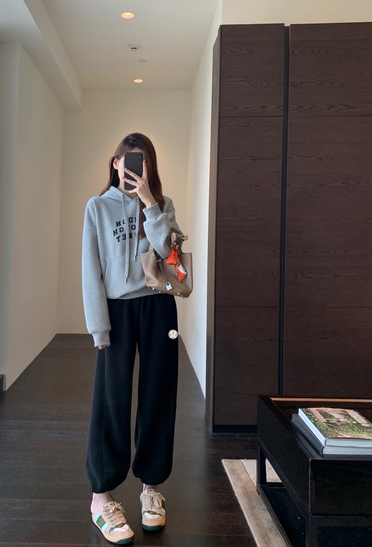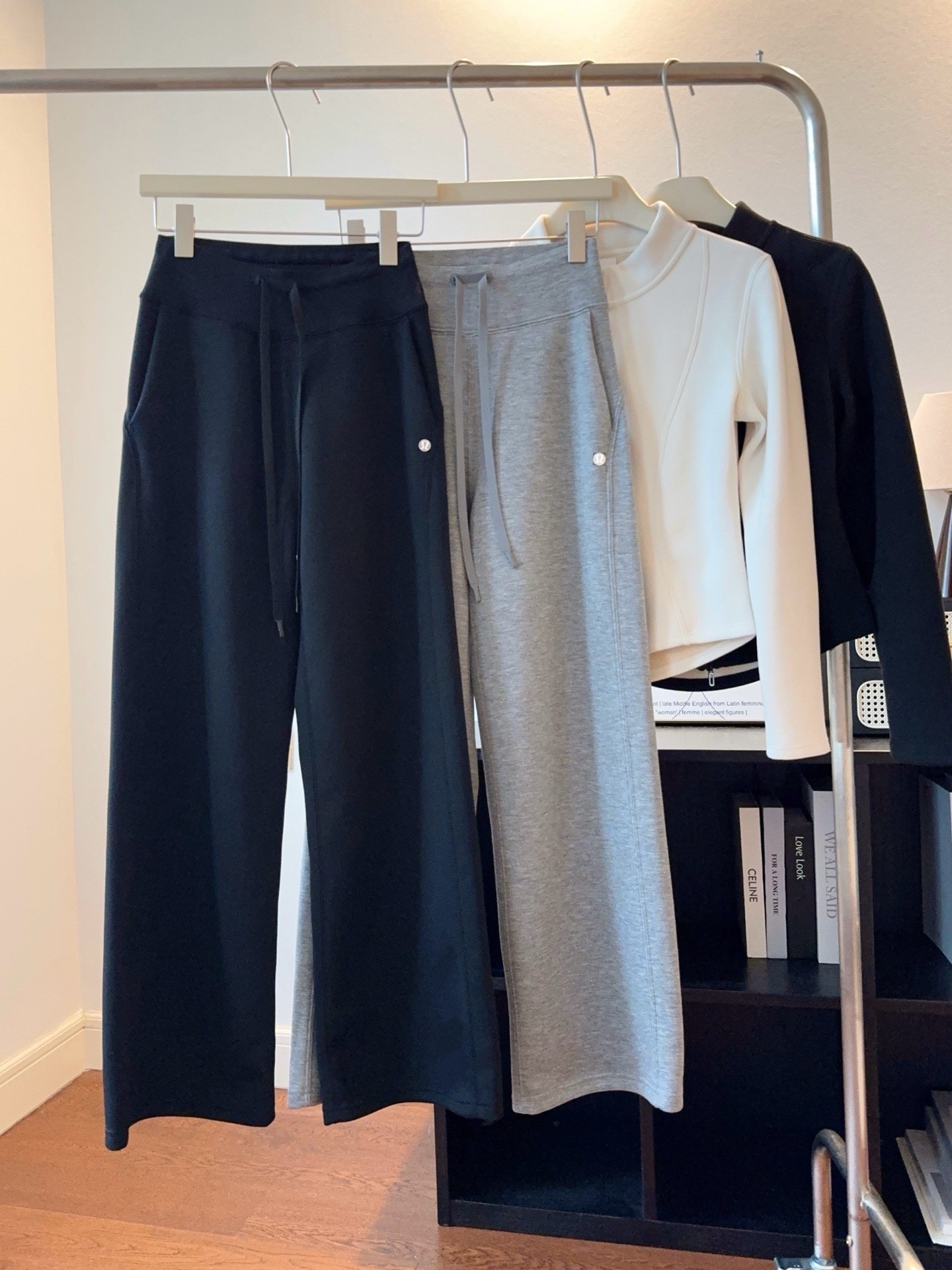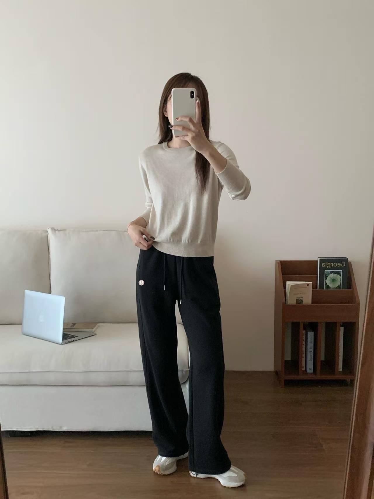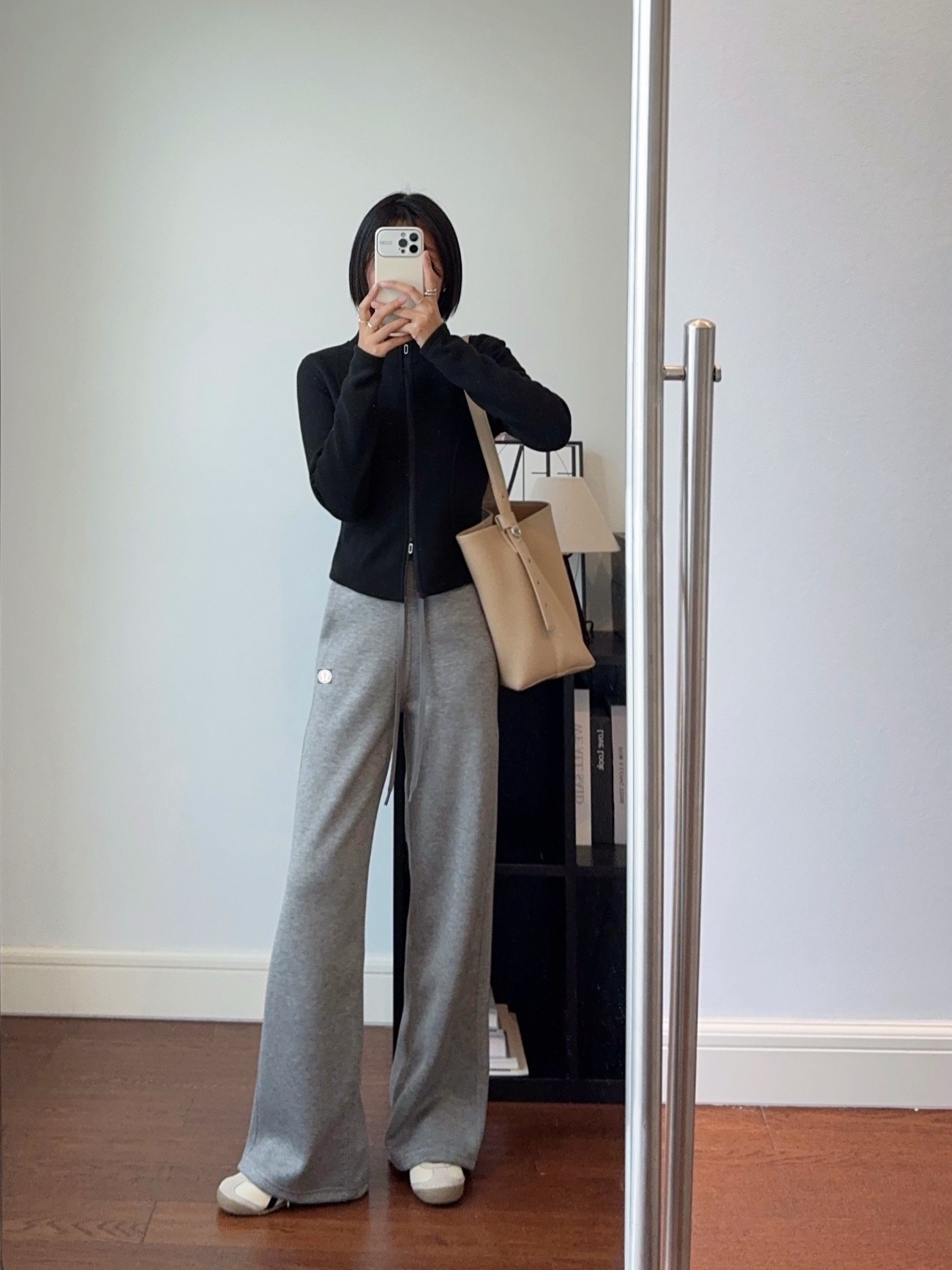 加绒裤升级款阔腿裤加绒款 裤子采用空气层面料,追求一种恰到好处的宽松度和流畅的垂坠感,从大腿或膝盖处开始自然向下、向外微扩,形成优雅的直筒效果,线条流畅利落,是打造长腿和气场的利器。裤子采用仿砂洗工艺,软糯亲肤,里面做了加绒处理,又保暖