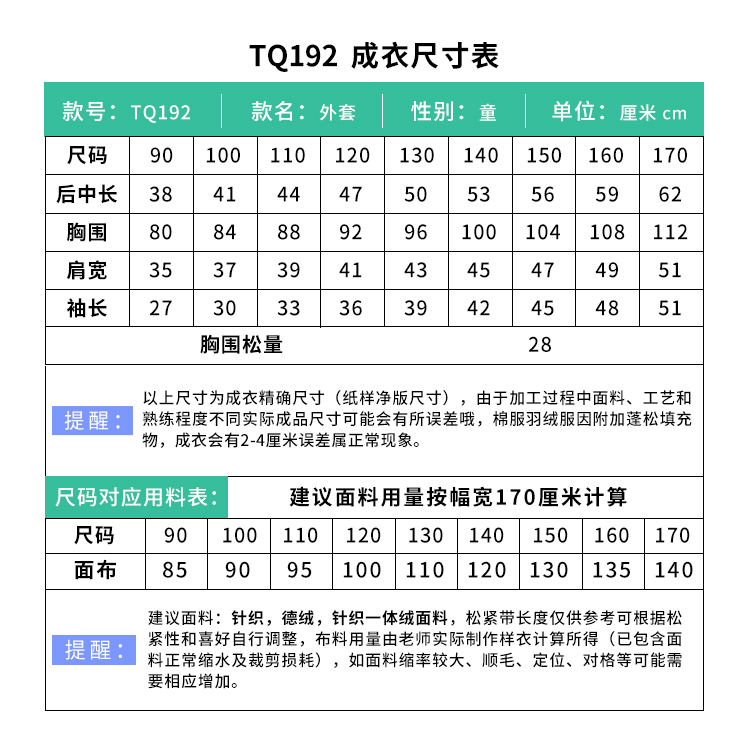 裁缝学苑TQ192儿童连帽外套纸样童装摇粒绒卫衣开衫打版裁剪图纸