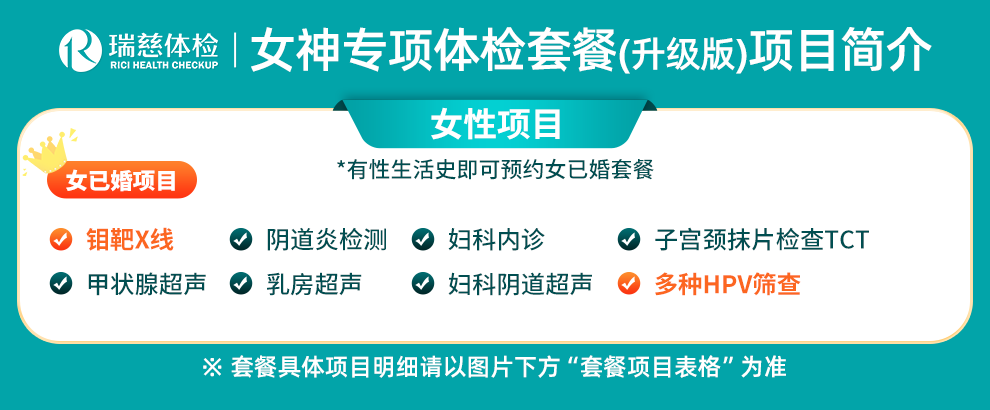 | 套餐名称:女神专项体检套餐(升级版)(建议35周岁以上使用) |