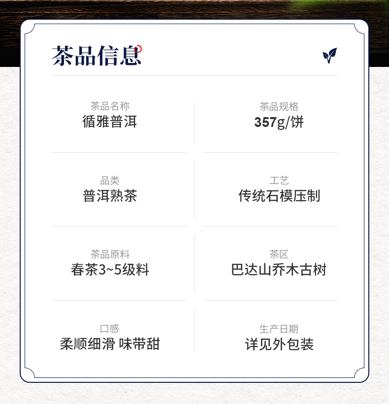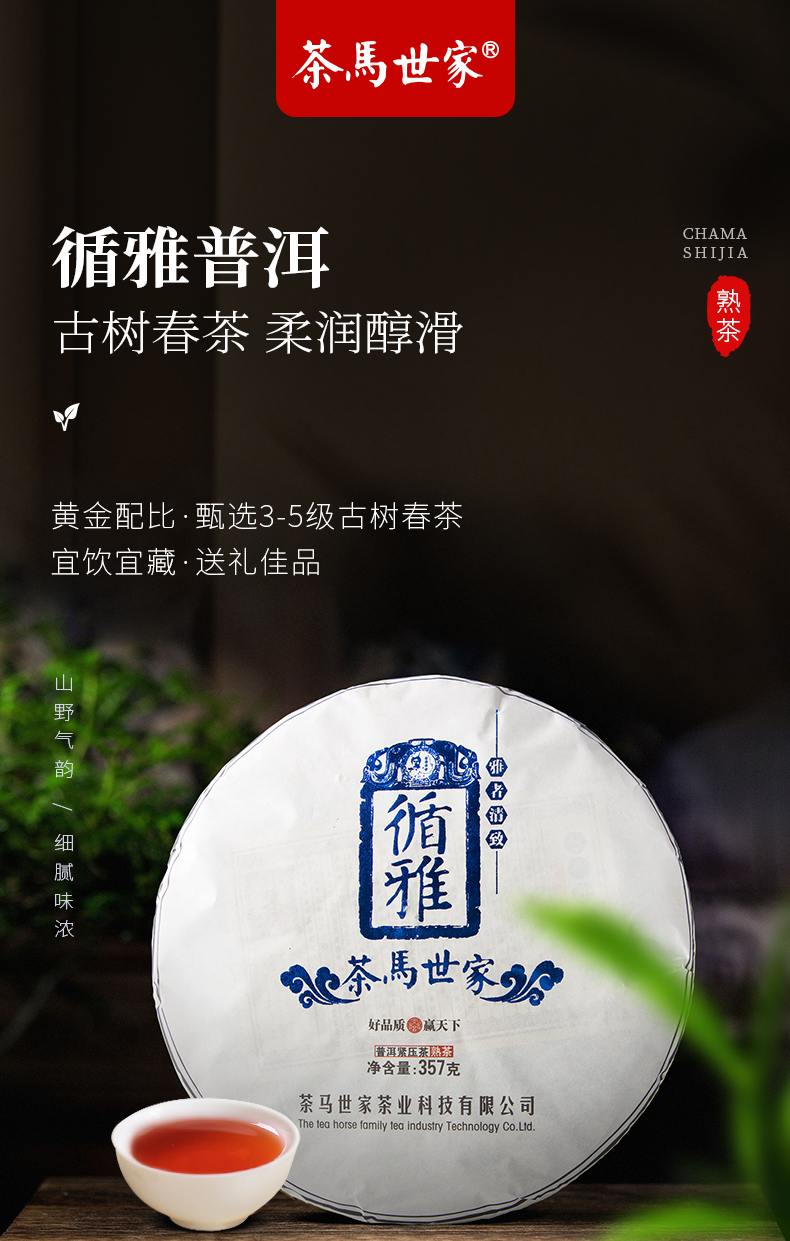 【野放春茶】茶马世家 循雅熟 云南普洱茶 熟茶饼茶 七子饼 357g