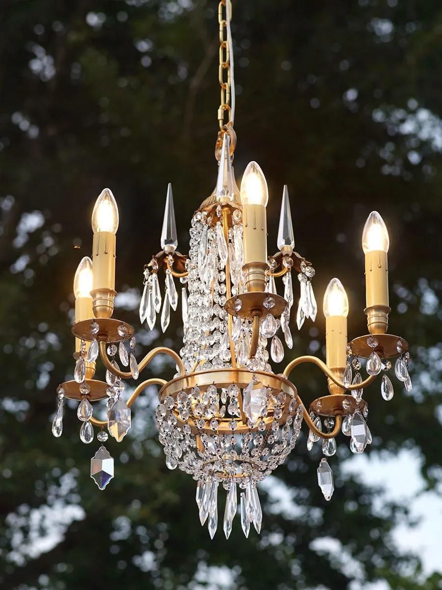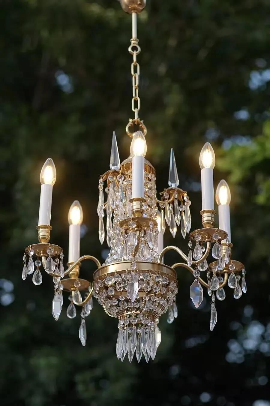 这盏灯最早的一批,我们采用和原版一模一样的白色塑料蜡烛管,效果欠佳。所以,这次我们将塑料蜡烛管换成了和经典六臂大黄铜水晶灯一样的纸质蜡烛管,颜色和灯体趋于一致,效果好多了。