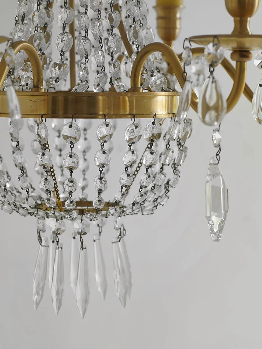 品名:伽罗JALO 水滴型多珠六臂黄铜水晶吊灯