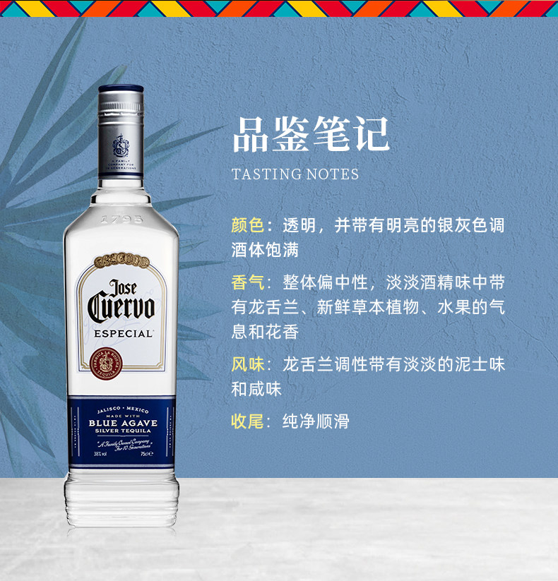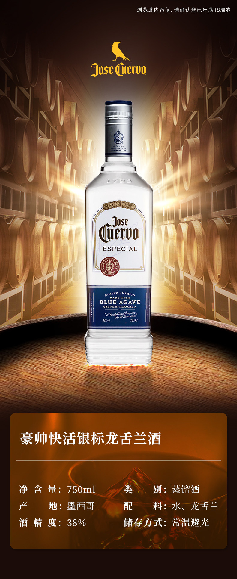 墨西哥洋酒 豪帅银快活龙舌兰酒 白金特基拉750ml/瓶