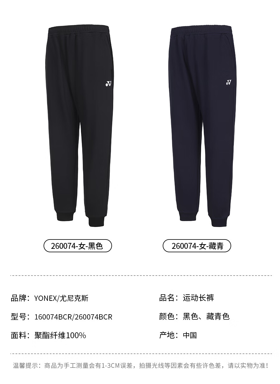 尤尼克斯 男女同款 针织运动长裤 160074BCR/260074BCR