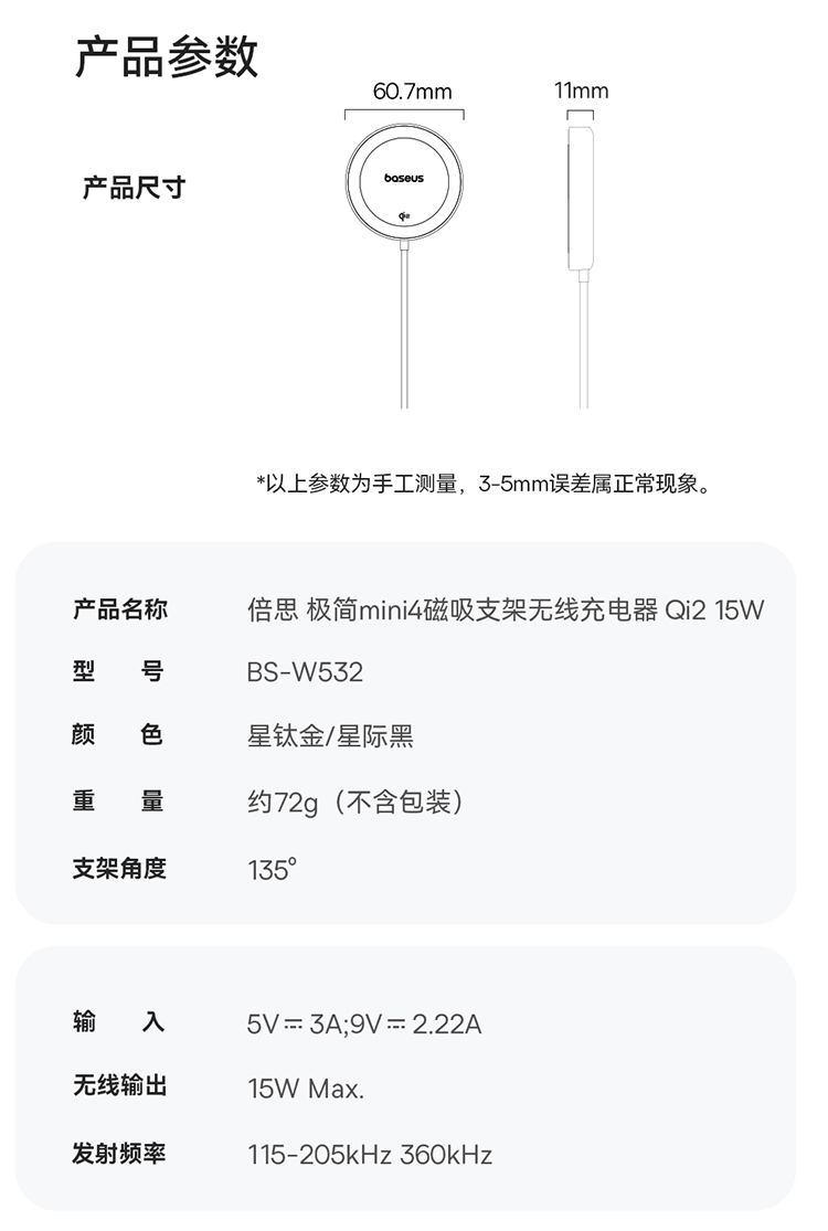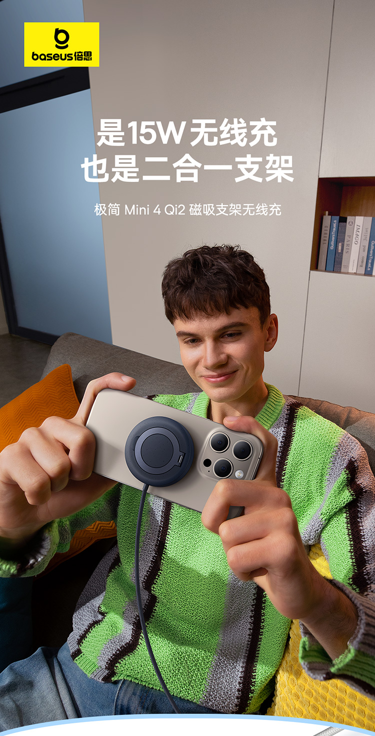 倍思 极简Mini 4 磁吸支架无线充 Qi2 15W 全球通类
