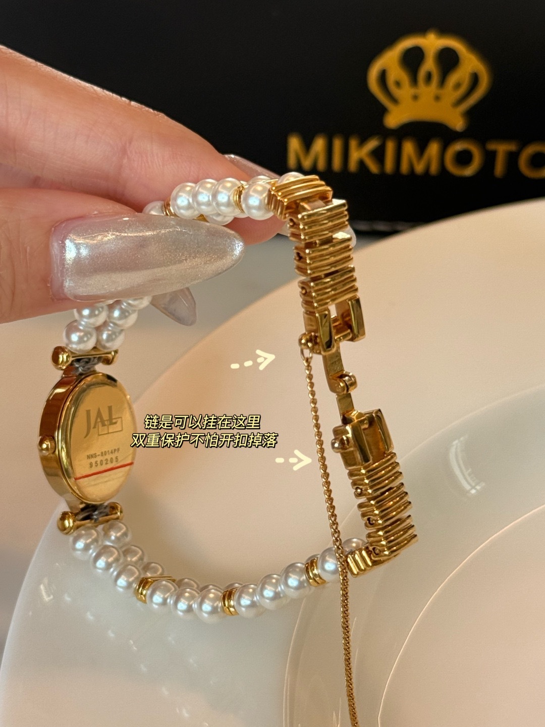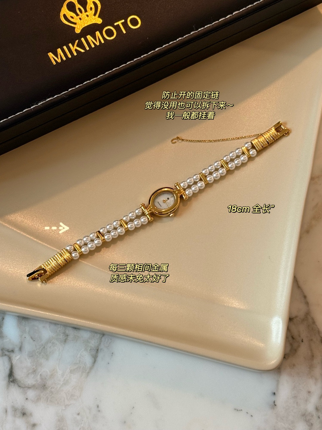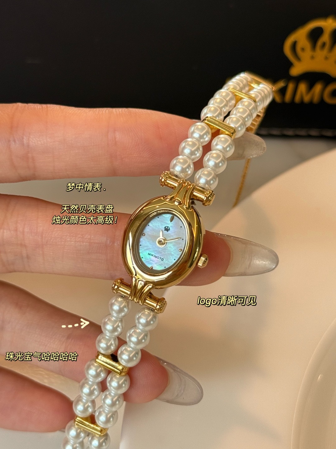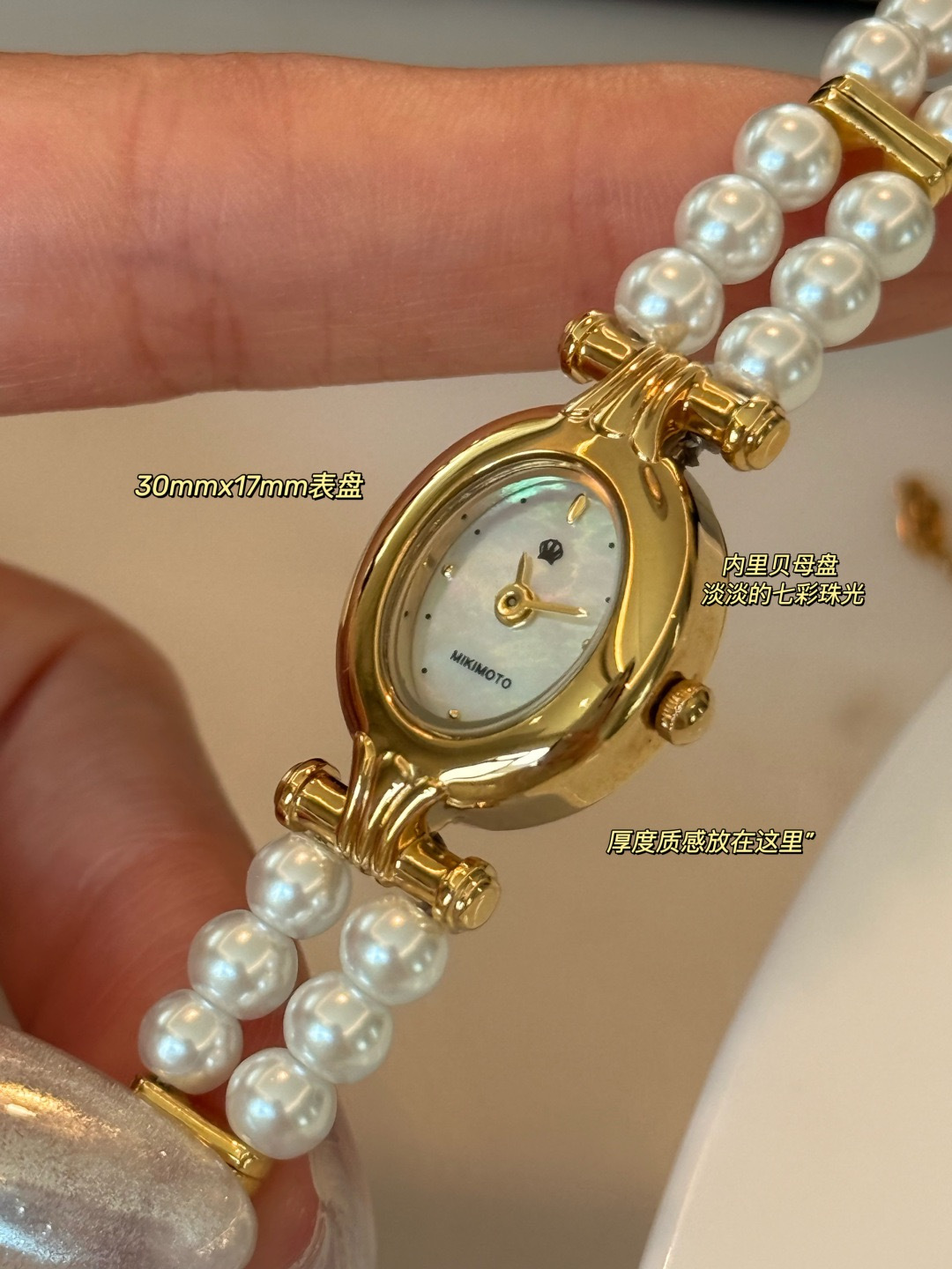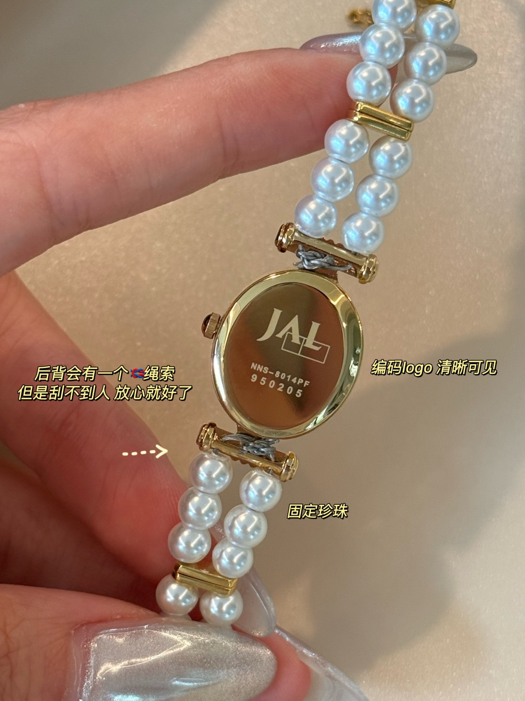 金属全部都是316al不锈钢表壳,进口日本机芯,镀18K真金0.4mm,日本施华洛世奇珍珠,品牌店同售一条珍珠手链都是1千+,这条手表珍珠用到了双链设计。成本更高。