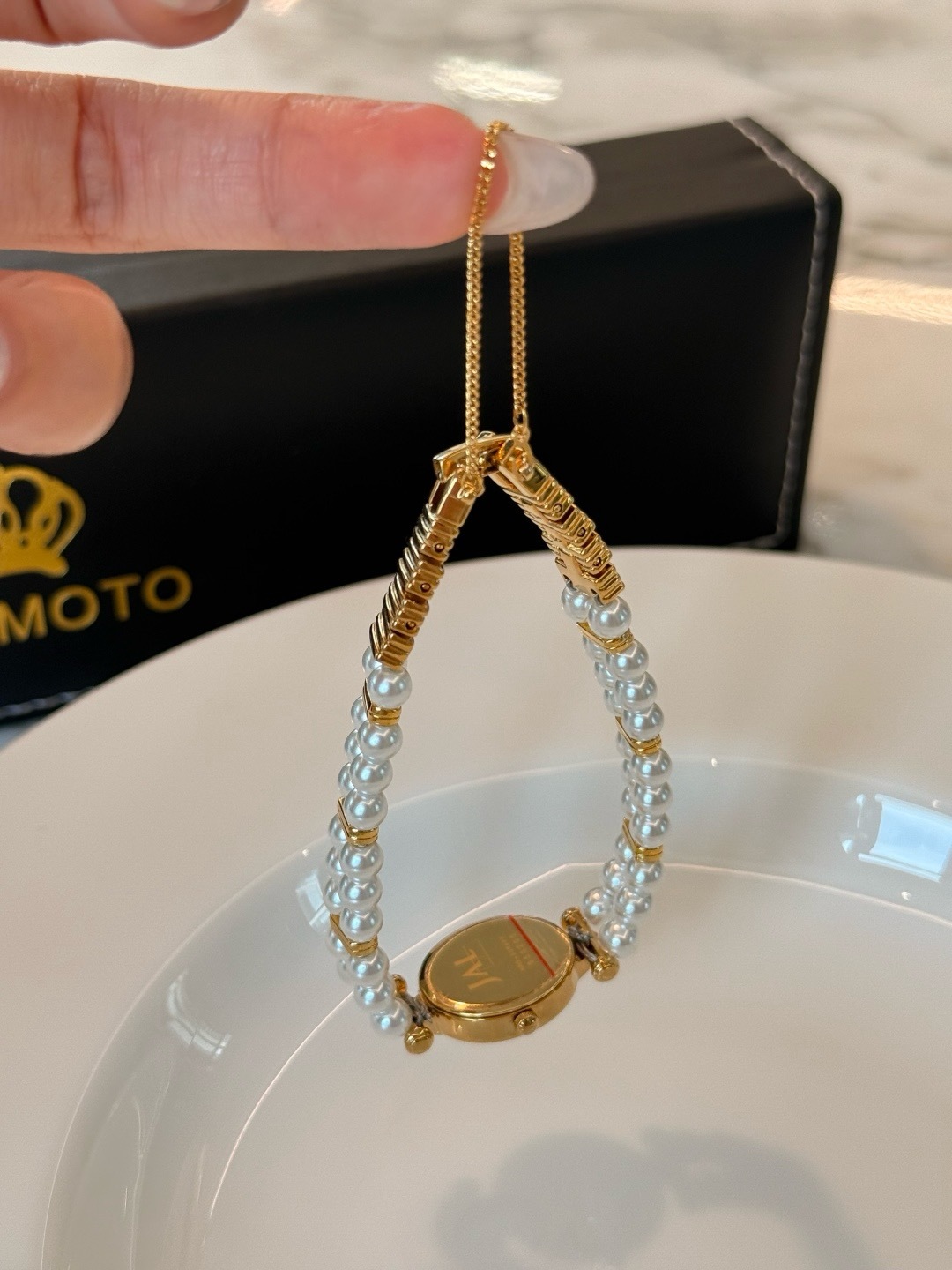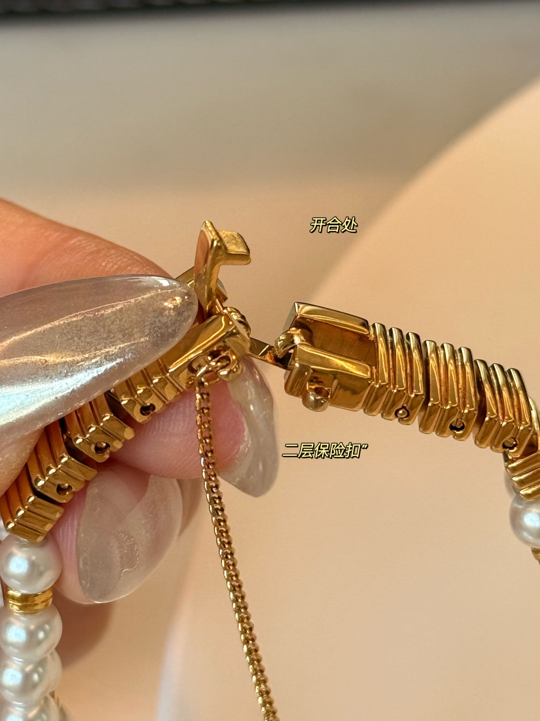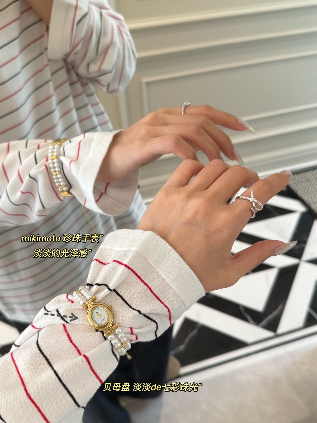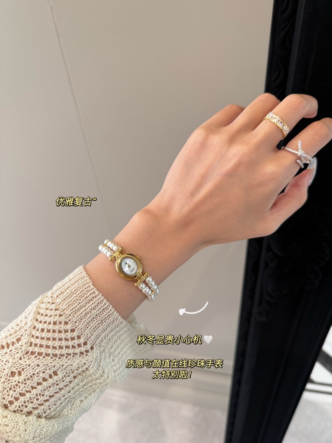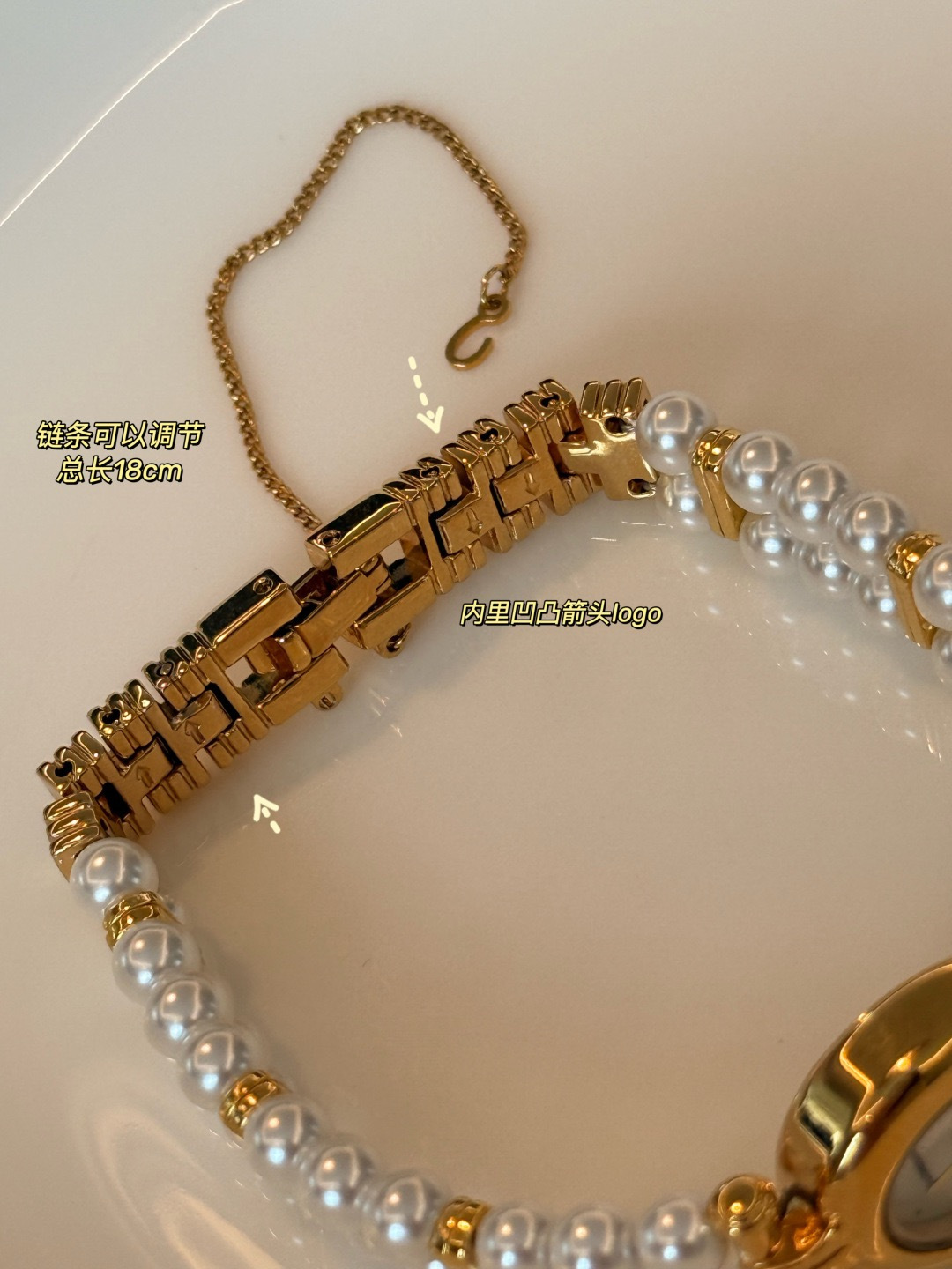 金属全部都是316al不锈钢表壳,进口日本机芯,镀18K真金0.4mm,日本施华洛世奇珍珠,品牌店同售一条珍珠手链都是1千+,这条手表珍珠用到了双链设计。成本更高。