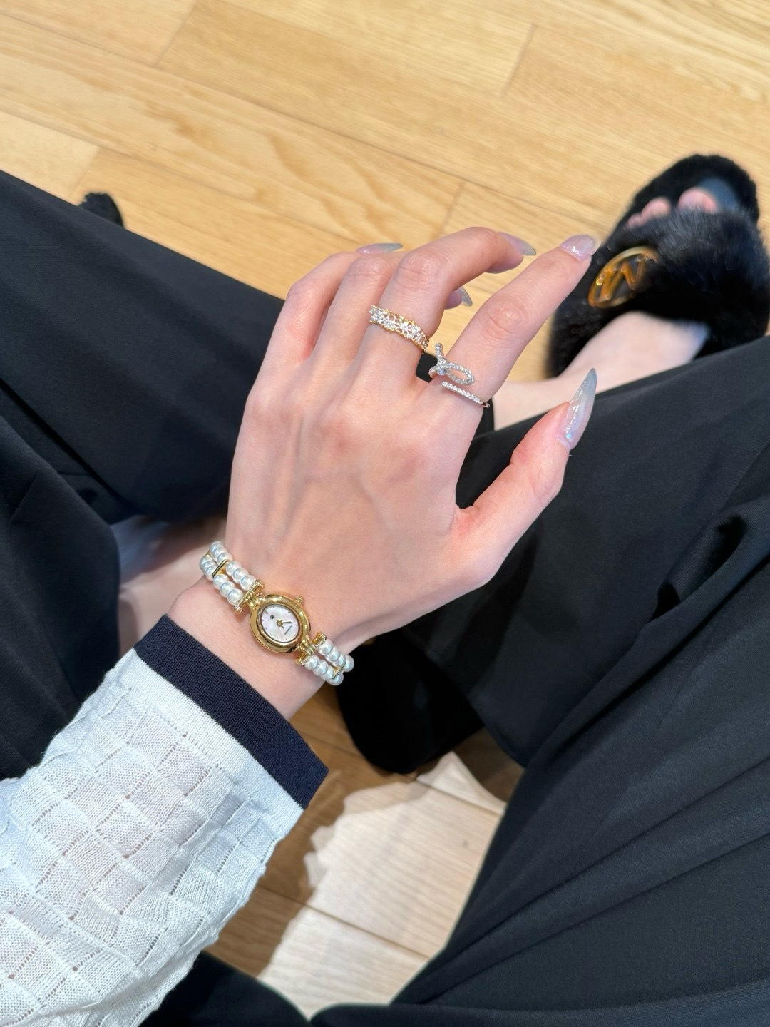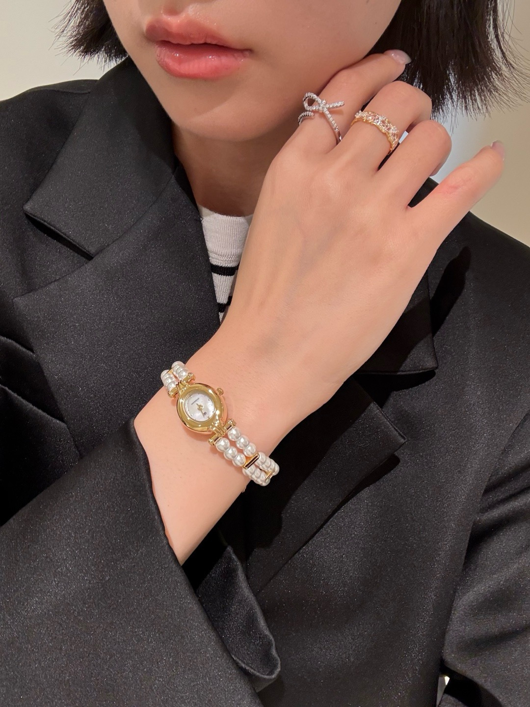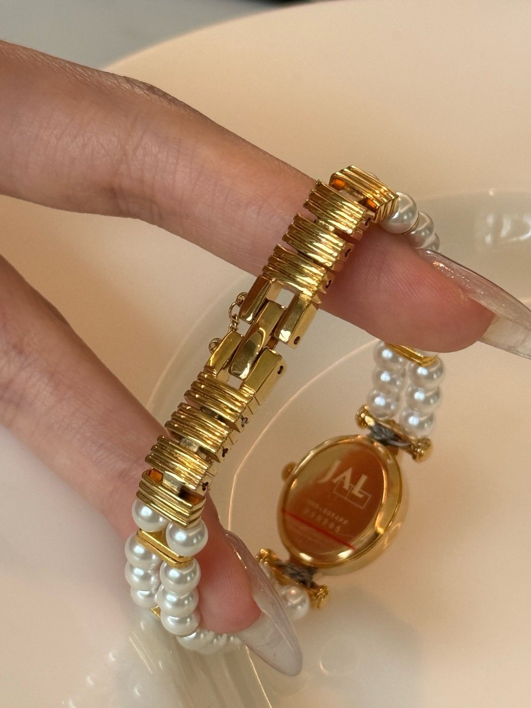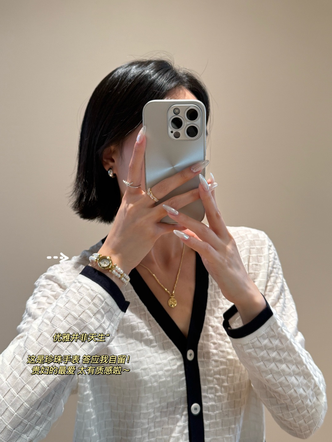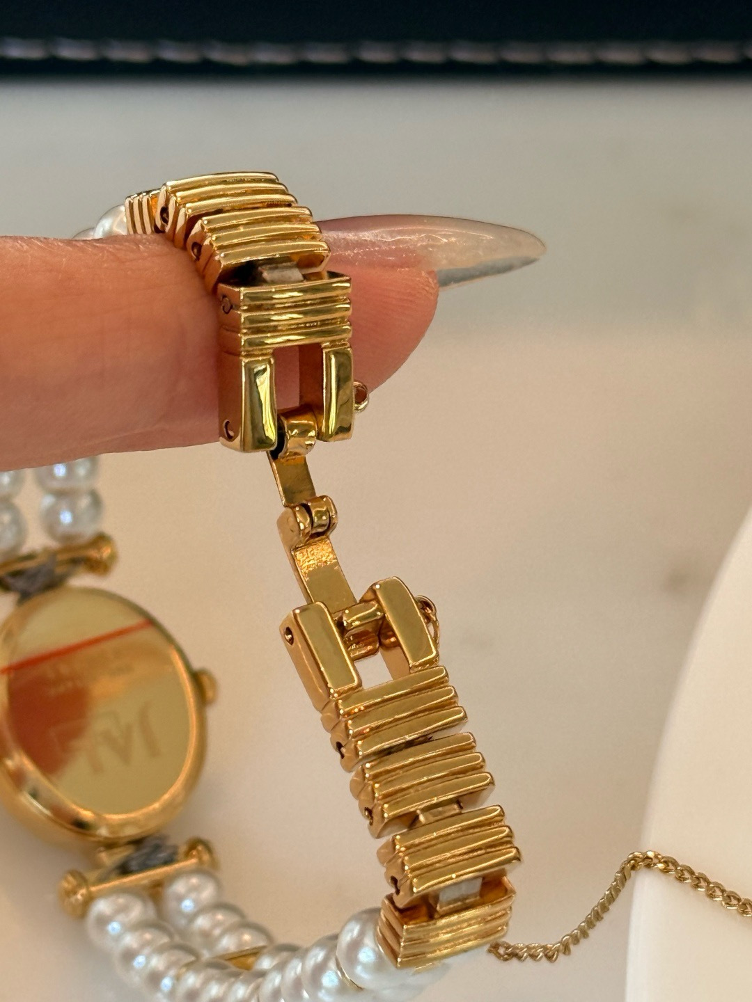 金属全部都是316al不锈钢表壳,进口日本机芯,镀18K真金0.4mm,日本施华洛世奇珍珠,品牌店同售一条珍珠手链都是1千+,这条手表珍珠用到了双链设计。成本更高。