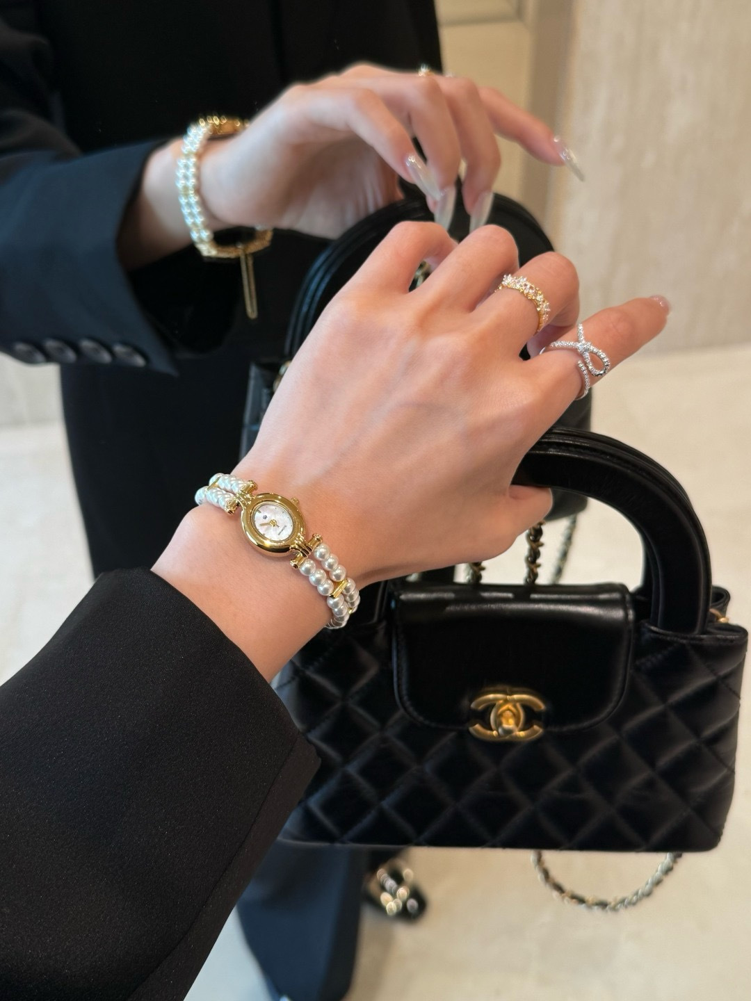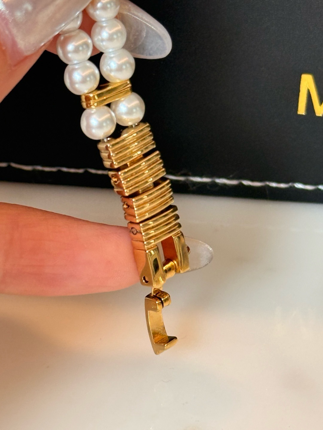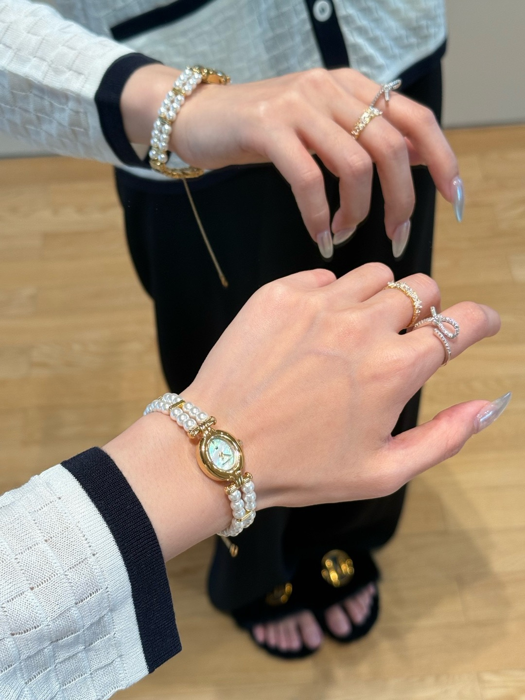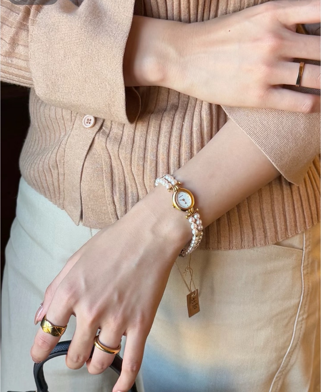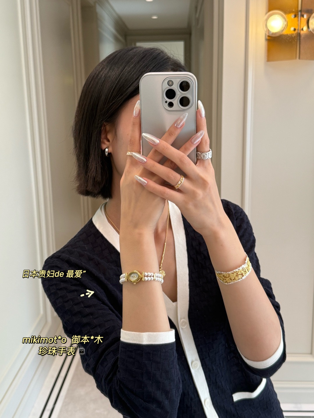 金属全部都是316al不锈钢表壳,进口日本机芯,镀18K真金0.4mm,日本施华洛世奇珍珠,品牌店同售一条珍珠手链都是1千+,这条手表珍珠用到了双链设计。成本更高。
