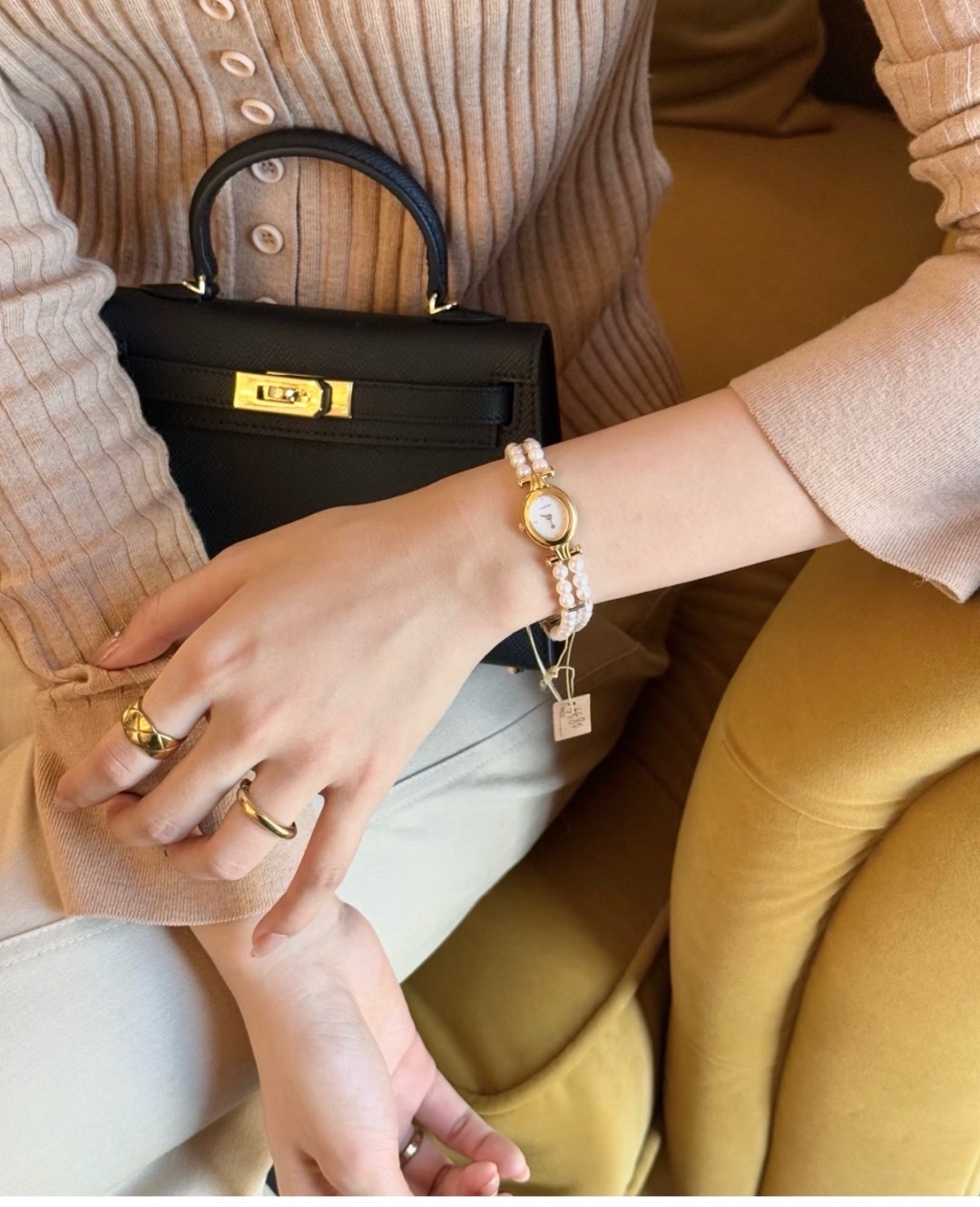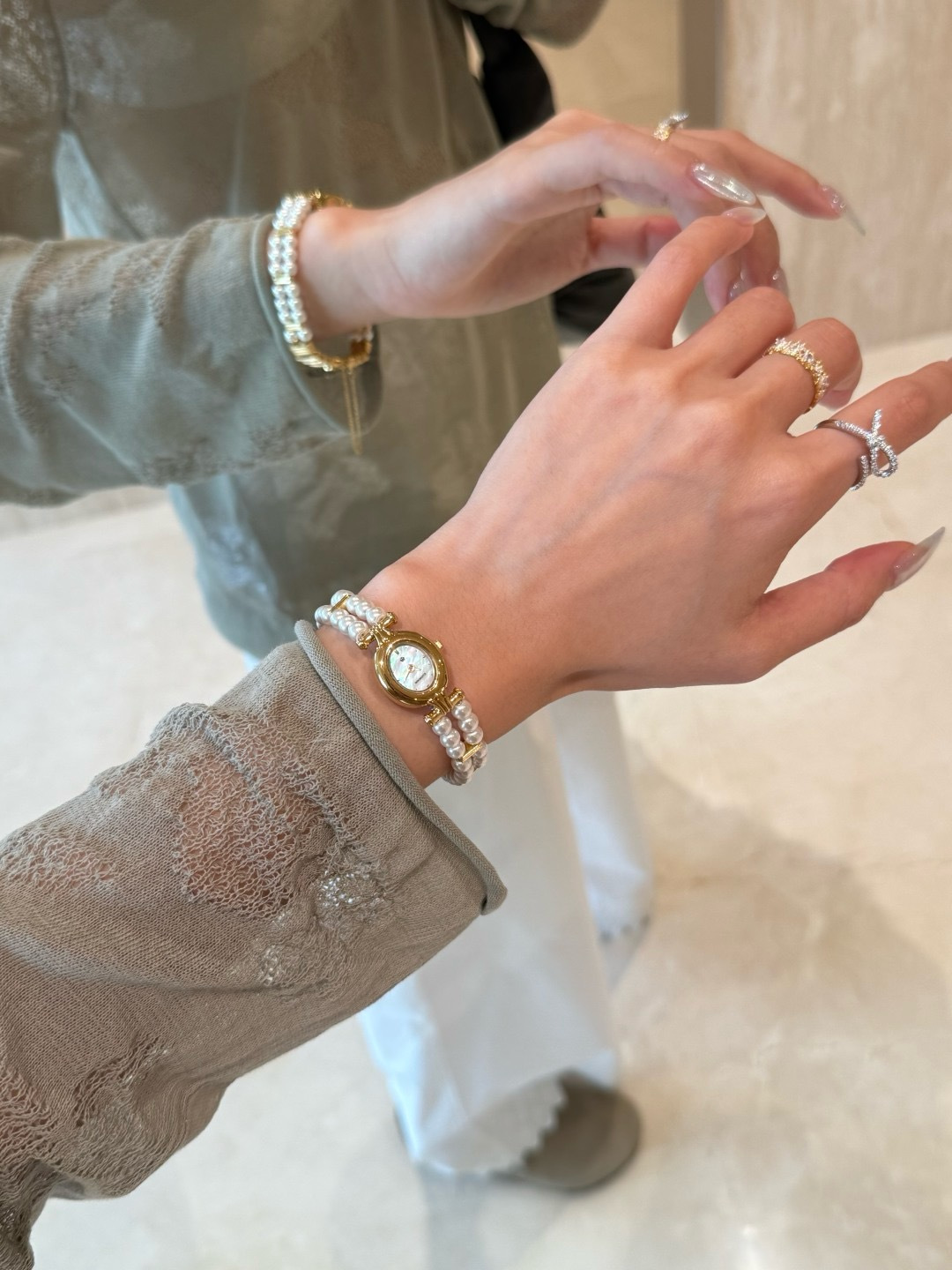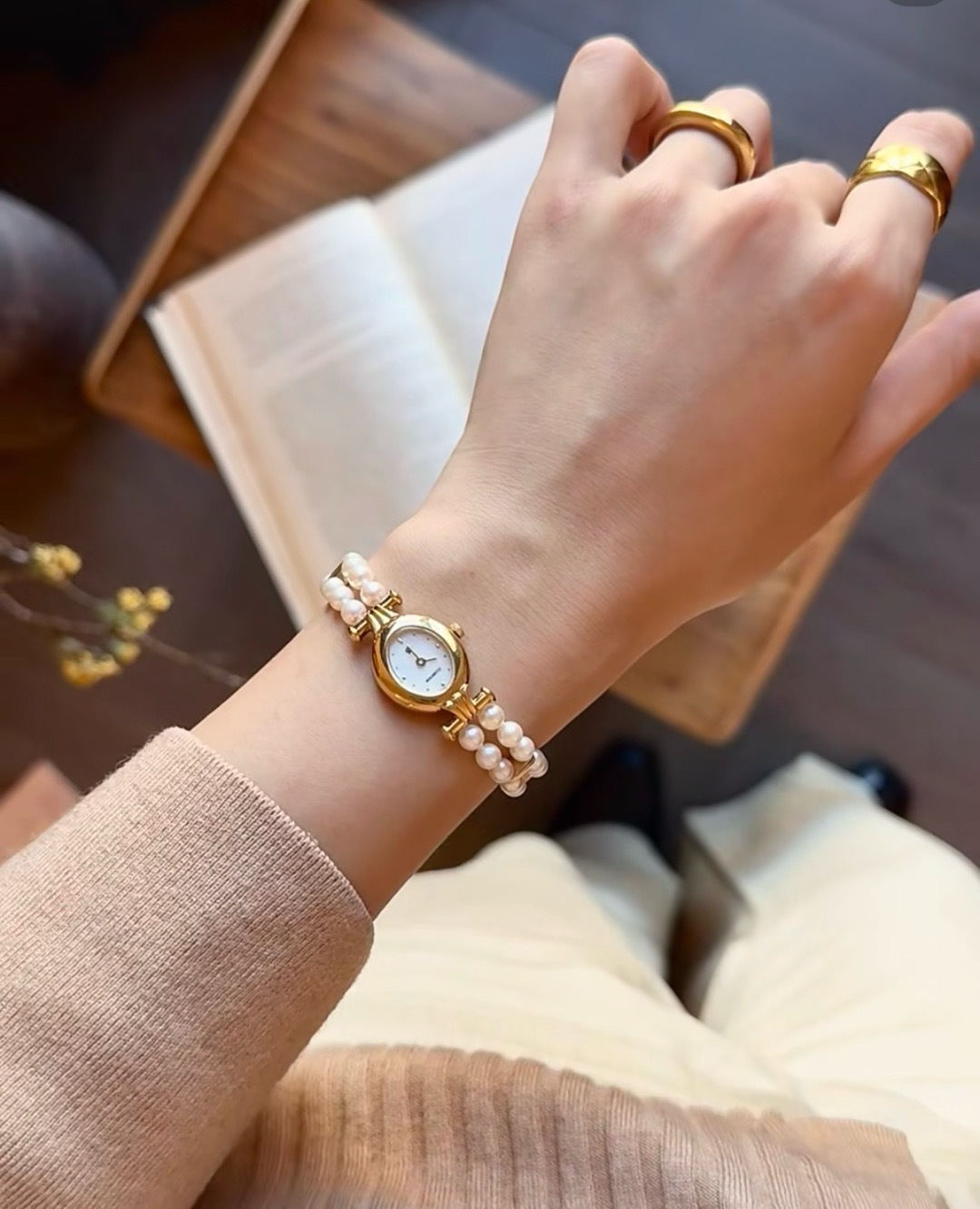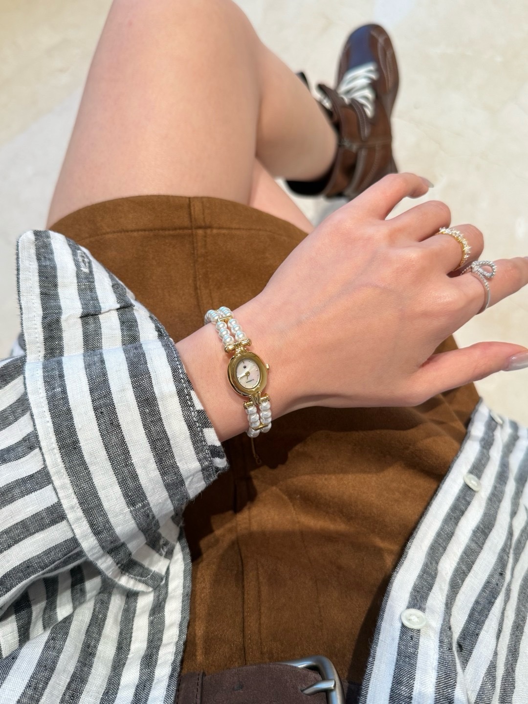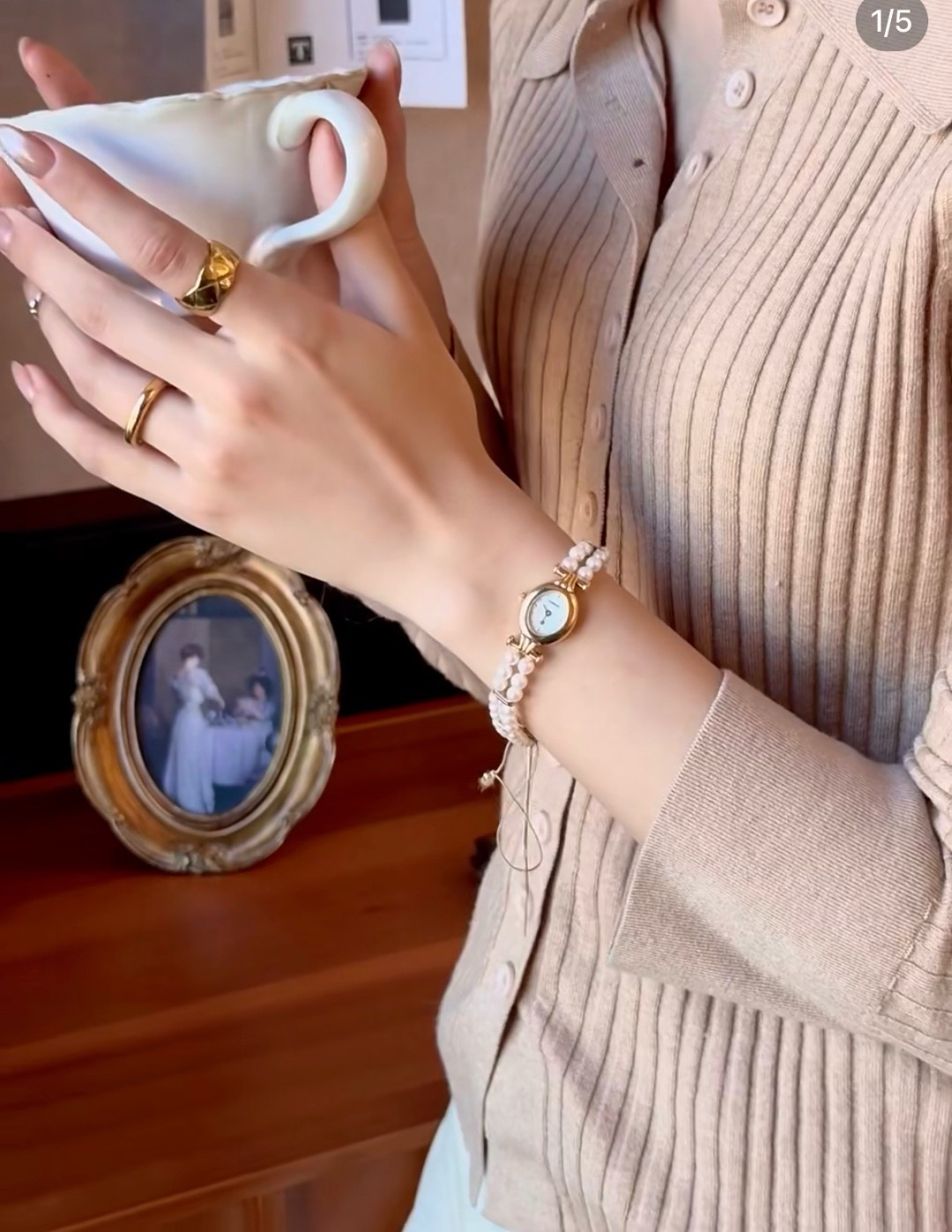 金属全部都是316al不锈钢表壳,进口日本机芯,镀18K真金0.4mm,日本施华洛世奇珍珠,品牌店同售一条珍珠手链都是1千+,这条手表珍珠用到了双链设计。成本更高。
