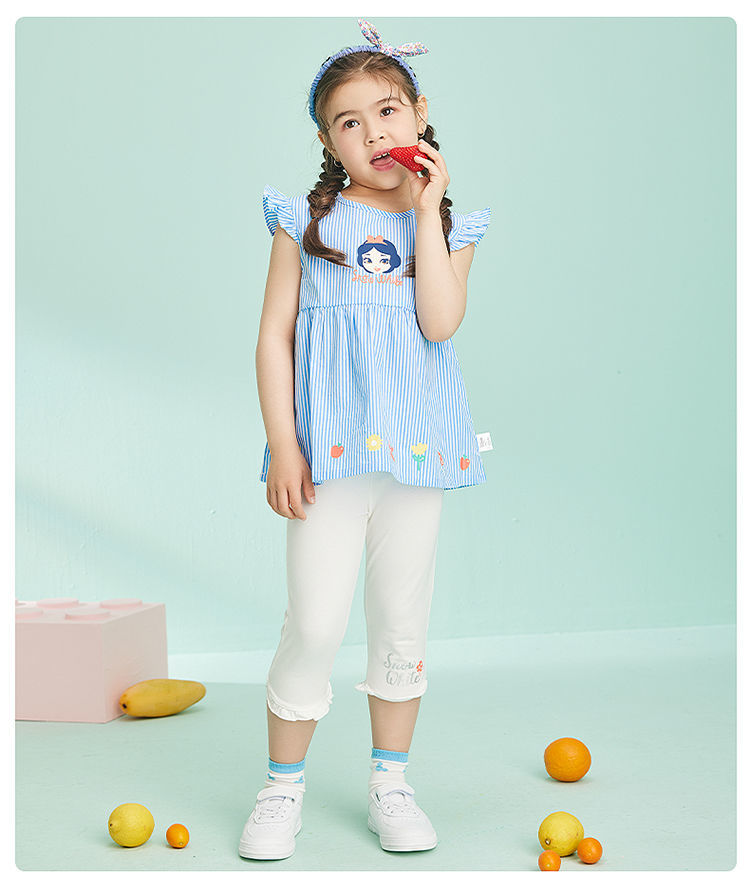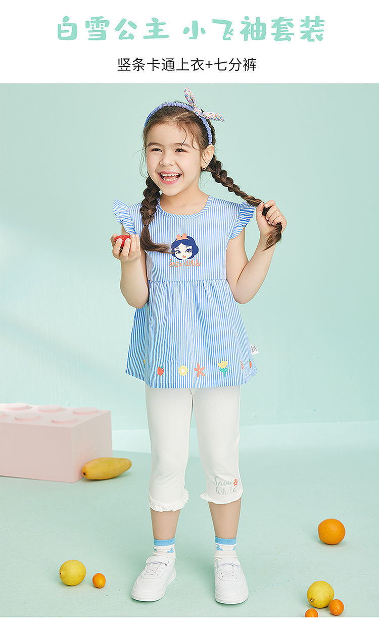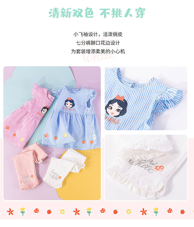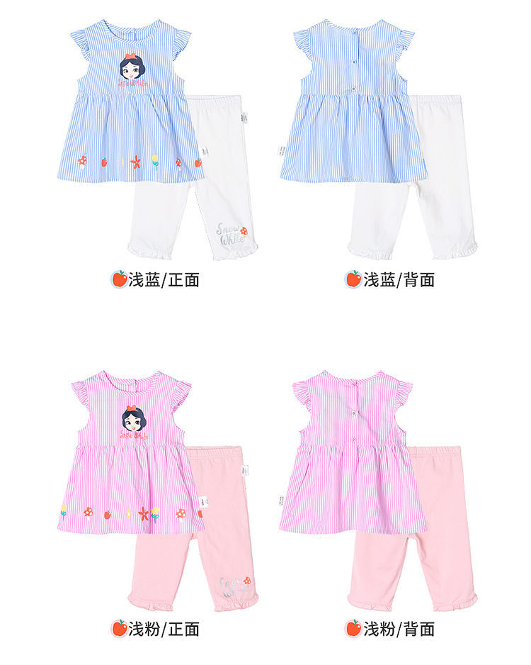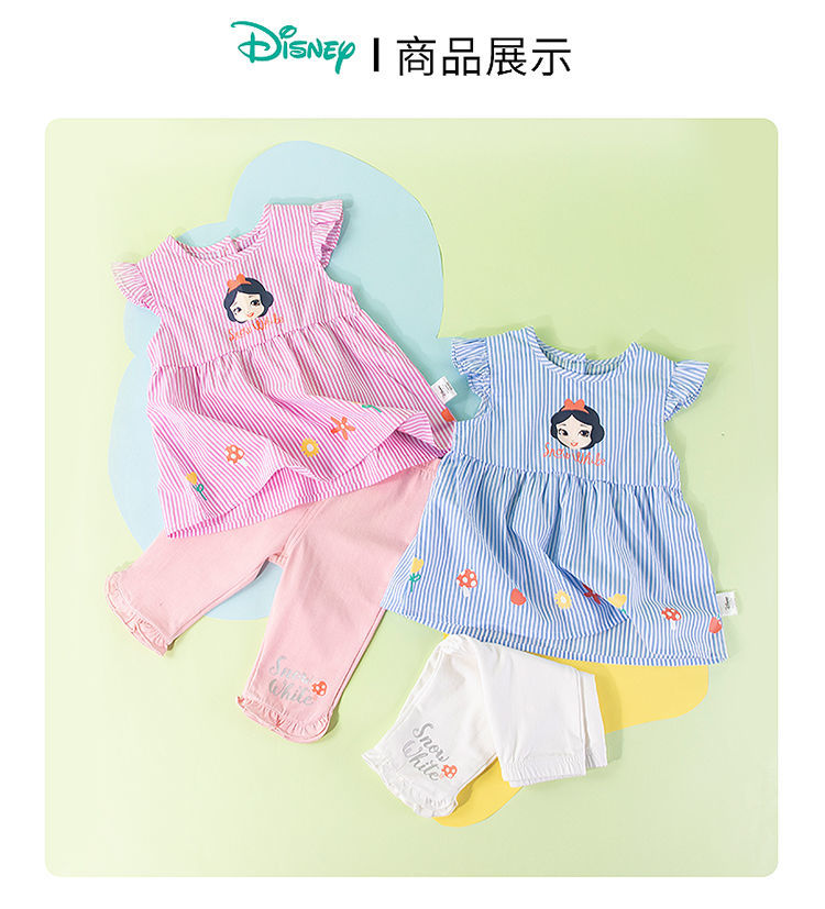 迪士尼童装 儿童套装女童洋气婴儿短袖宝宝新款条纹无袖清凉212T1252