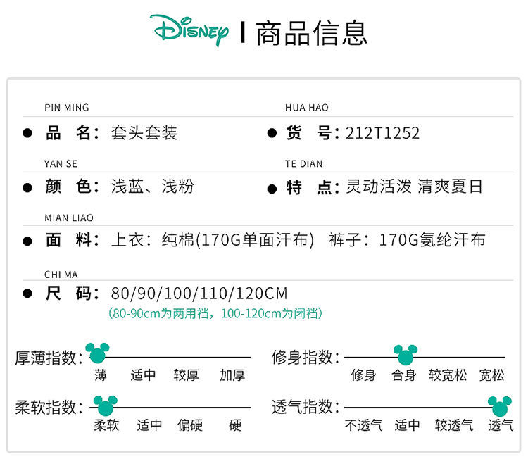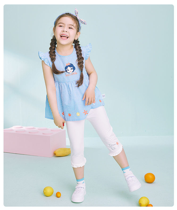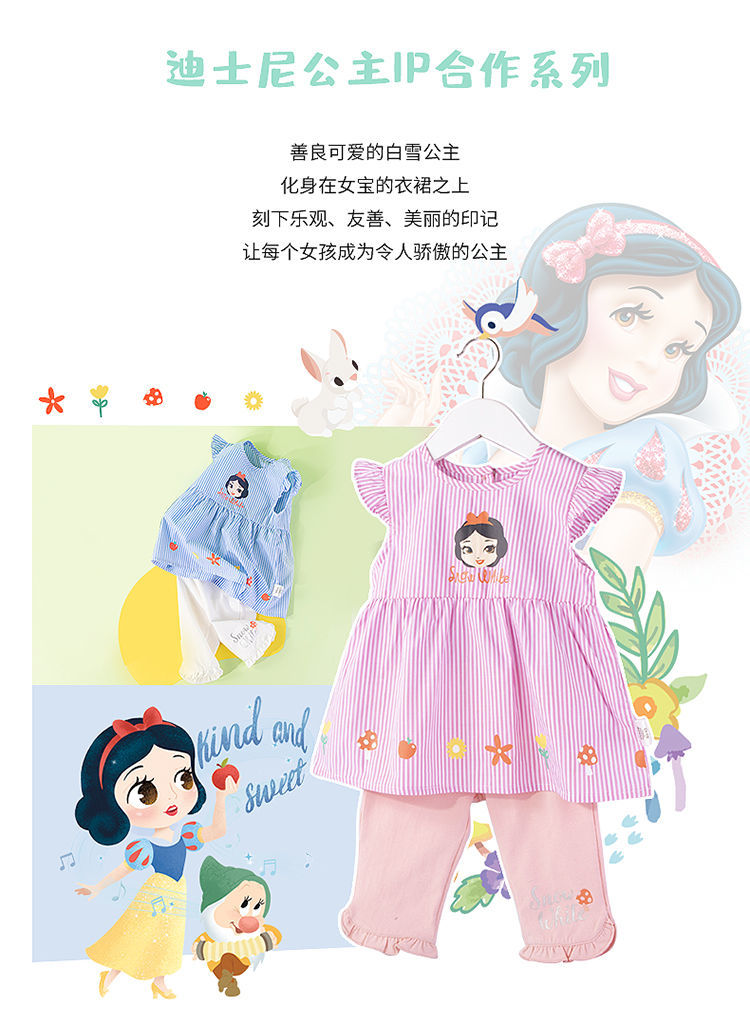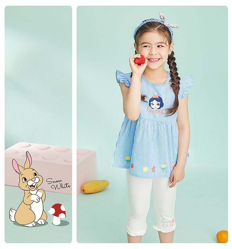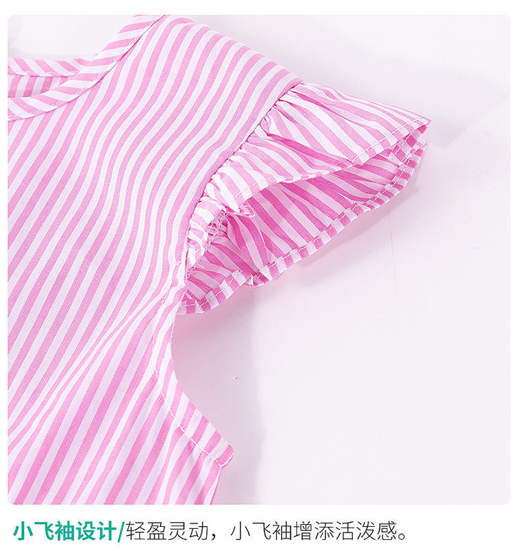 迪士尼童装 儿童套装女童洋气婴儿短袖宝宝新款条纹无袖清凉212T1252