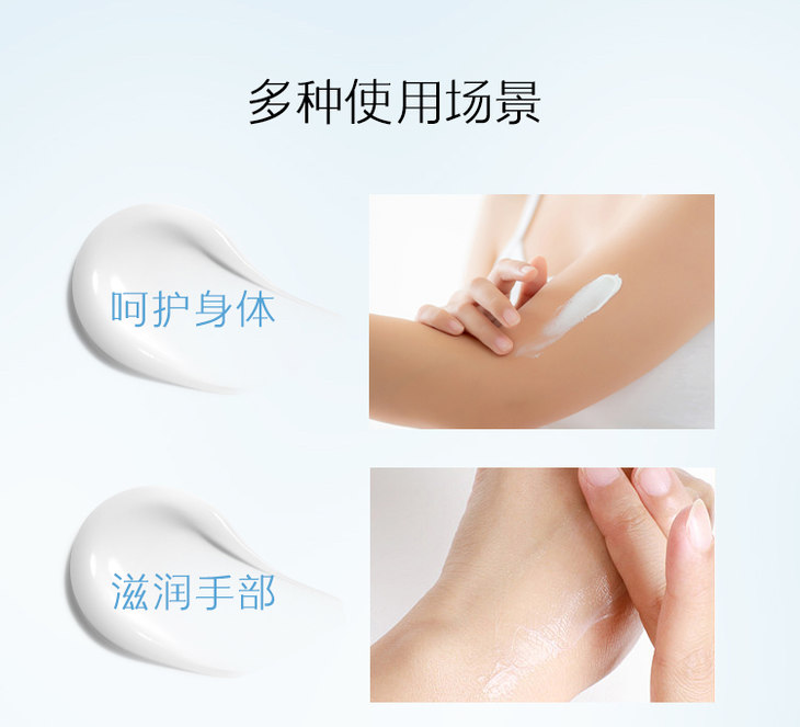 医院背书的东西,包装真的是简单到不行,就是白罐罐蓝字,但配方用料很良心。质地是乳白色冰淇淋质感,非常好推开,用手挖一点就够涂一条胳膊了,涂上后皮肤真的变润润滑滑,而且一点也不粘腻!坚持使用,皮肤会变得柔软有弹性,起皮、粗糙和鸡皮肤的问题,都会有所改善,蛇皮纹和掉屑屑也能解决!如果仍觉得干,再加两滴玫瑰果油吧!