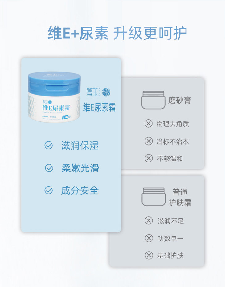 又有平价好用不挑人连敏敏肌也可以用的保湿润肤小登西啦!是协和的雪玉的维生素B5保湿霜、维e尿素霜和足跟特护霜,是医院内部都有在售的!B5保湿霜主打修fu,特别是晒伤和红敏,都很有帮助;维E尿素则是皮肤医院最爱开的身体润肤"神器",对妔毛周角化和干裂脱皮;足跟特护则是重点攻克手脚的皲裂、脱皮和出血。