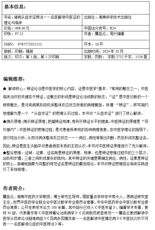 中医从基础走向临床丛书:诸病从症求证辨治——名医解读中医证的理论与临床 瞿岳云,周兴