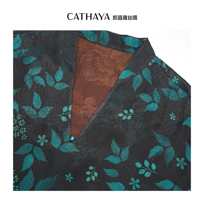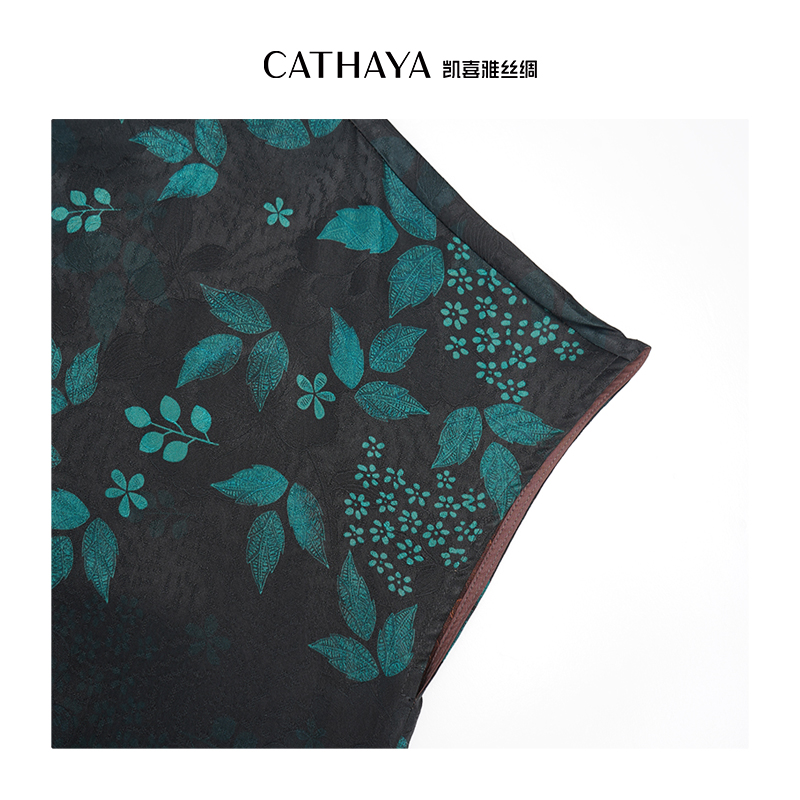 凯喜雅 23姆米缎面提花花萝香云纱短袖V领连衣裙 100%桑蚕丝