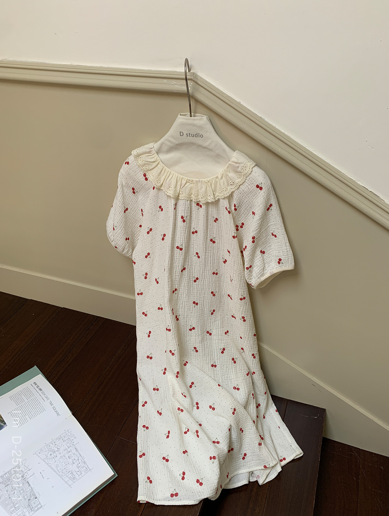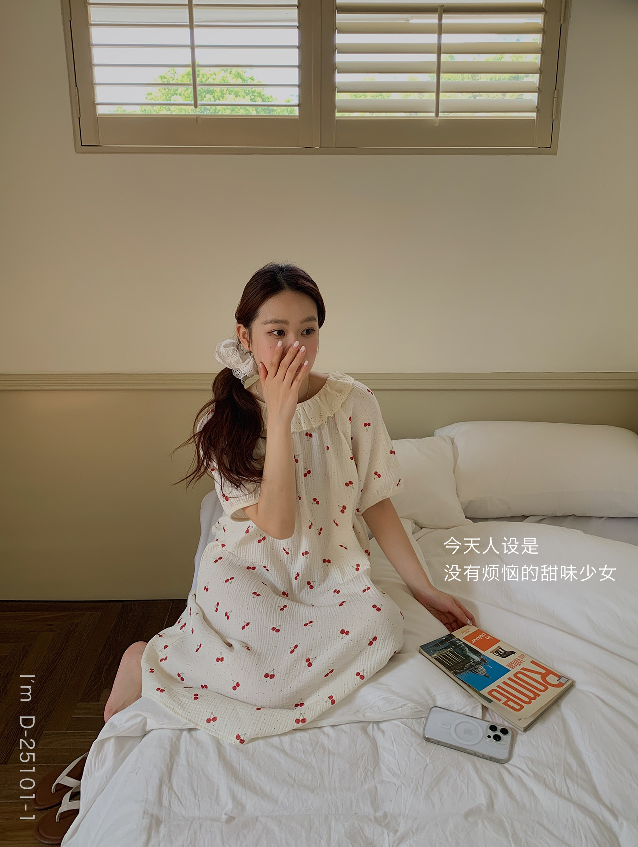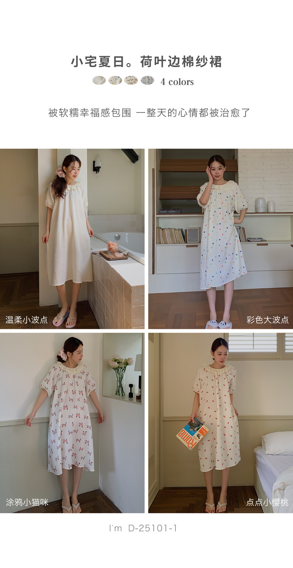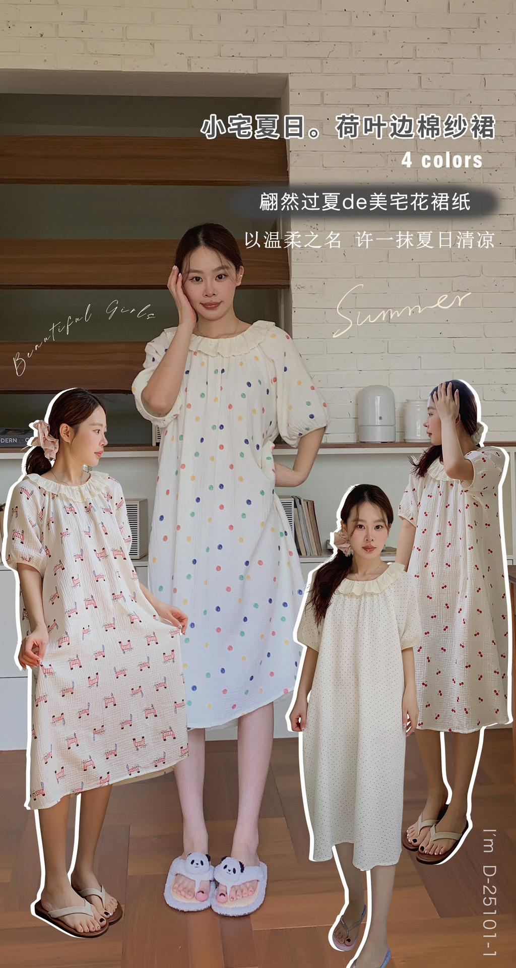 【柔软棉纱】2025新款荷叶边双层棉纱短袖套装/睡裙女家居服 透气休闲 越洗越软