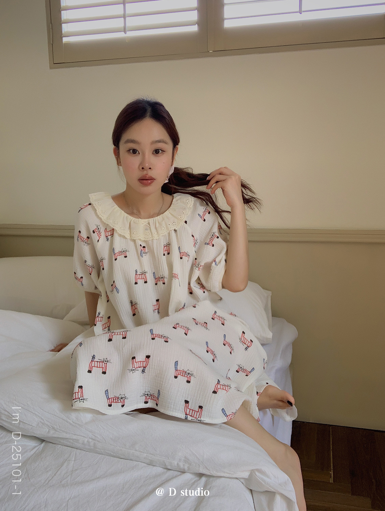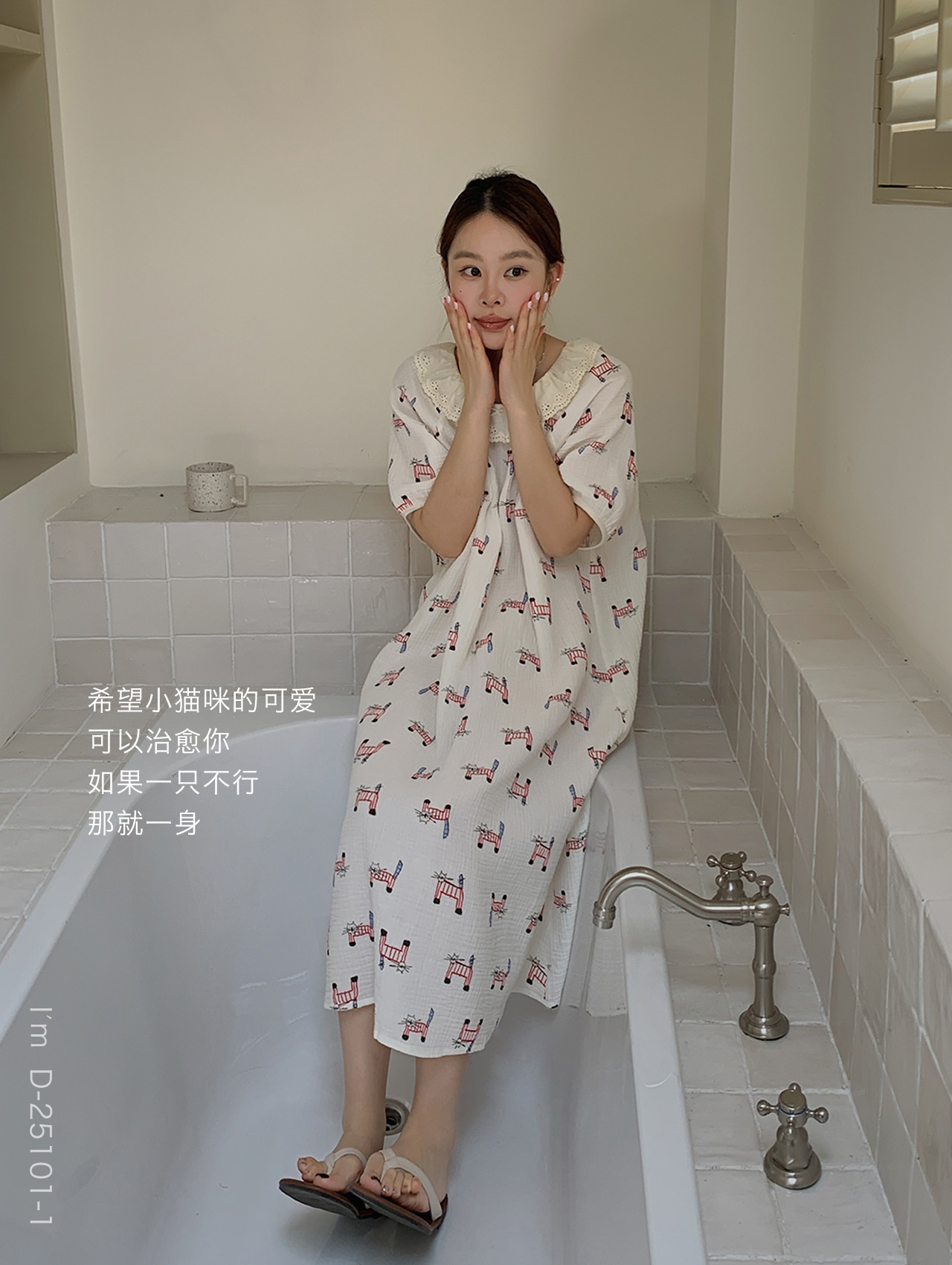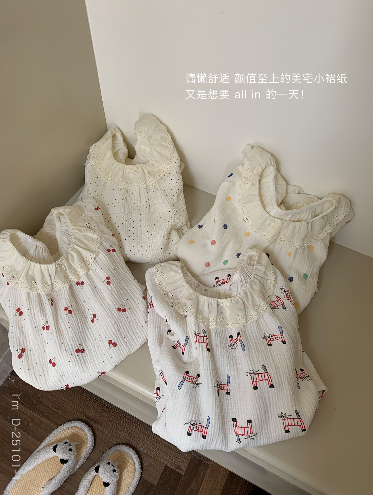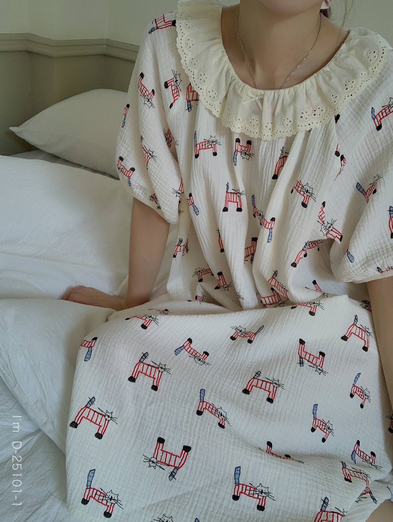 【柔软棉纱】2025新款荷叶边双层棉纱短袖套装/睡裙女家居服 透气休闲 越洗越软