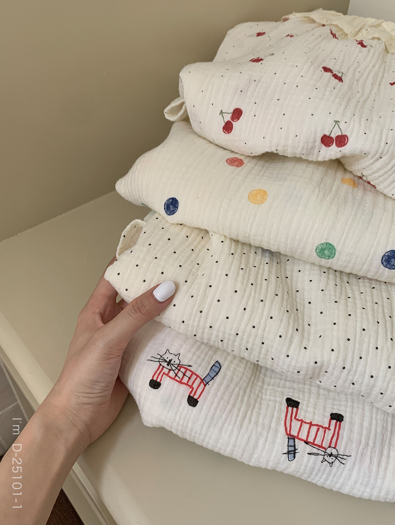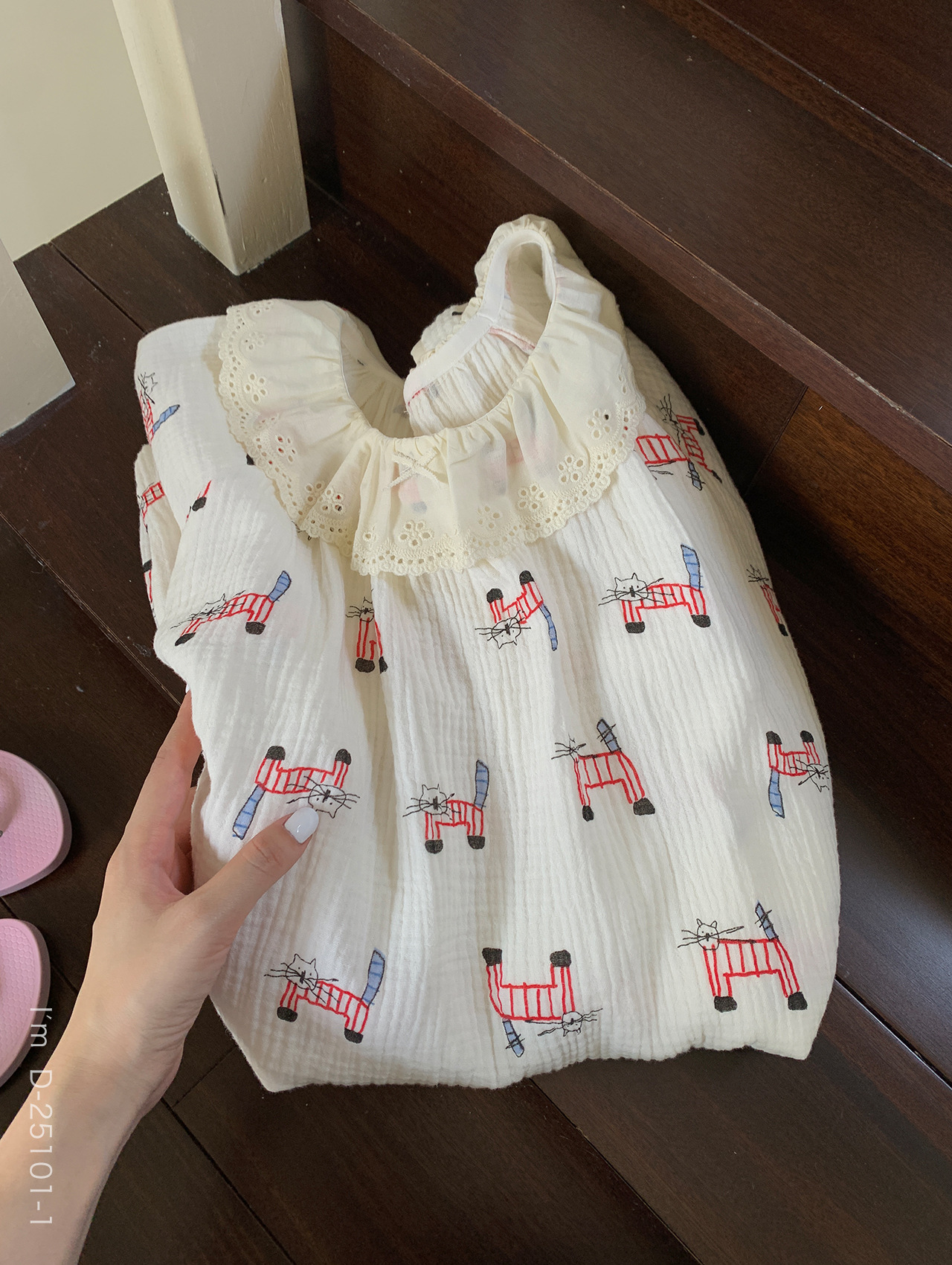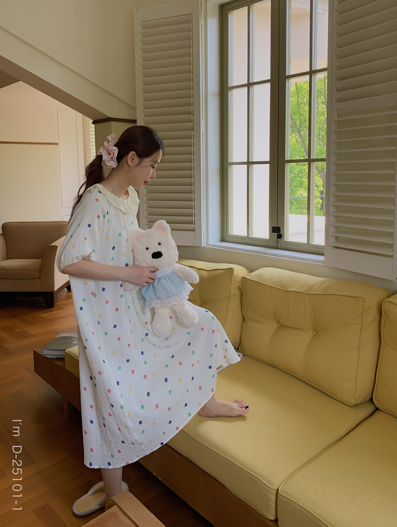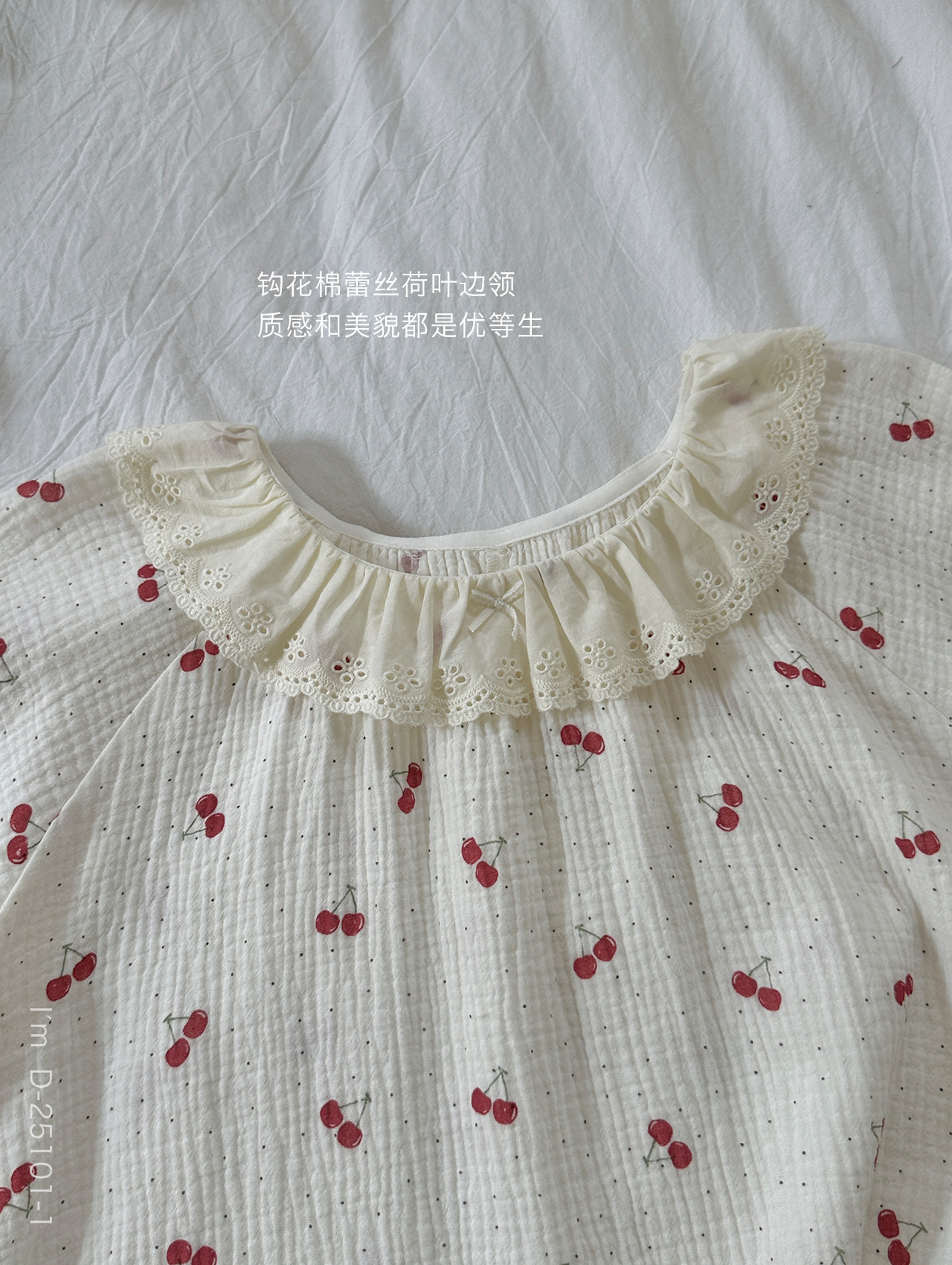 【柔软棉纱】2025新款荷叶边双层棉纱短袖套装/睡裙女家居服 透气休闲 越洗越软
