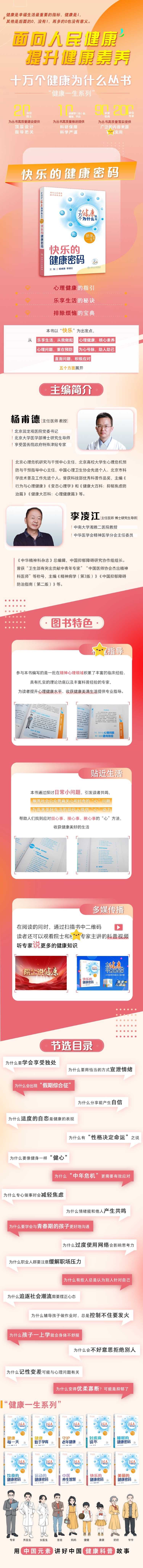 人民健康是民族昌盛和国家强盛的重要标志,心理健康是人民幸福生活的基石。随着经济社会的快速发展,人民健康水平不断提高,健康意识不断增强,人们对心理健康的需要也愈加迫切。本书以;如何开启生活中lsquo;快乐rsquo;的健康密码立意,通过探讨日常小问题,引发读者共鸣,解答社会公众普遍关心和好奇的;心问题,为追求美好生活的现代人提供 ;心动力,帮助人们找到应对烦心事、操心事、揪心事的;心方法,收获健康美好的生活。