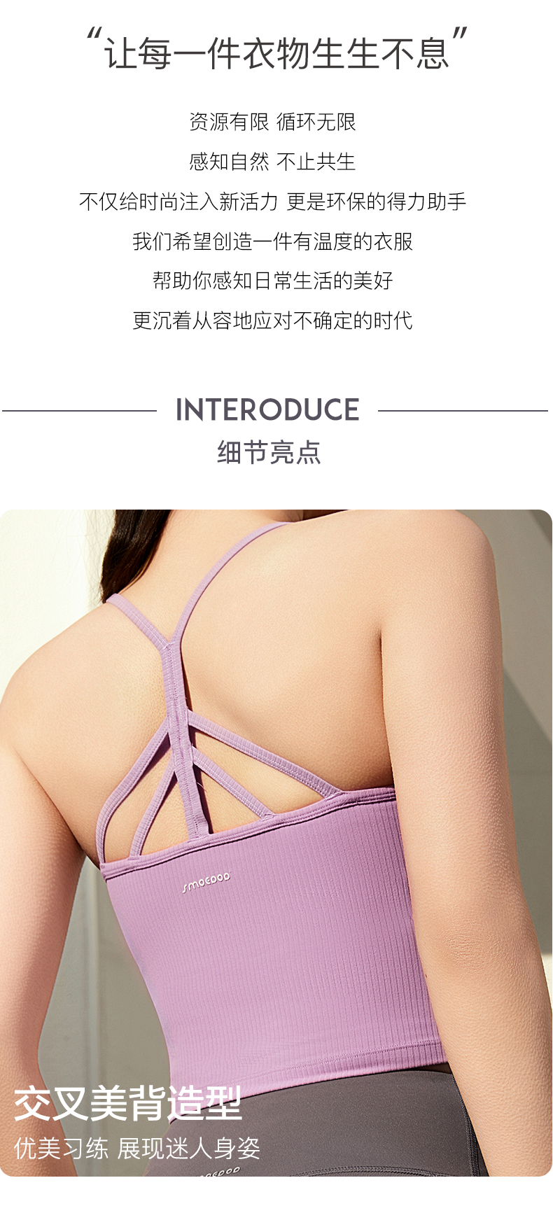 SMOEDOD/水沐伊朵交叉美背固定一体杯时尚螺纹肌理感优雅气质50190
