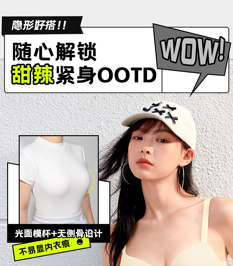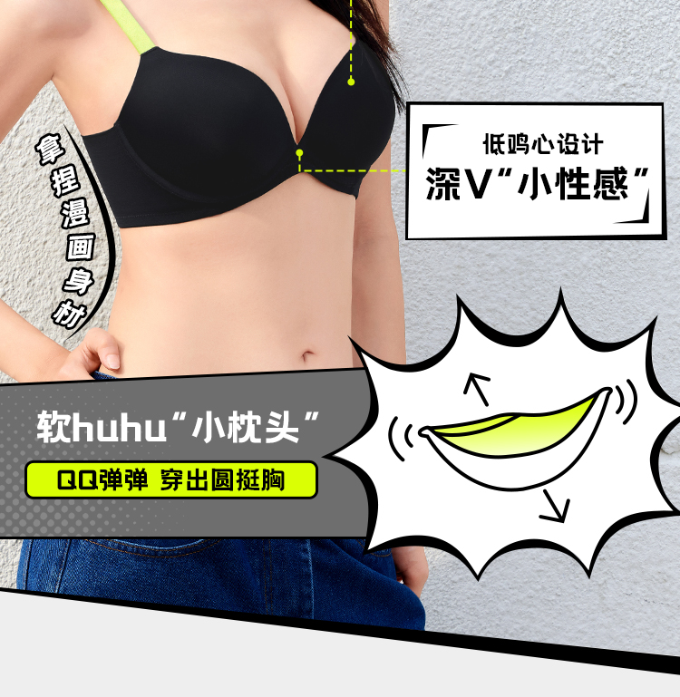 [漫画杯]显大3/4杯深V聚拢隐形无痕自然圆圆胸饱满辣妹穿搭