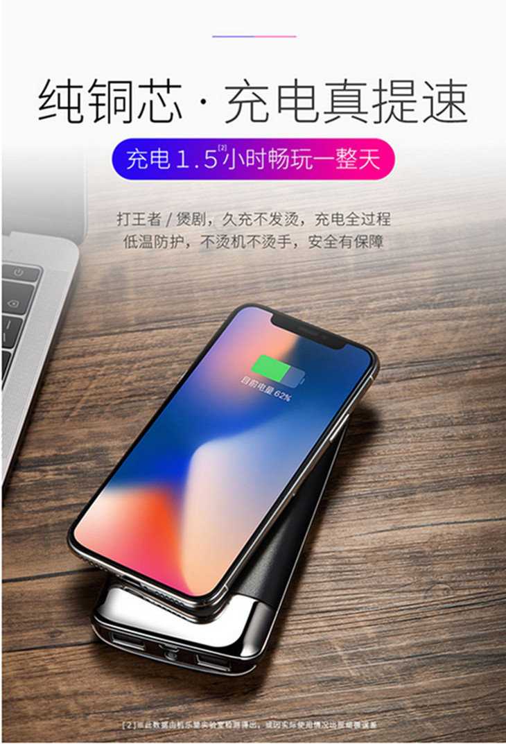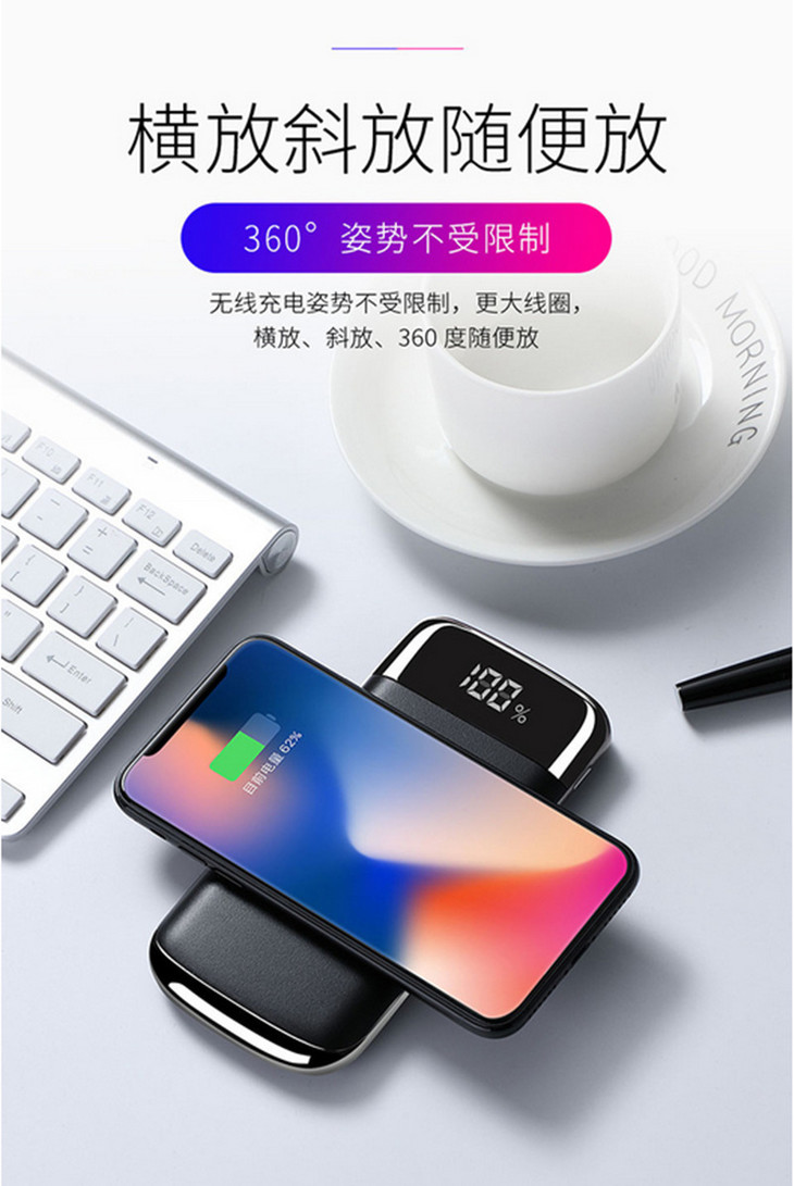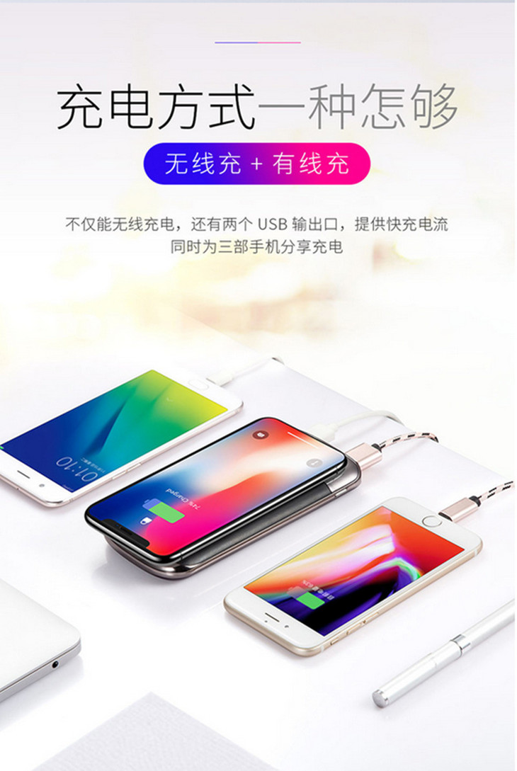 【充电宝】*无线充电宝适用iPhonex移动电源8P超薄便携QI快充S8通用8X