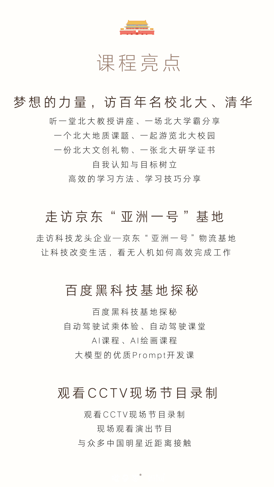 孩子志《京城少年》 暑期北京深度研学夏令营 08/06-8/11 六天 10岁+ 高铁往返 北大、清华、天安门、京东、CCTV、百度,官方全程陪护..