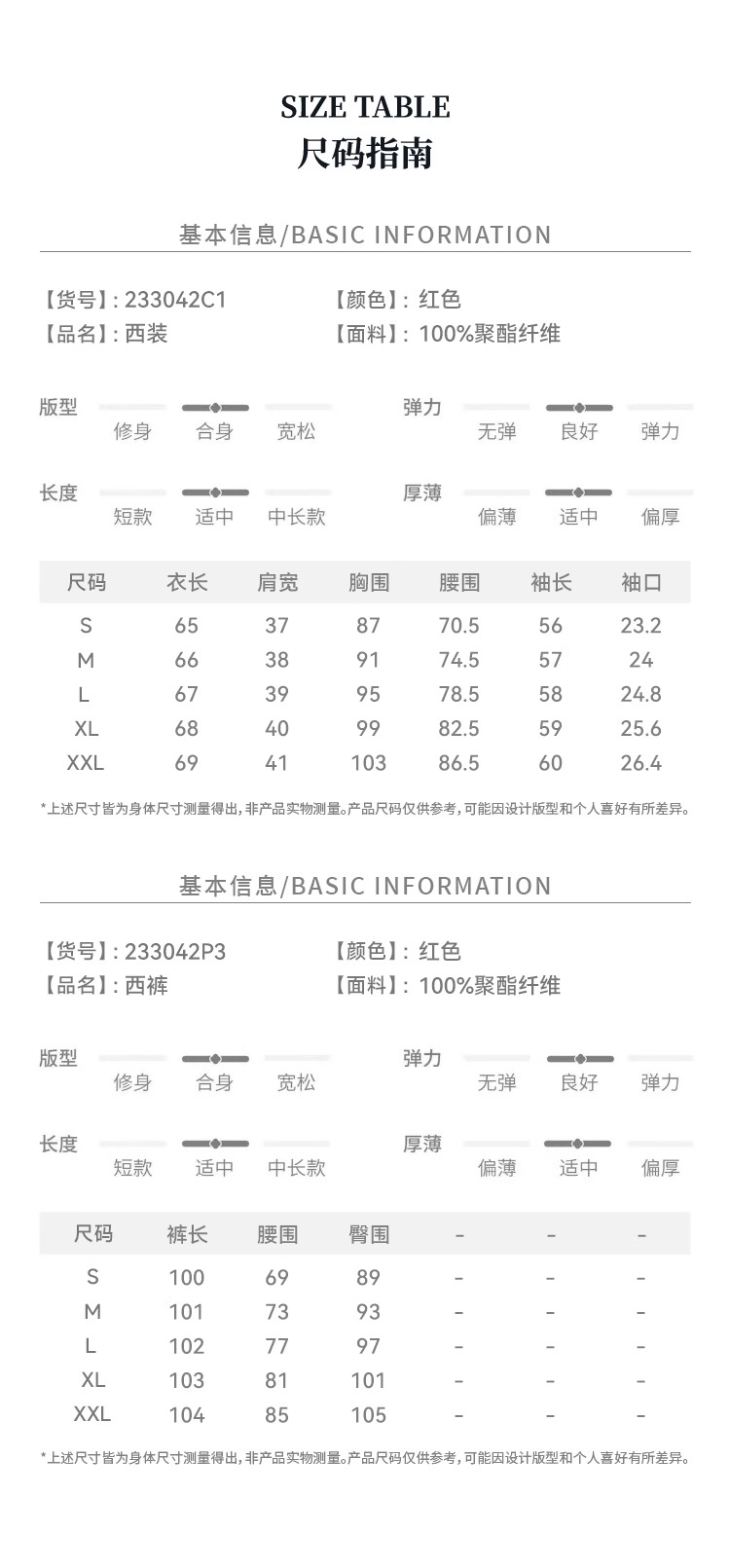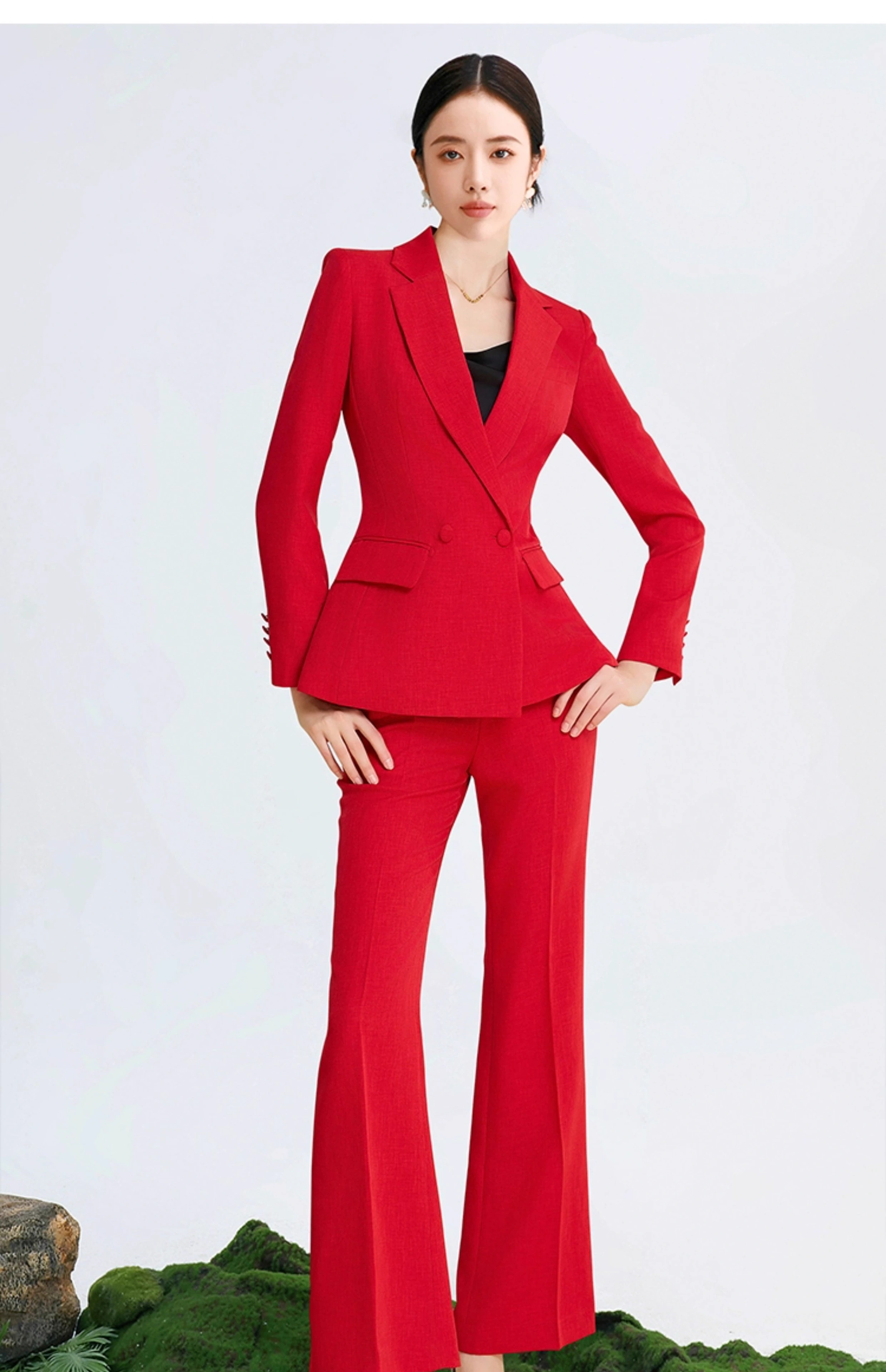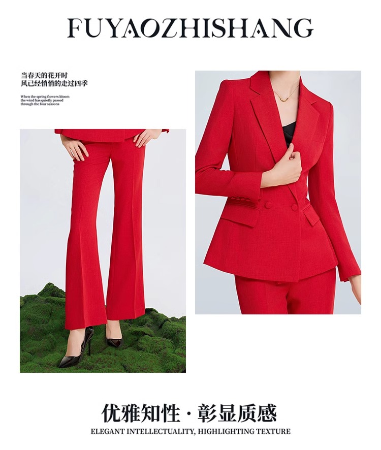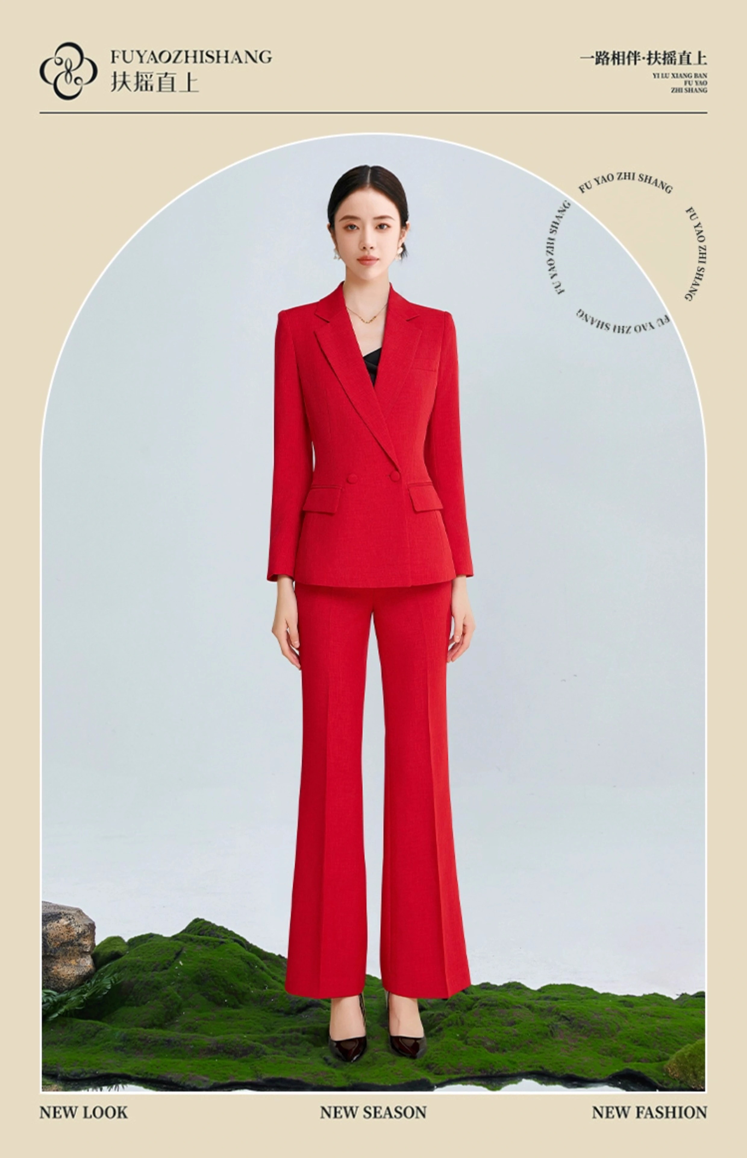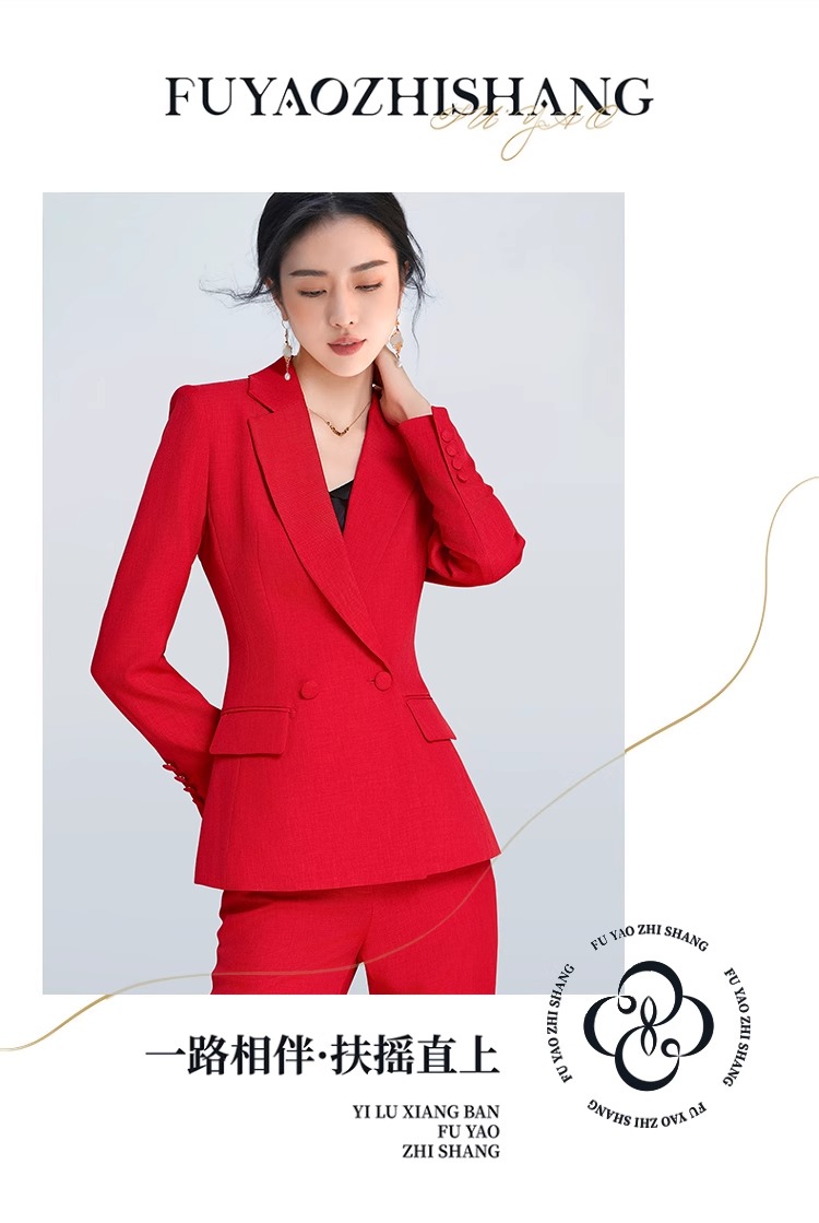扶摇 红色西装套装女高端职业装年会主持人西服外套工作服冬