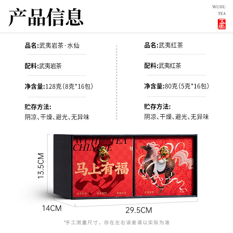 【春季茶礼】茶叶 武夷红茶 武夷水仙 乌龙茶 茶叶礼盒 马上有福 茶饮 五虎 208g