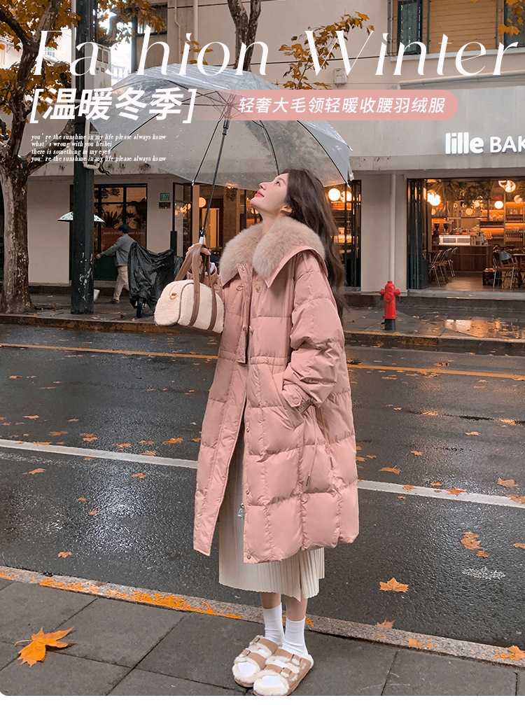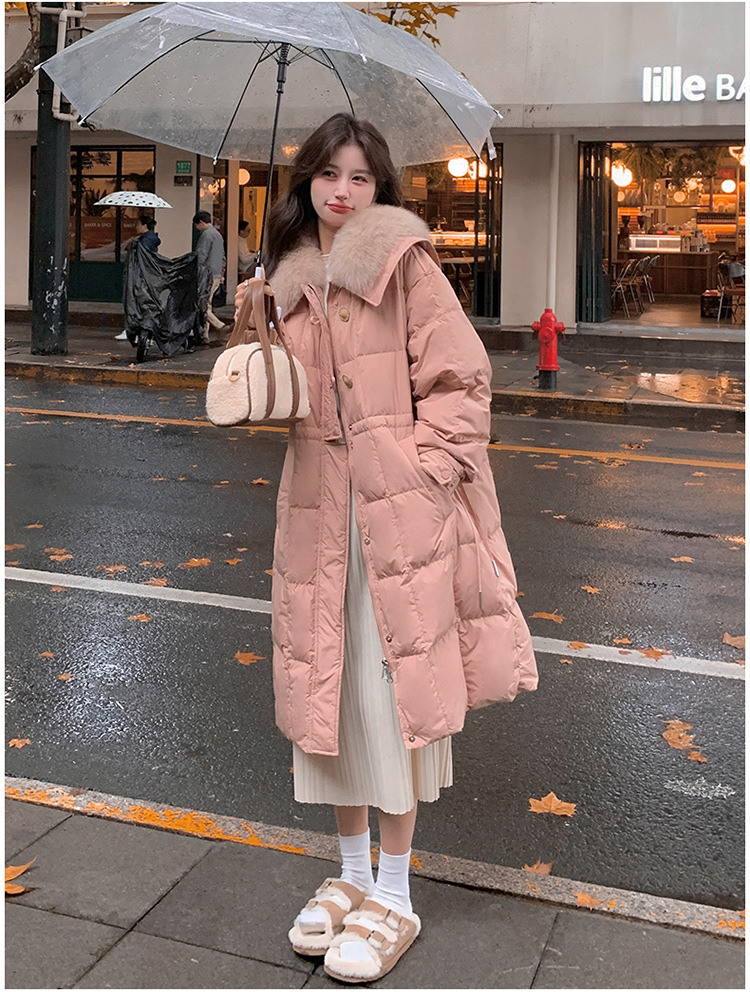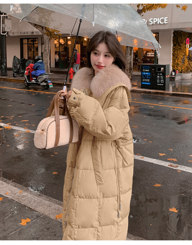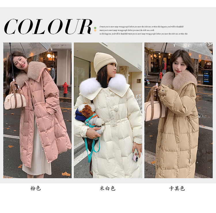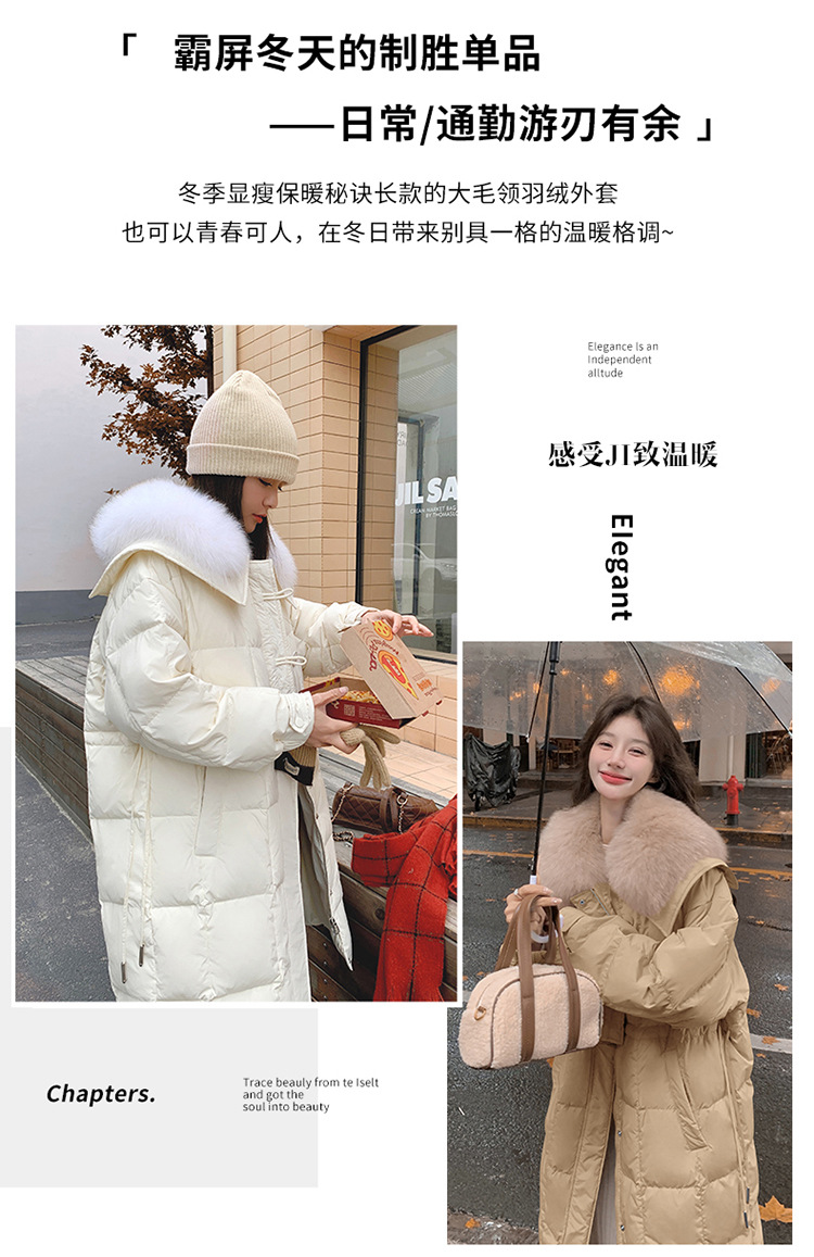 【蓬松柔软 锁住温暖】 高级感宽松毛领长款羽绒服 超大毛领 50%白鸭绒 抵御严寒 长款过膝加厚