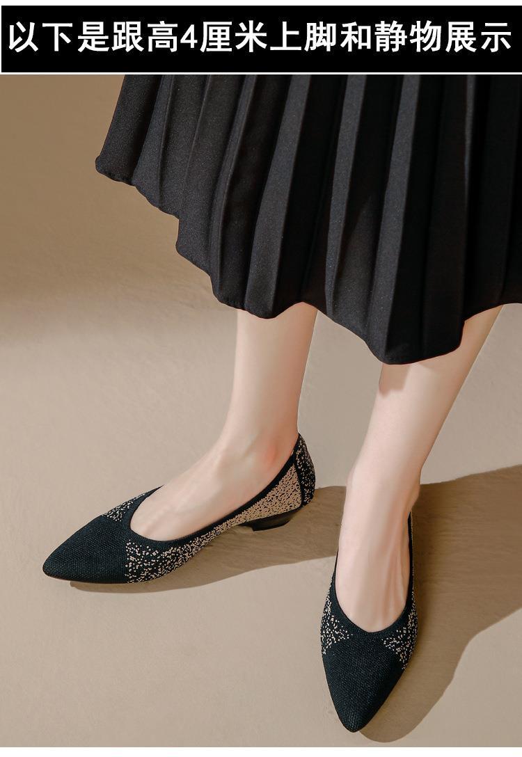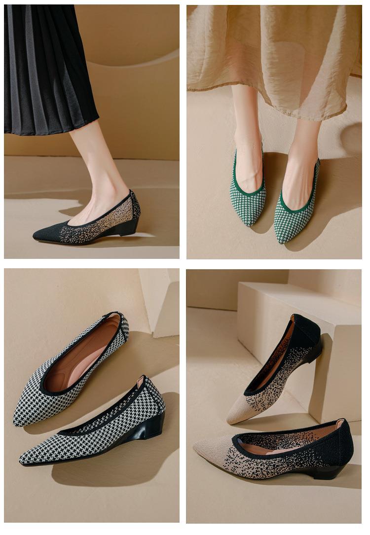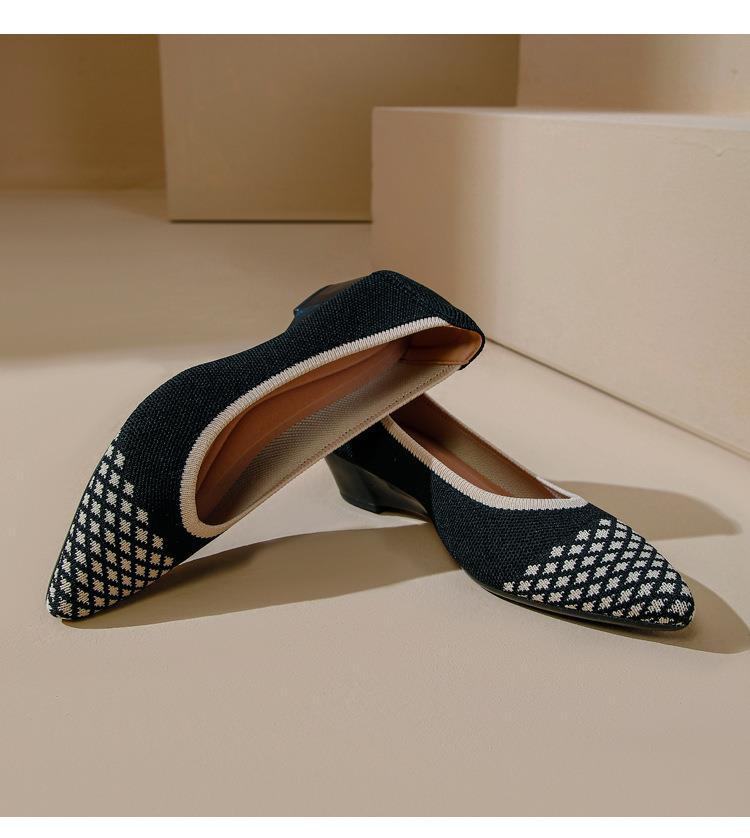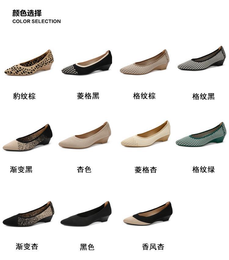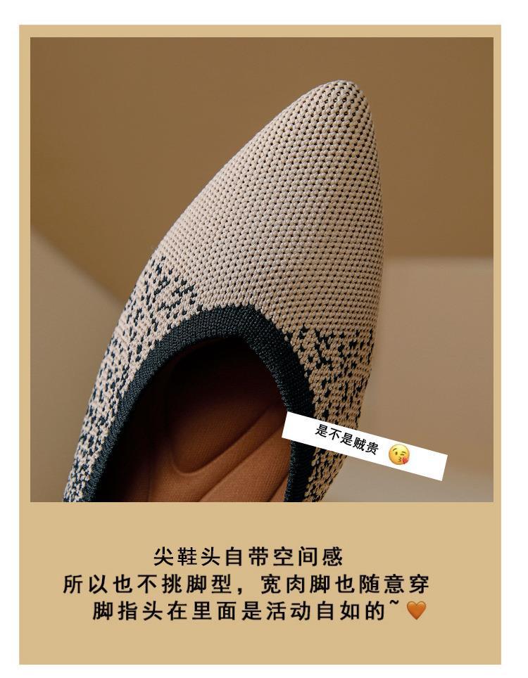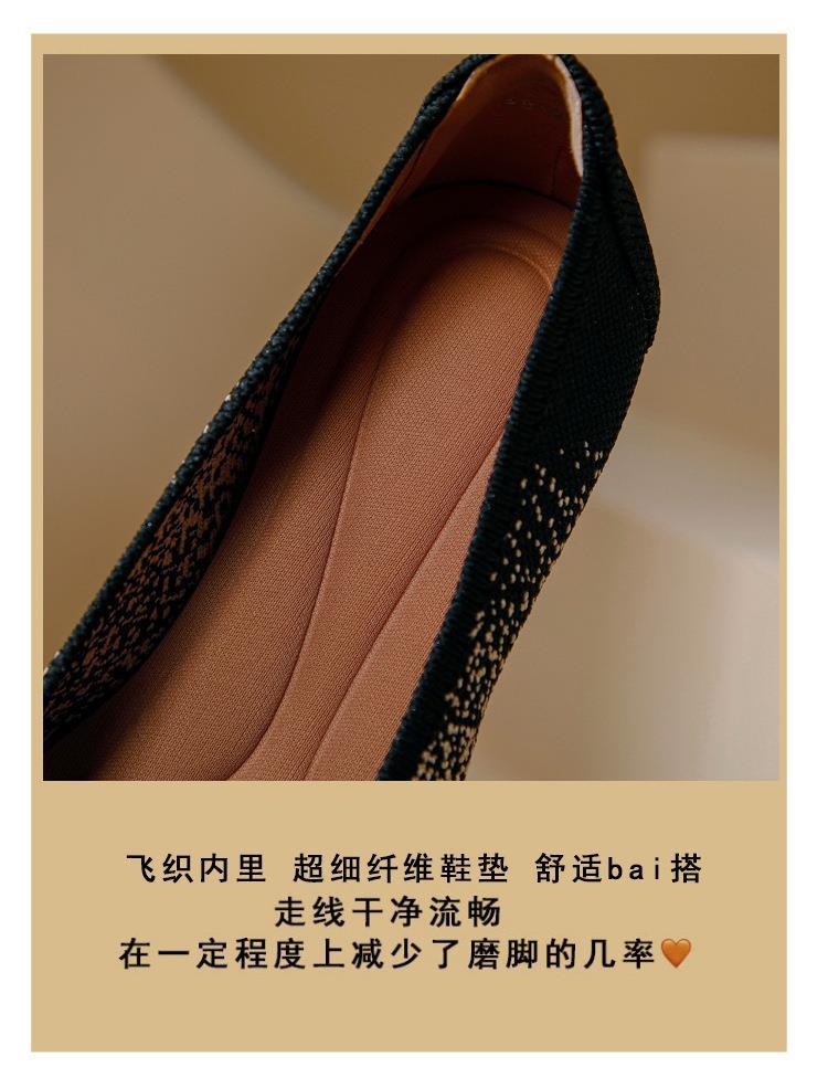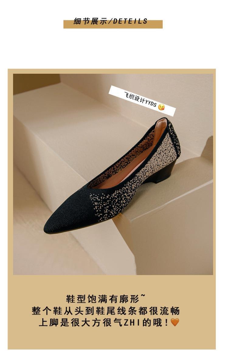 软底王妃鞋2025新款针织编织小香风尖头坡跟飞织单鞋透气女鞋平底!