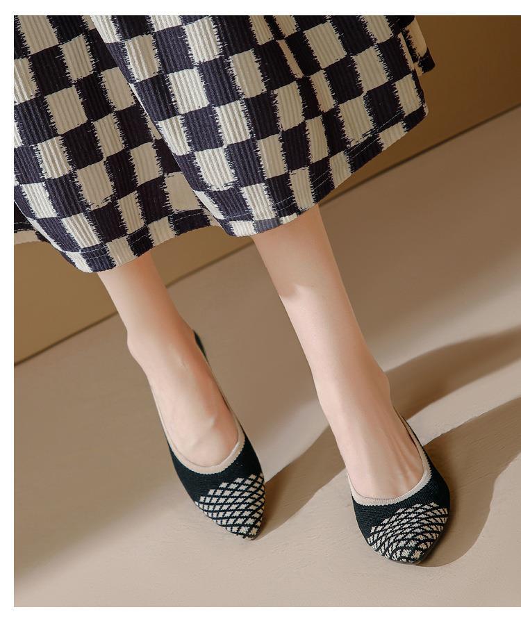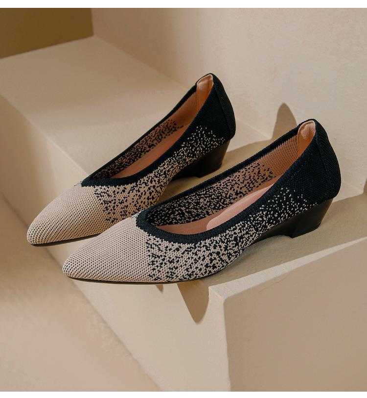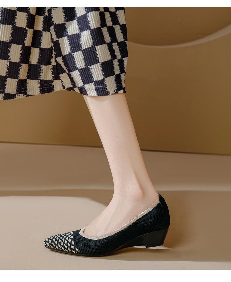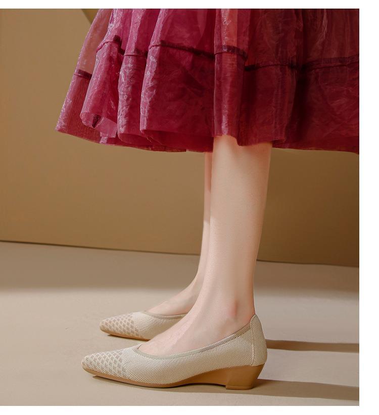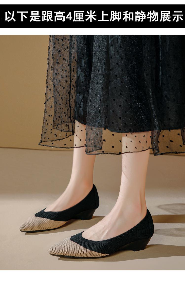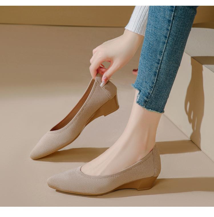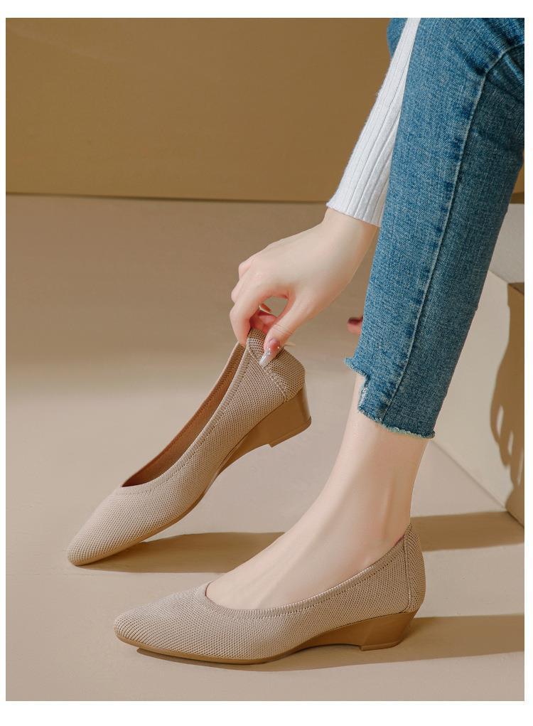 软底王妃鞋2025新款针织编织小香风尖头坡跟飞织单鞋透气女鞋平底!