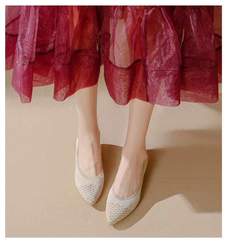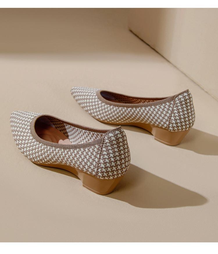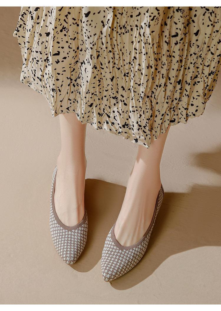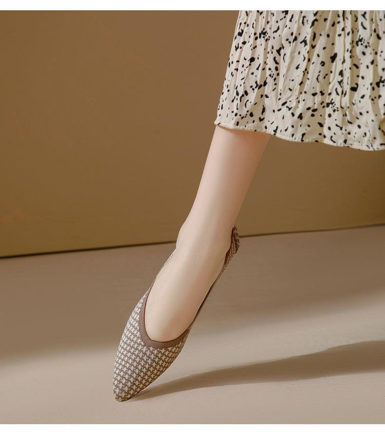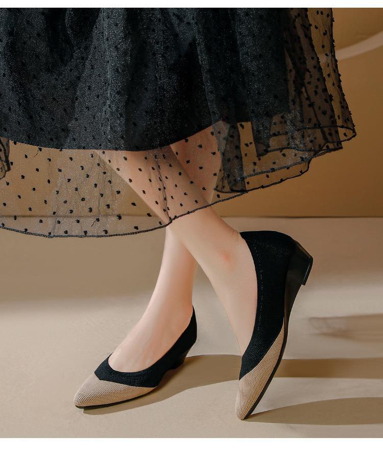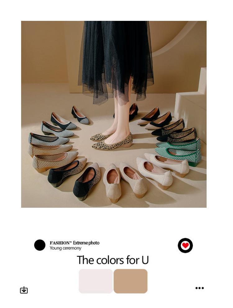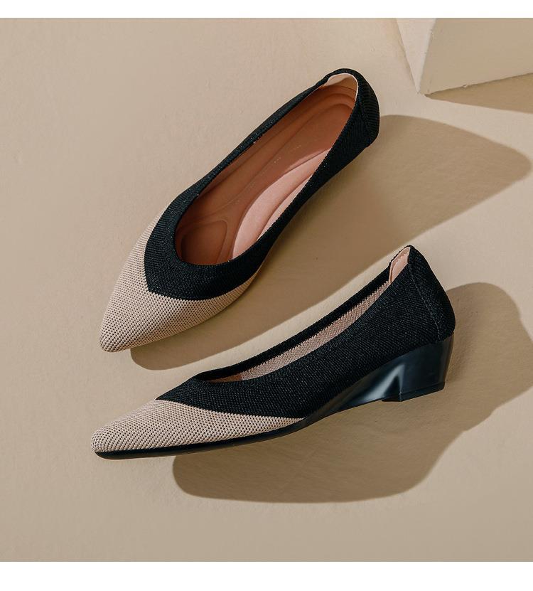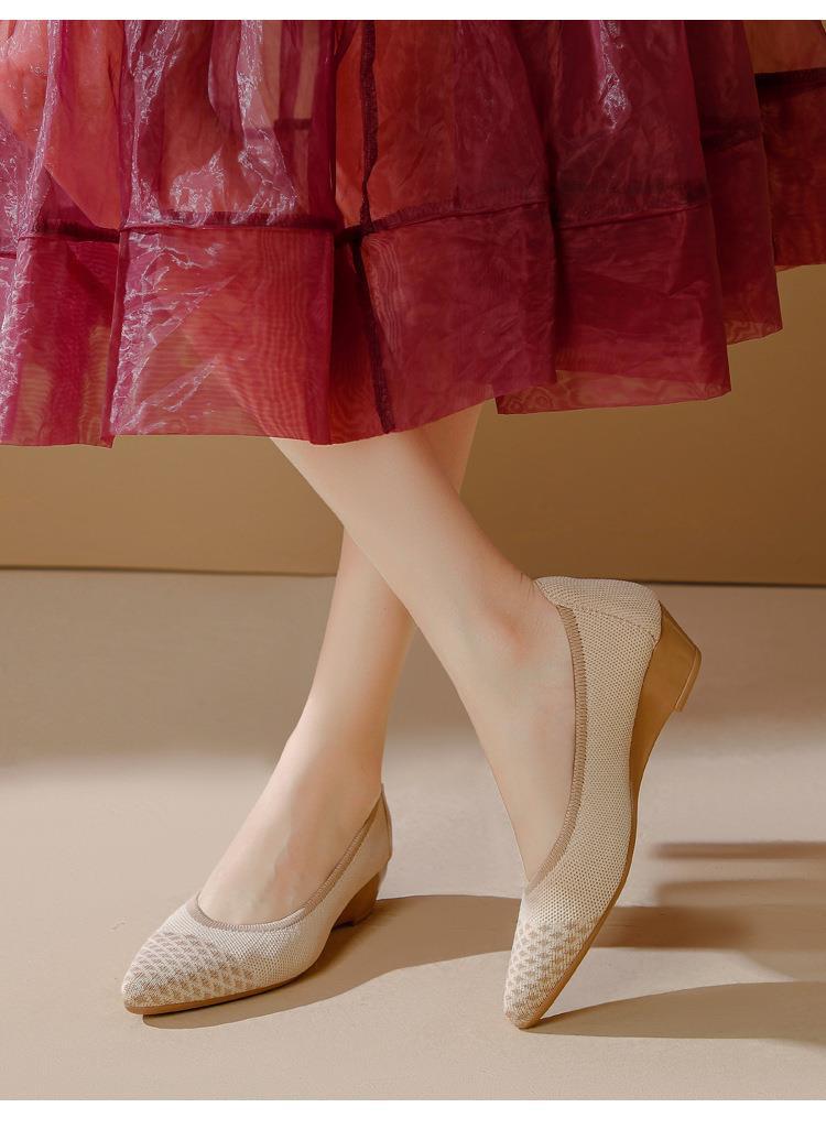 软底王妃鞋2025新款针织编织小香风尖头坡跟飞织单鞋透气女鞋平底!