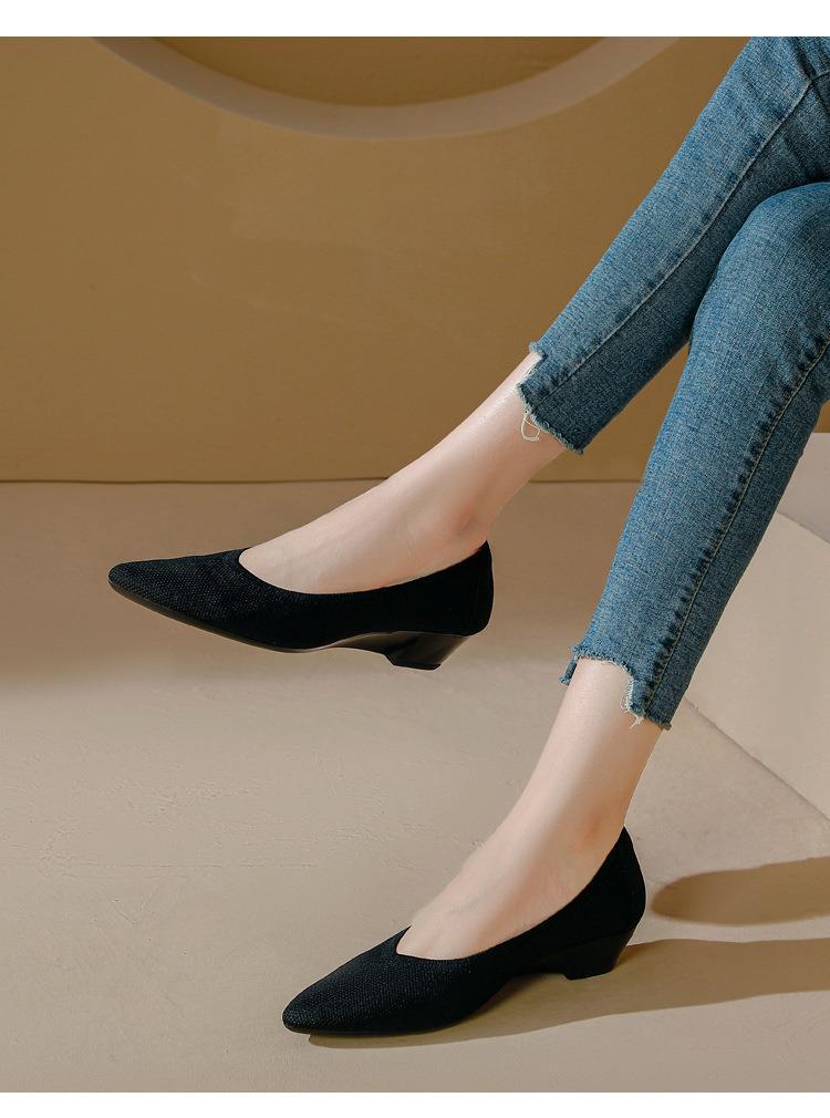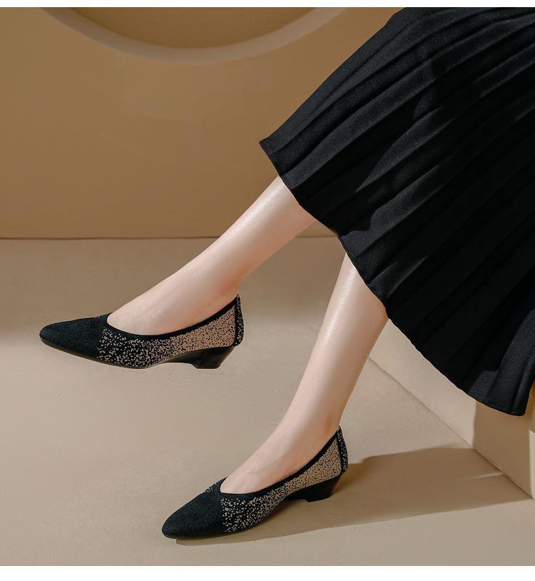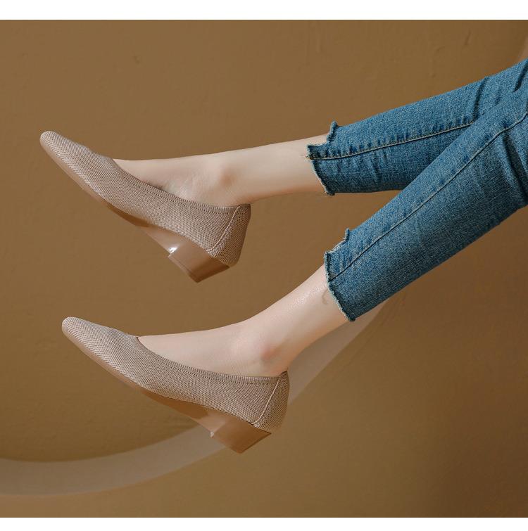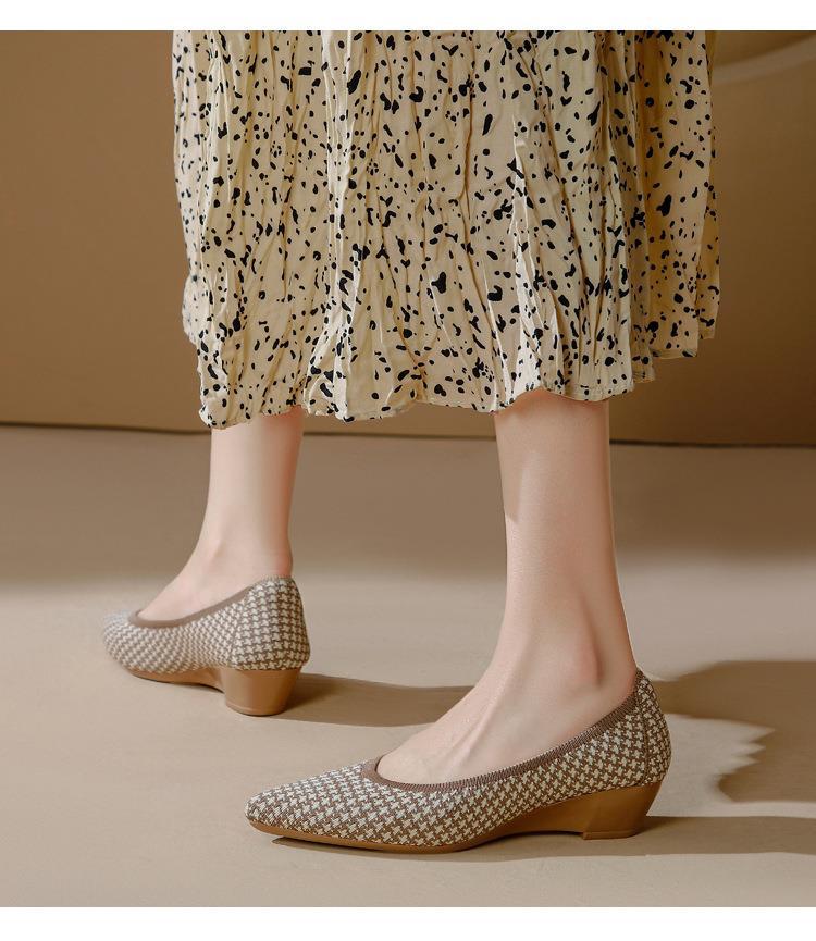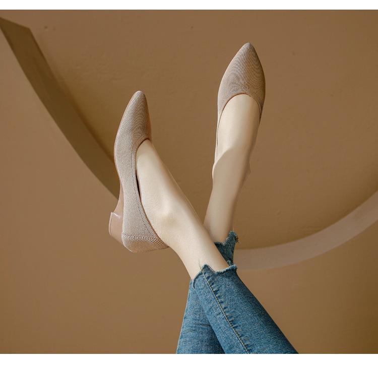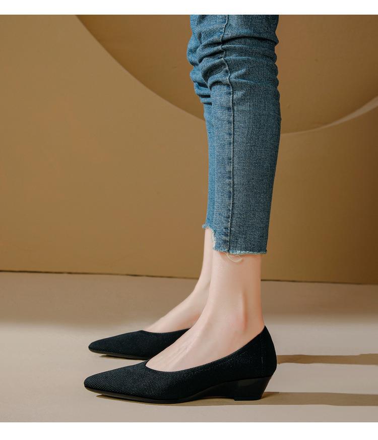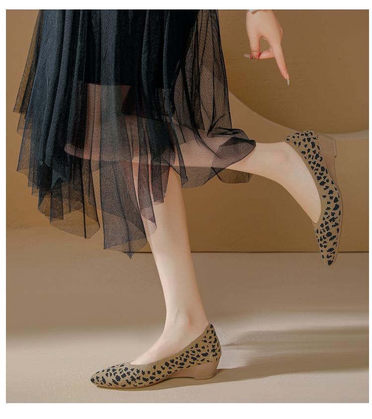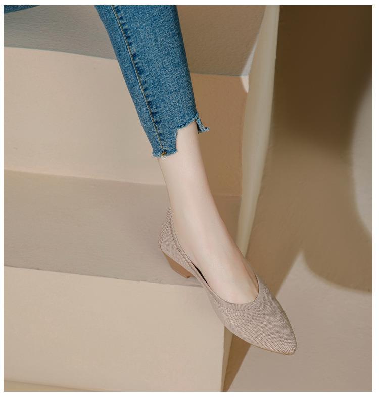 软底王妃鞋2025新款针织编织小香风尖头坡跟飞织单鞋透气女鞋平底!