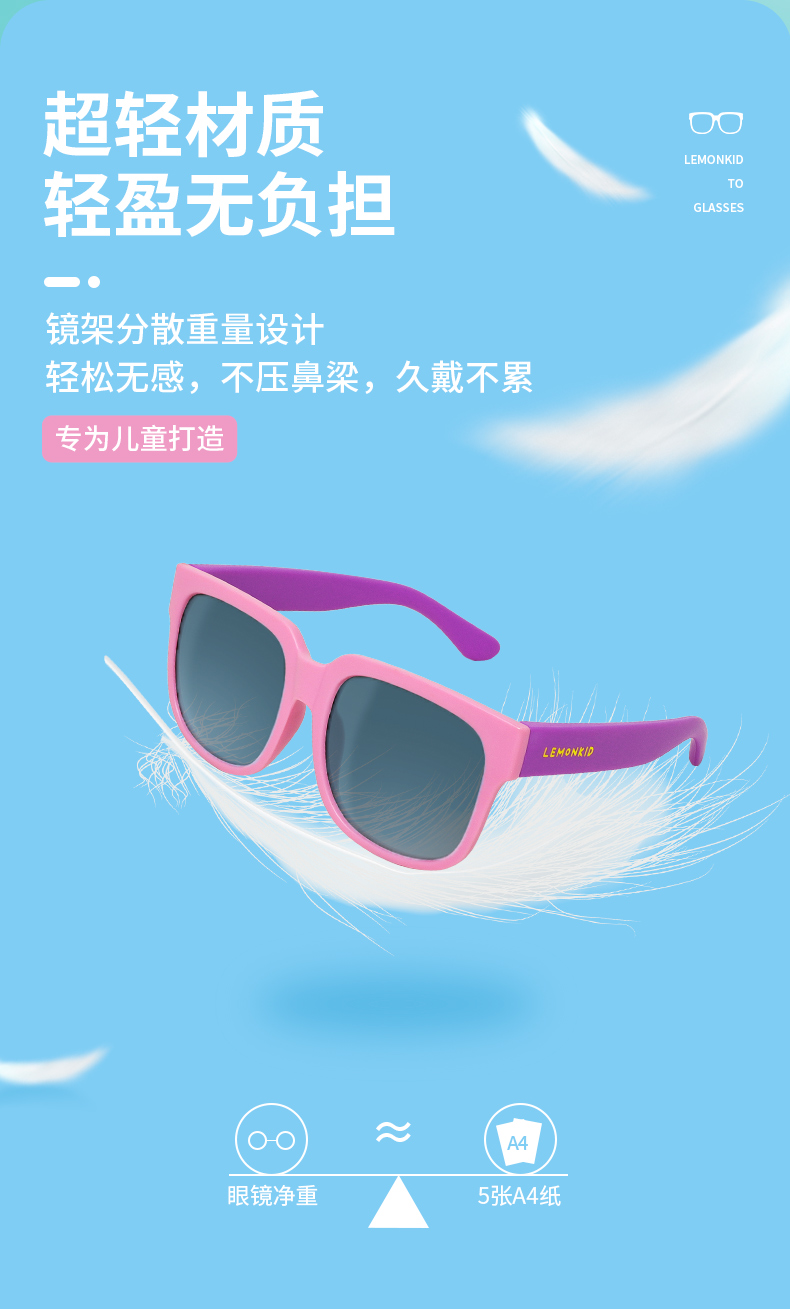 Lemonkid柠檬宝宝儿童防紫外线太阳镜 高弹性材质镜框 扭转不易变形 轻盈无负担 可折叠聚