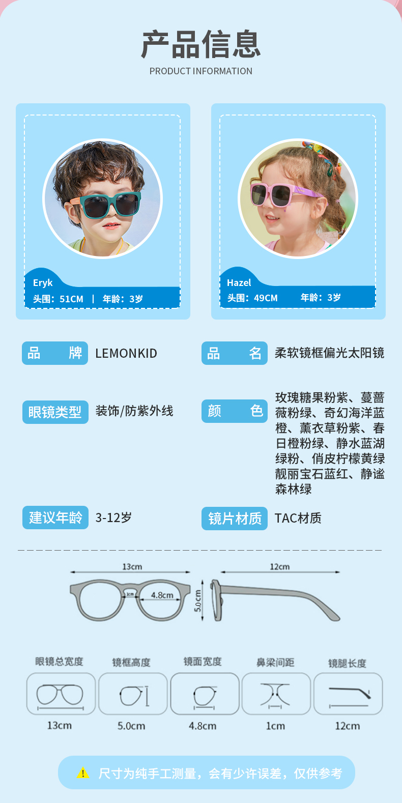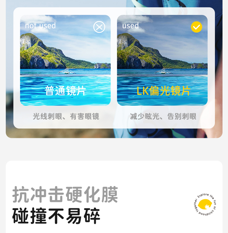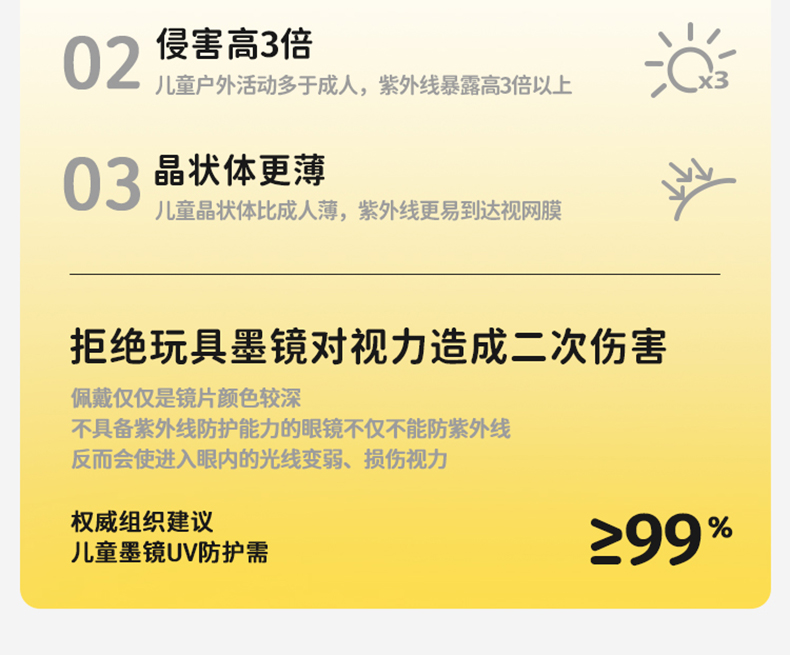 1.阻挡100%的紫外线,包括UVA和UVB;3-12岁的宝宝可以佩戴~