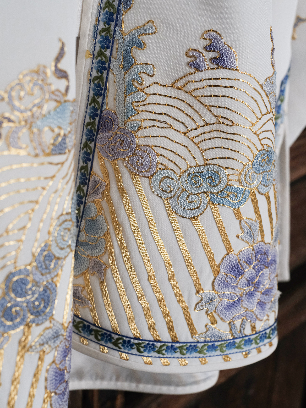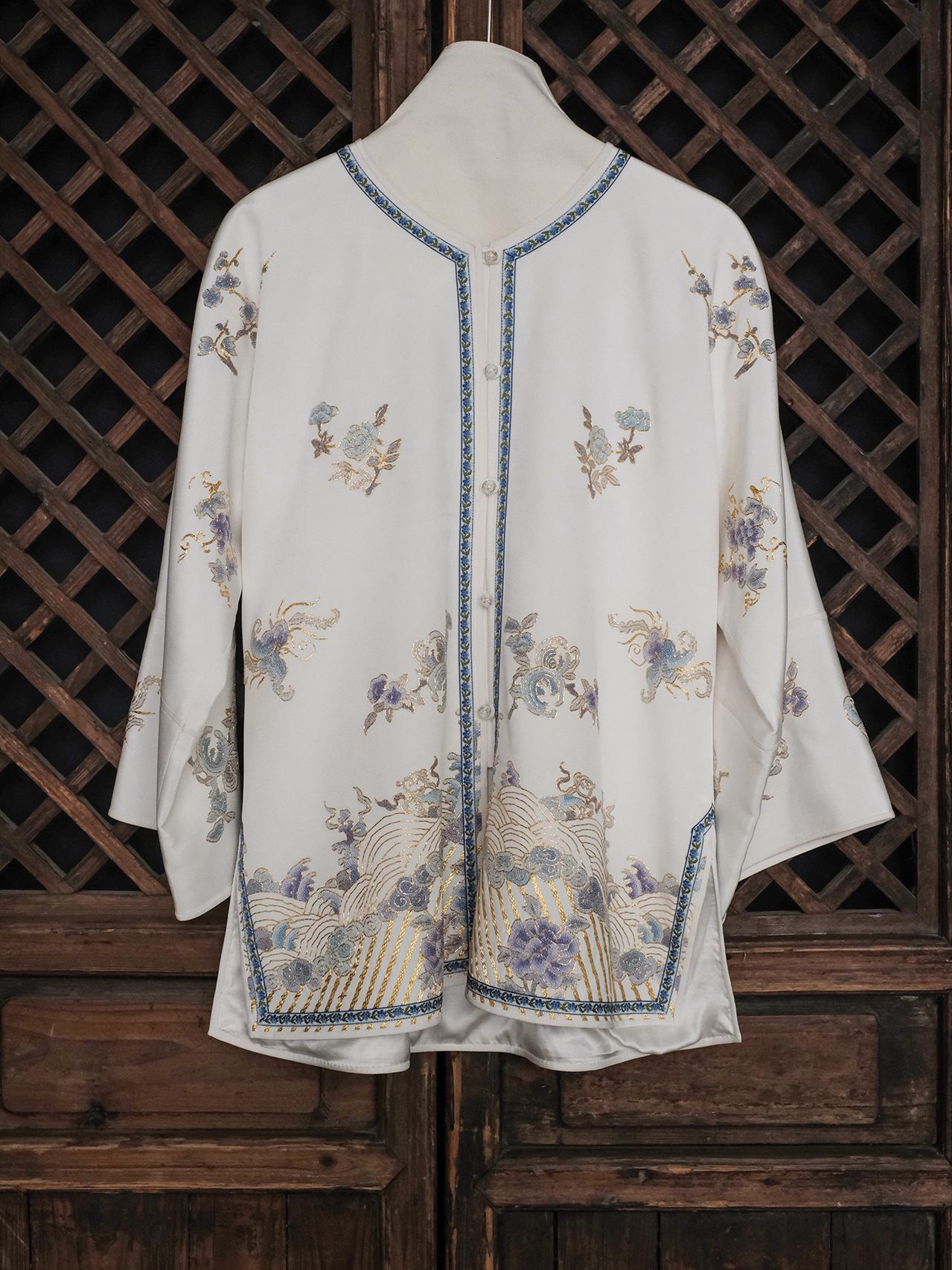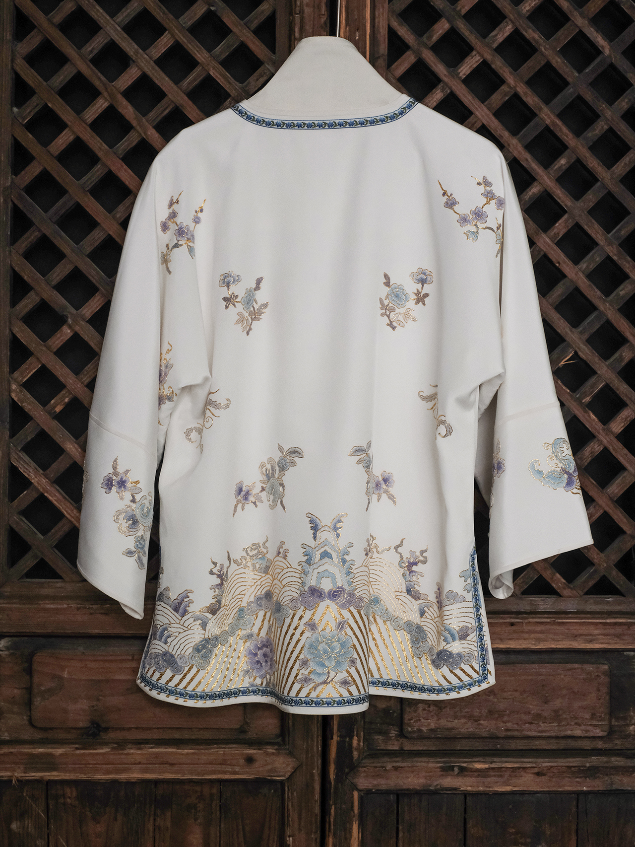 盛唐牡丹大师系列| 重工盘金江崖海水纹外套-白色