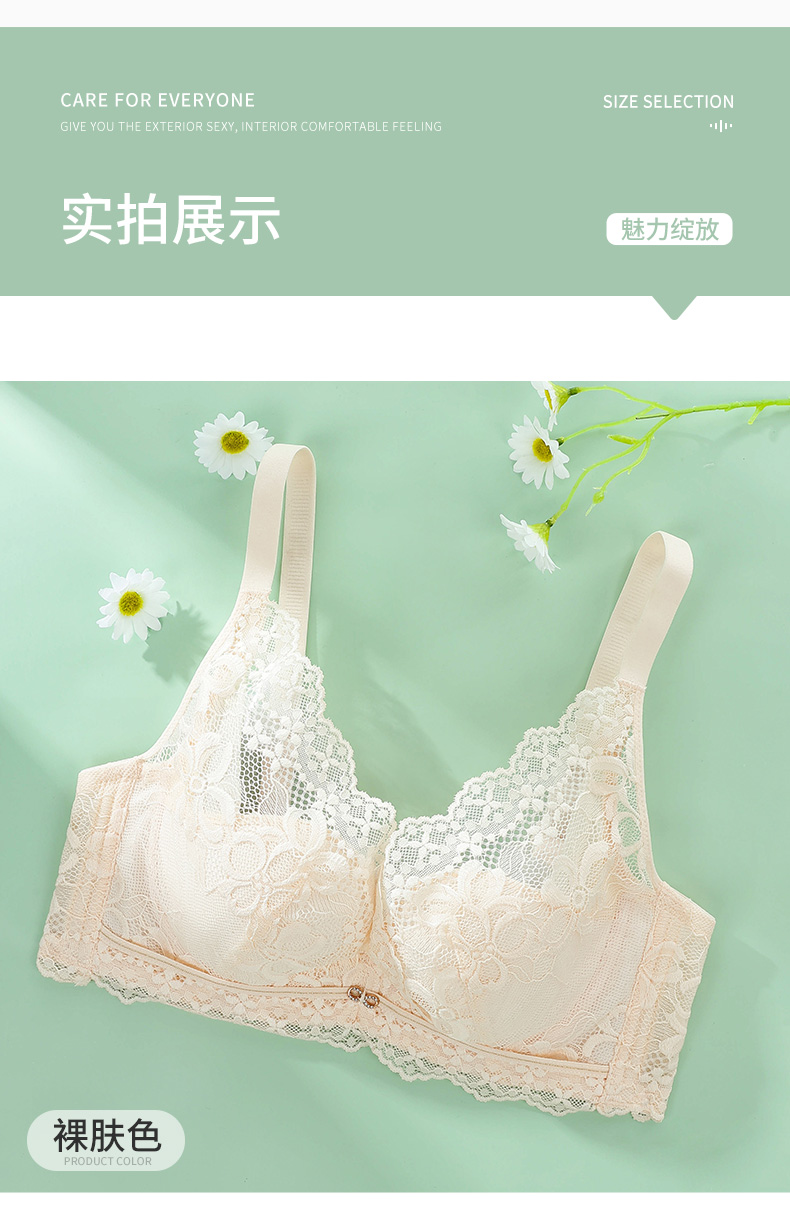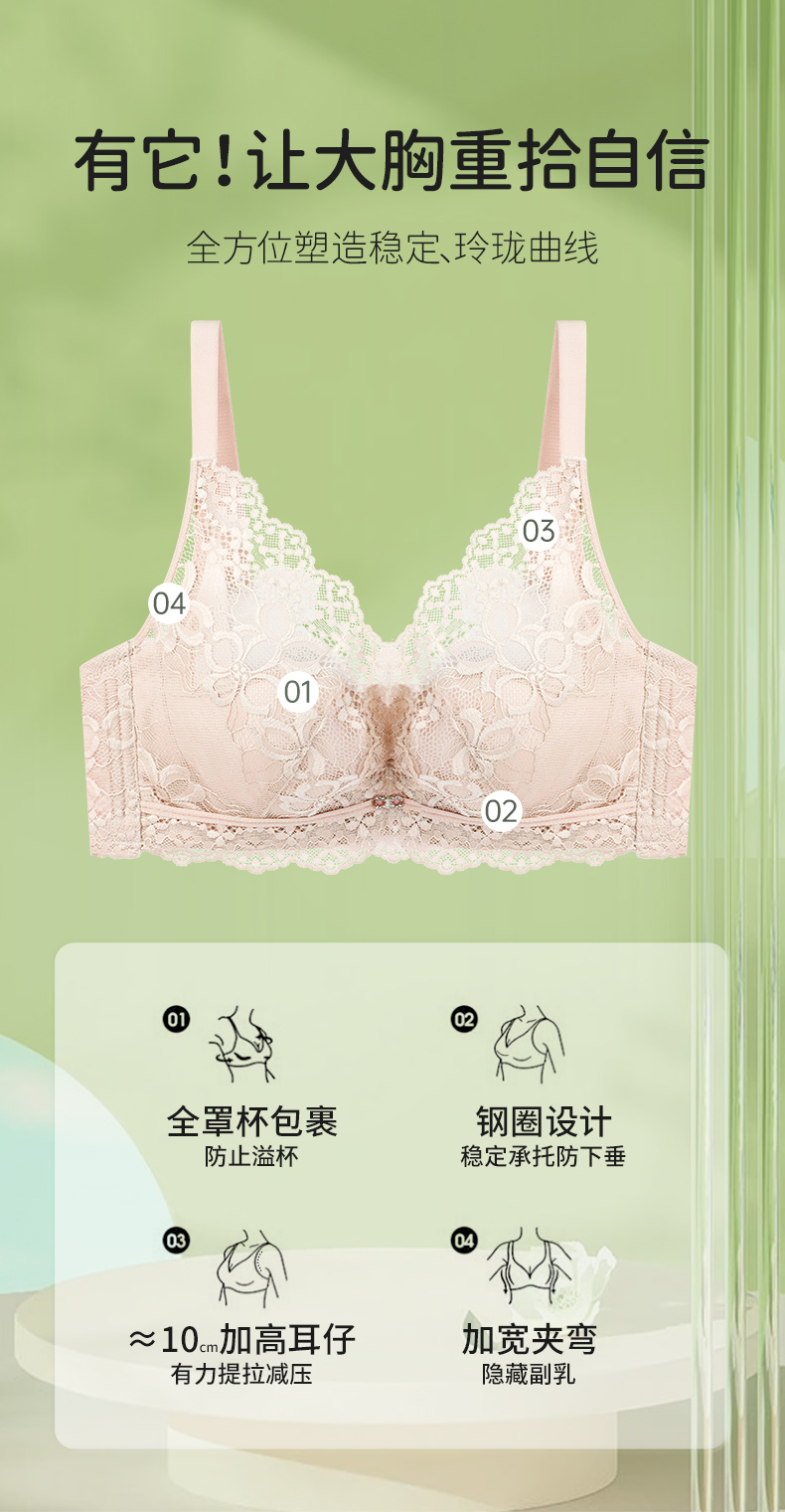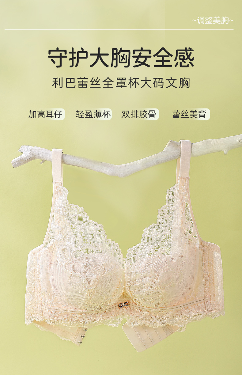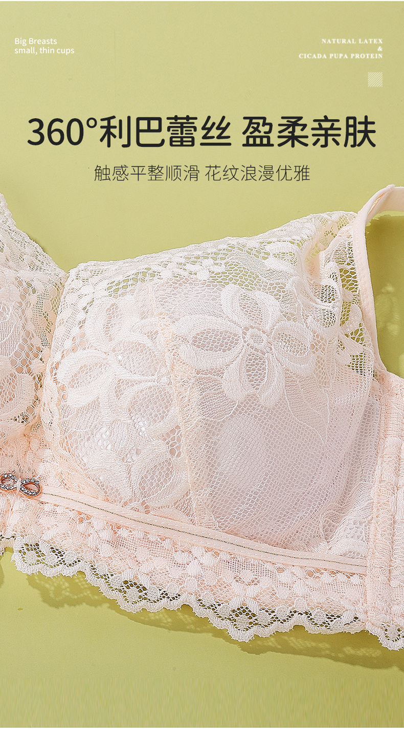 雅黛丽大胸显小内衣夏季薄款文胸全罩杯大码蕾丝美背显胸小女胸罩