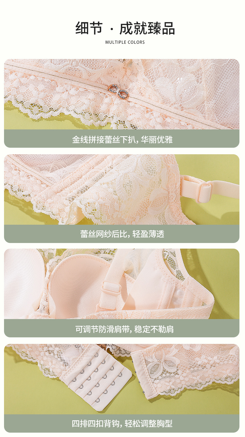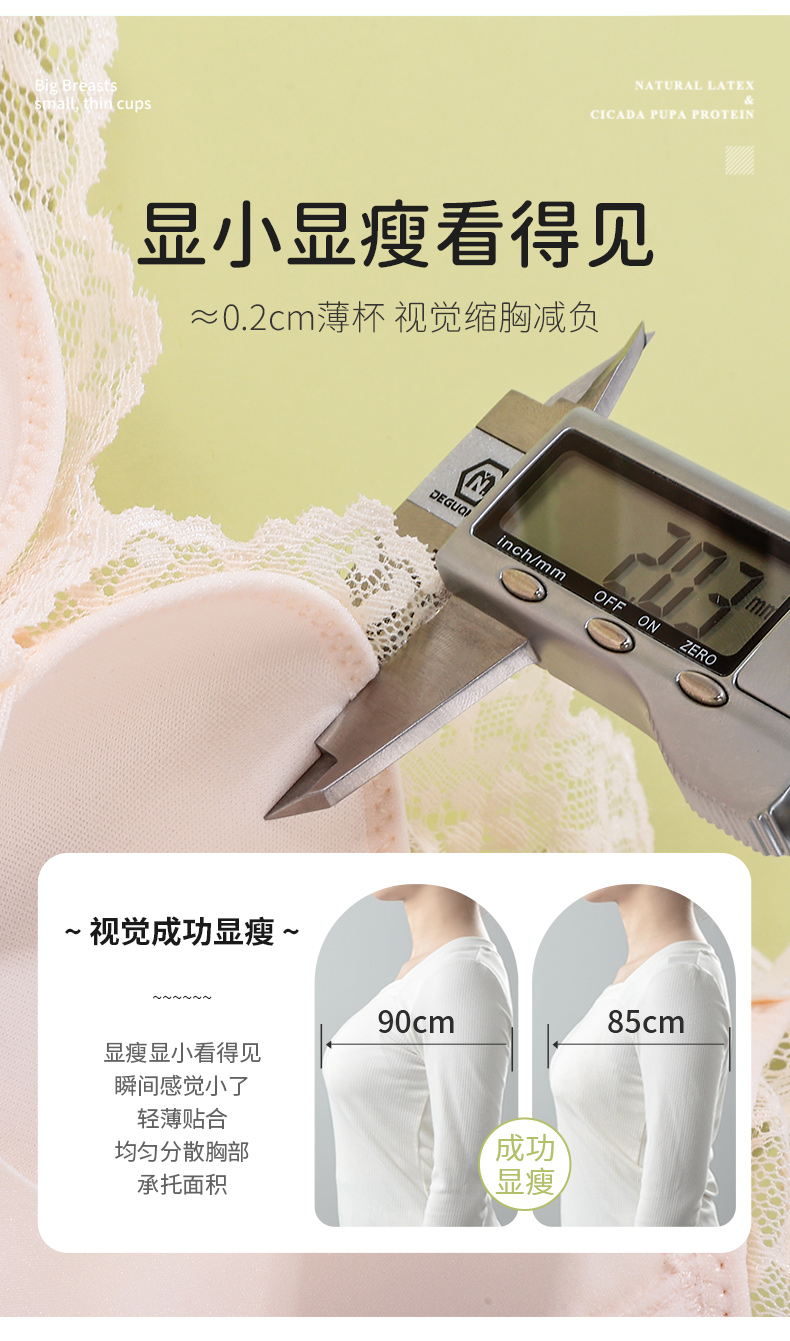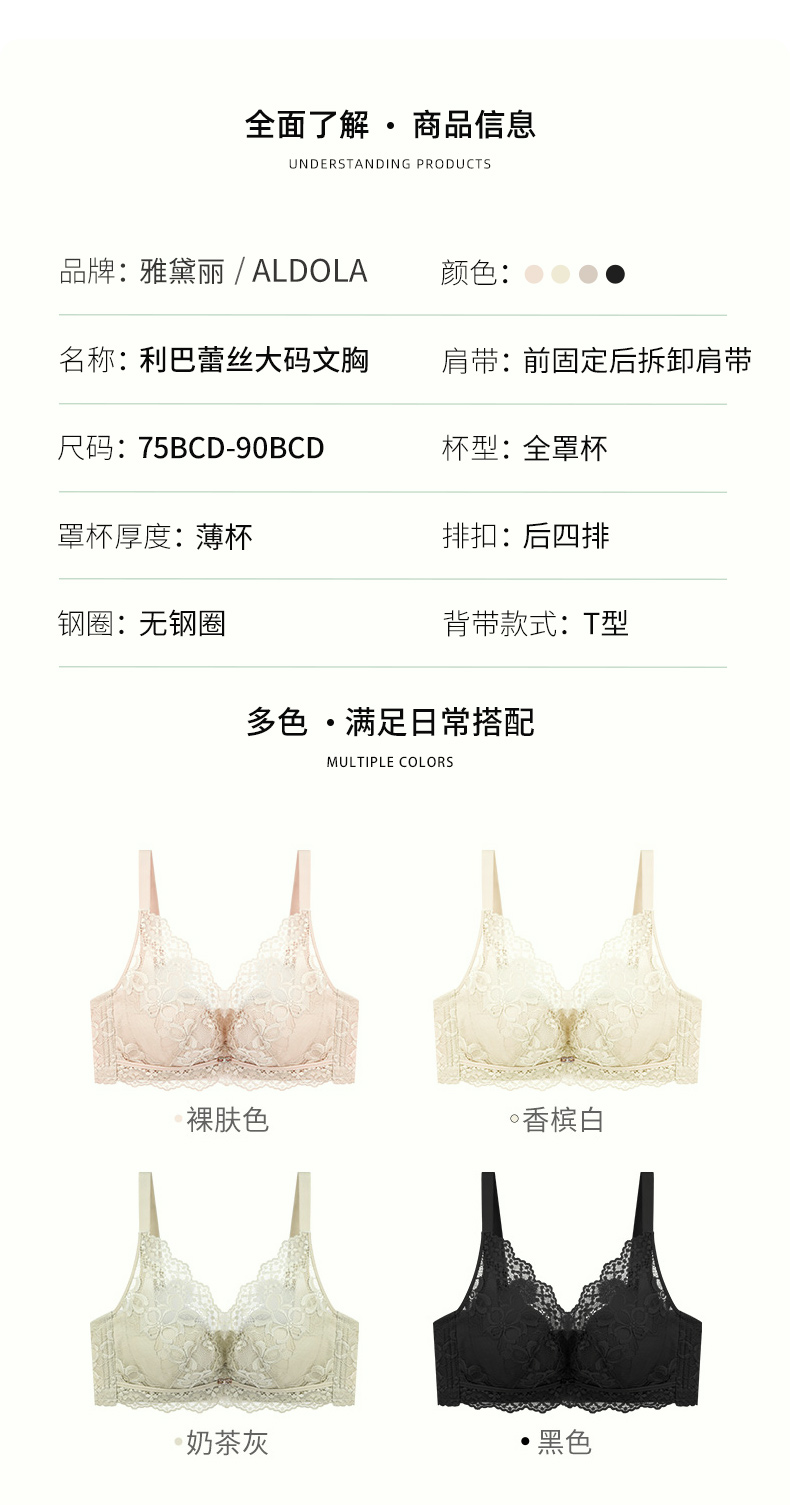 雅黛丽大胸显小内衣夏季薄款文胸全罩杯大码蕾丝美背显胸小女胸罩
