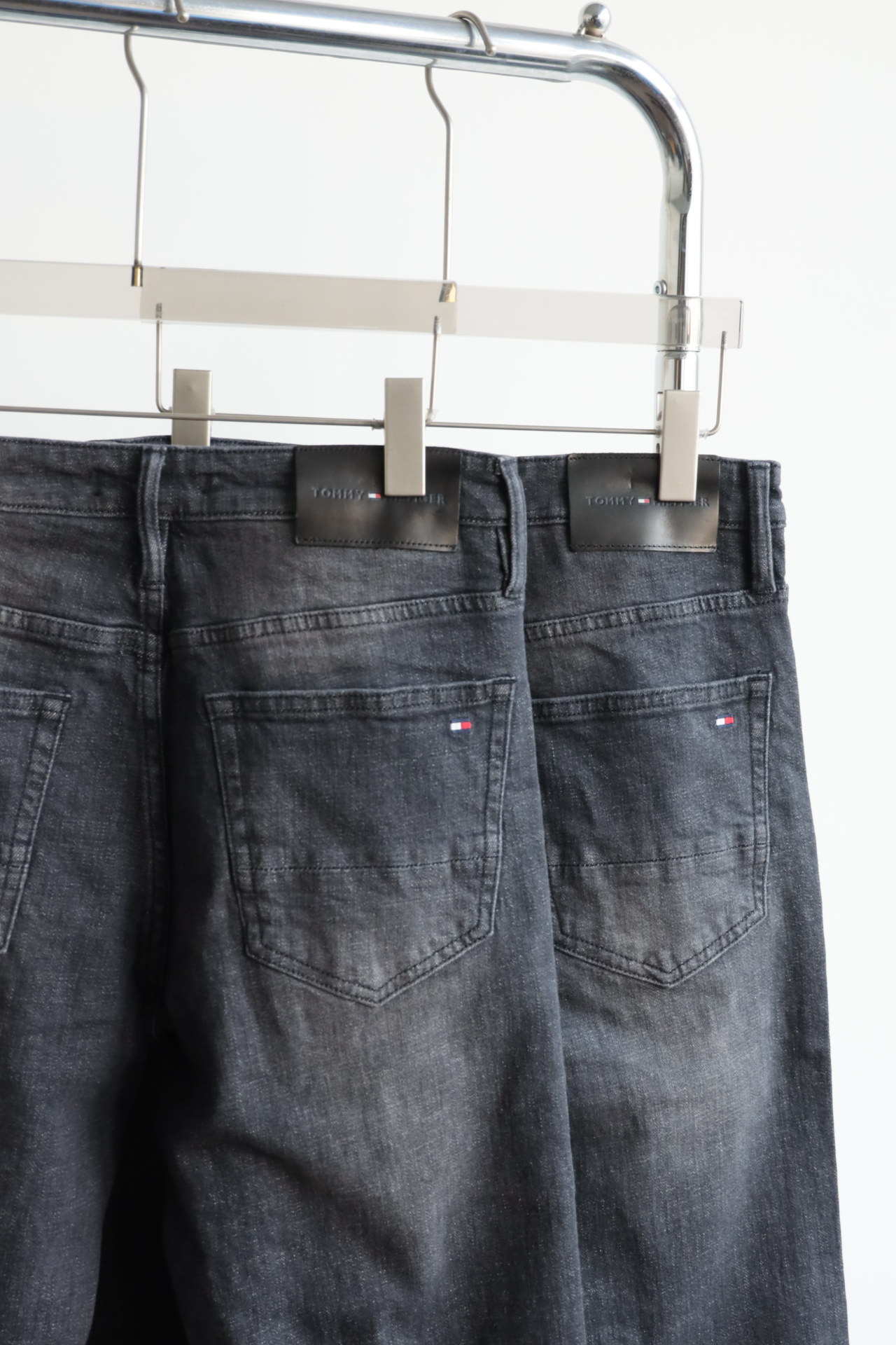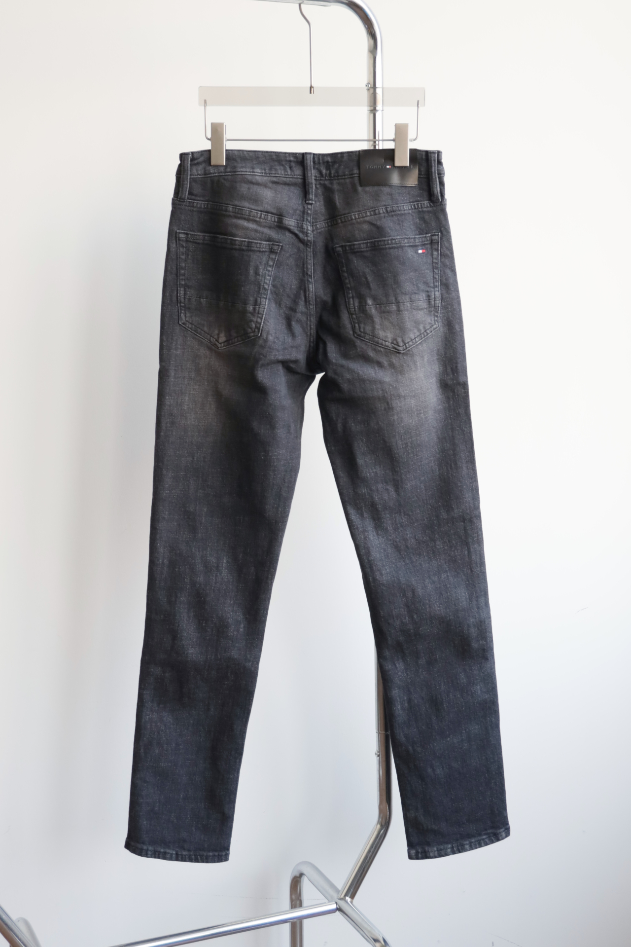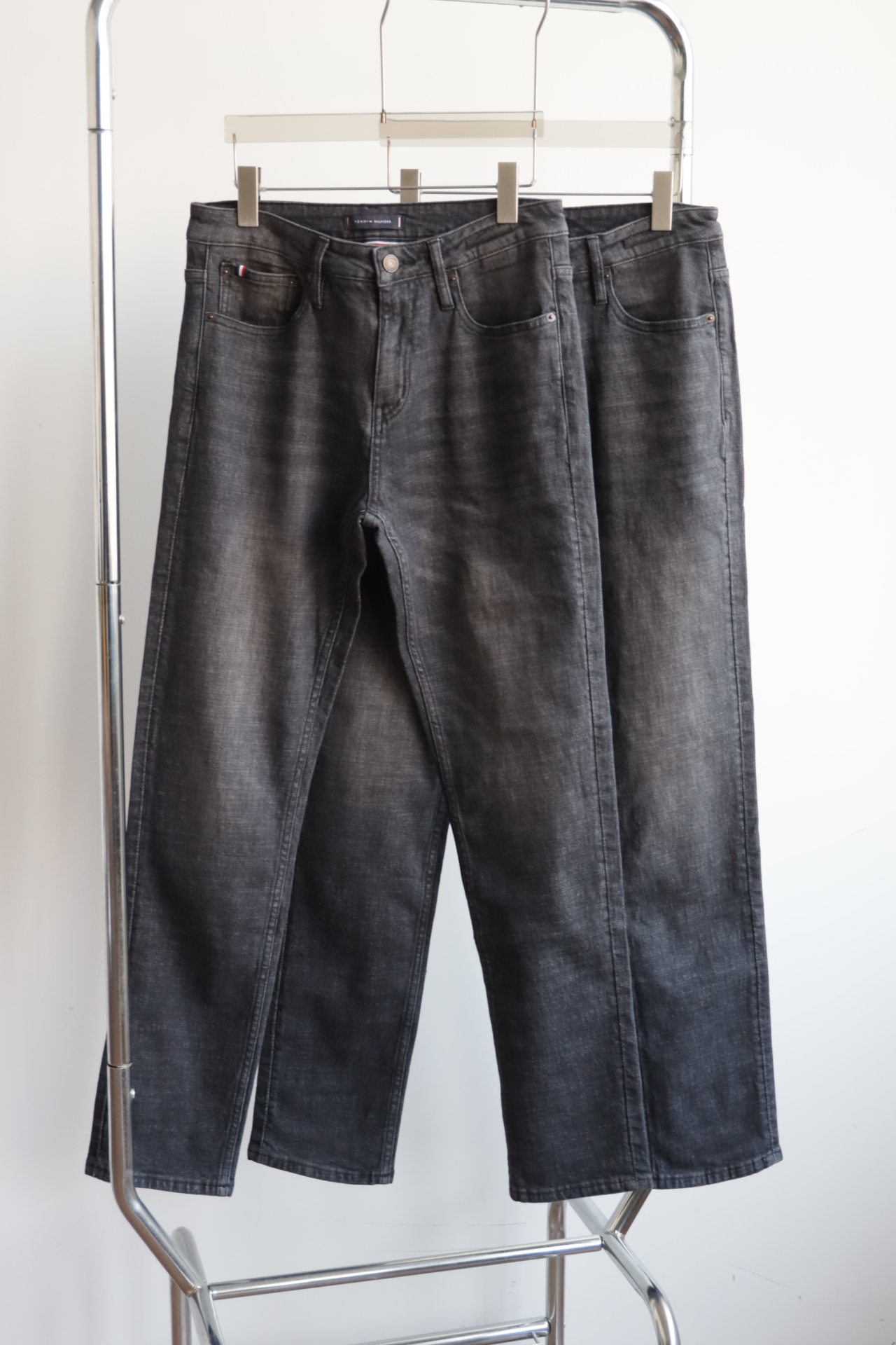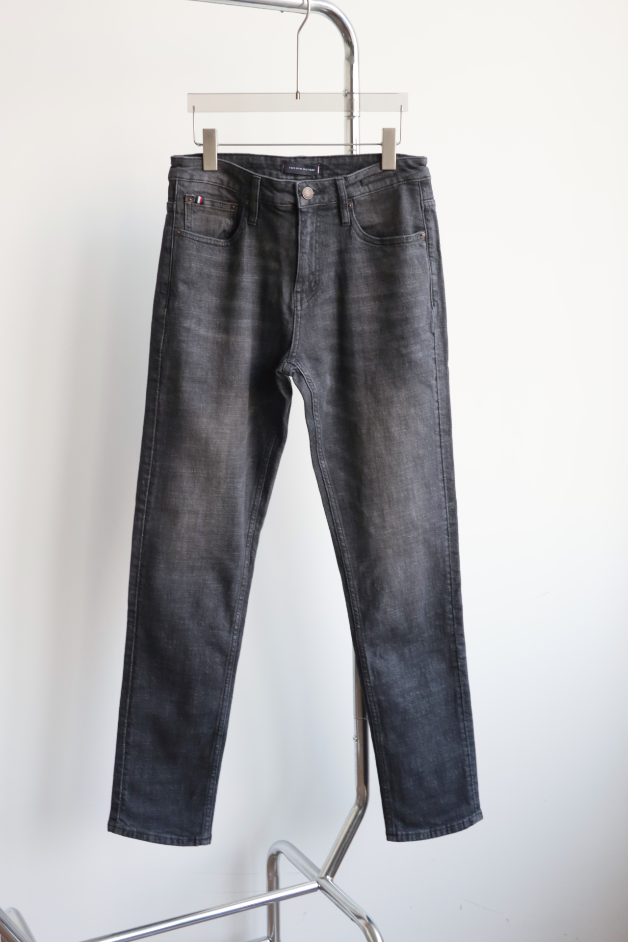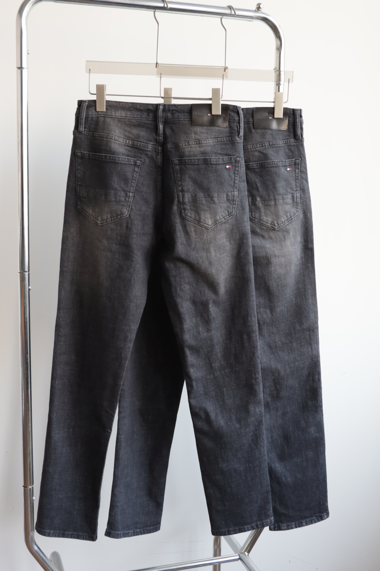 T.H 男款 小直筒 黑灰洗水棉弹牛仔裤